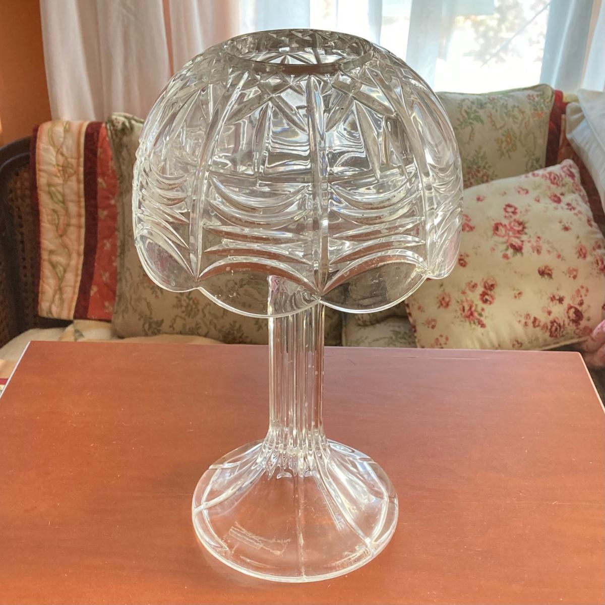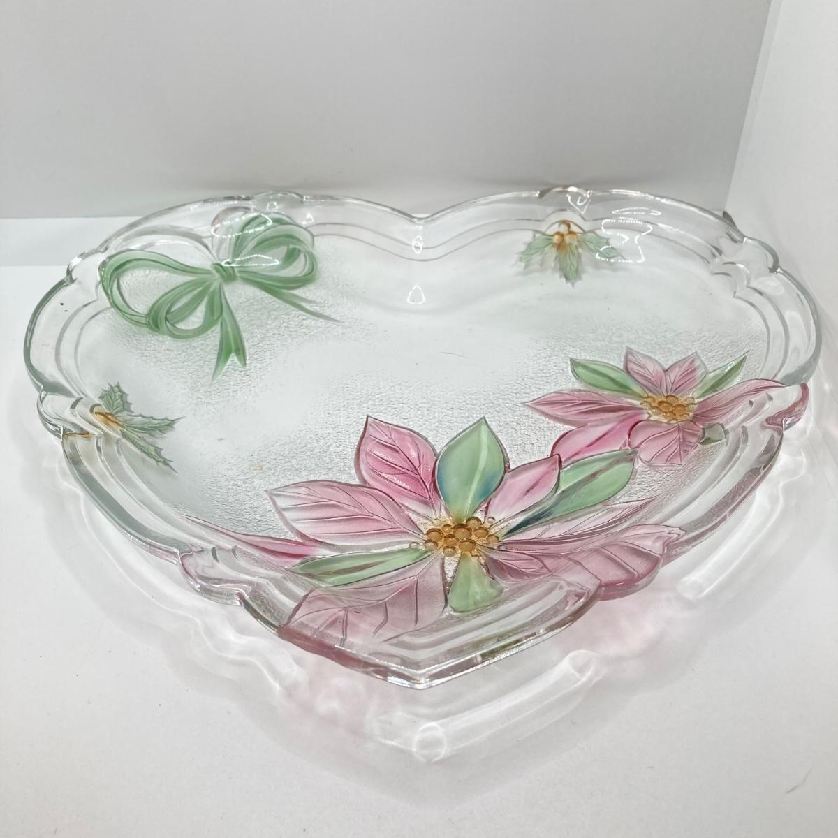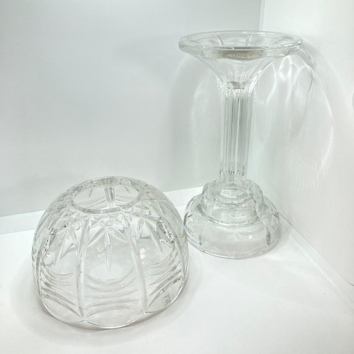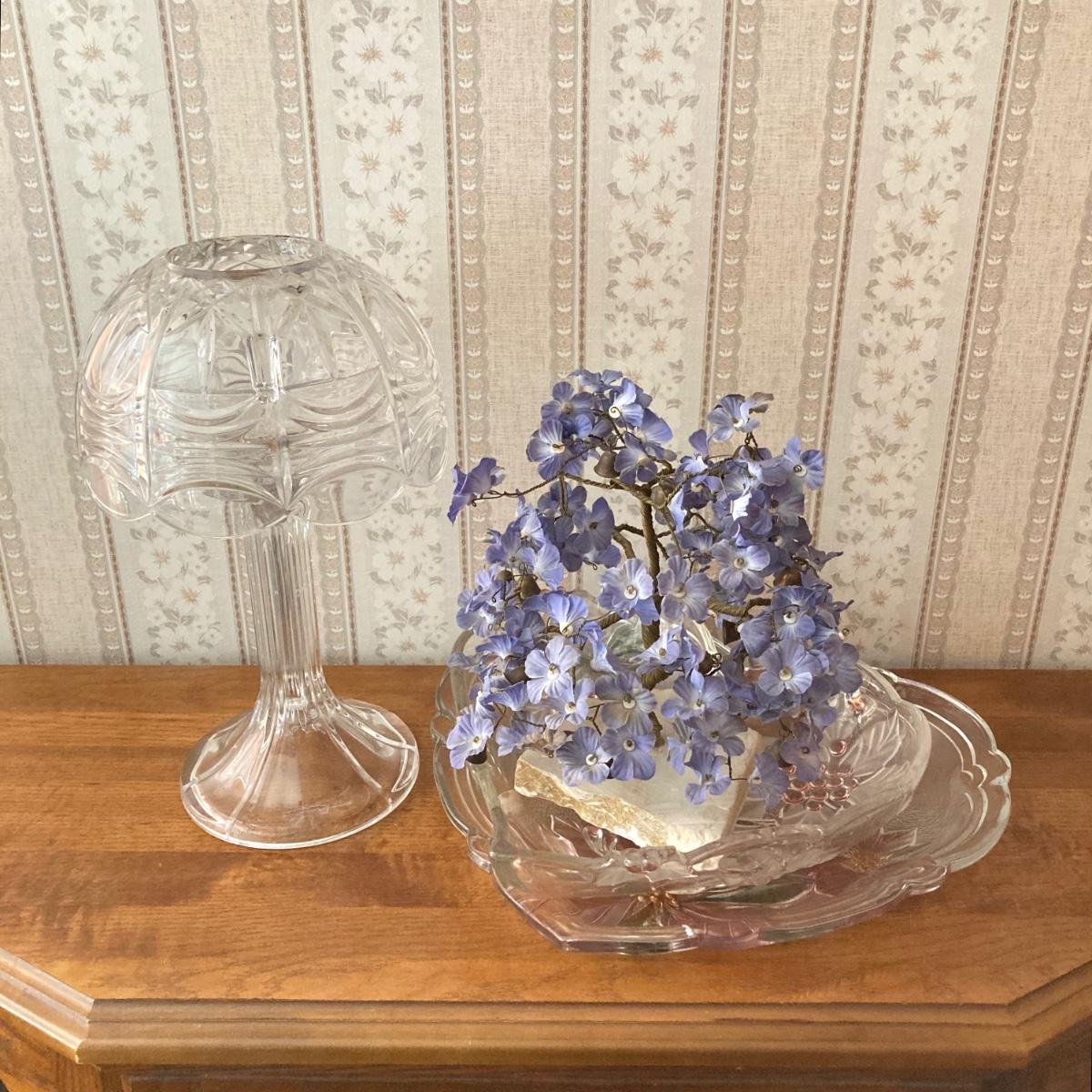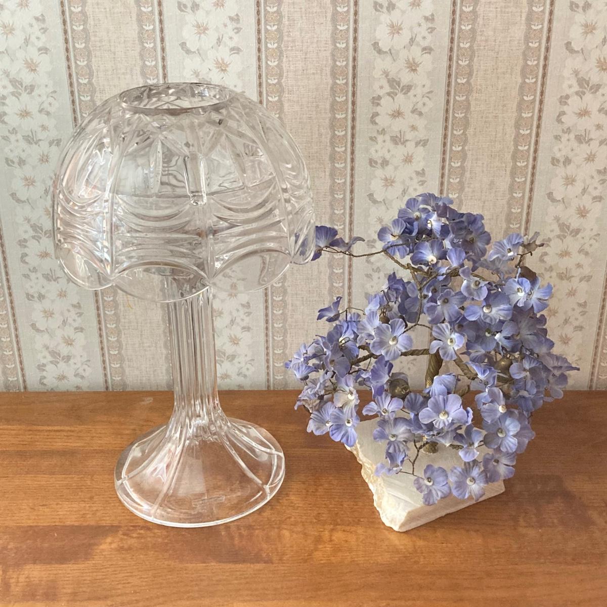 LOT 37: Vintage Collection - Czech Republic Dome Style Crystal Candle Holder Lamp, Stone Base Floral Feng Shui Tree and Pair of Heart Shaped Serving Dishes
