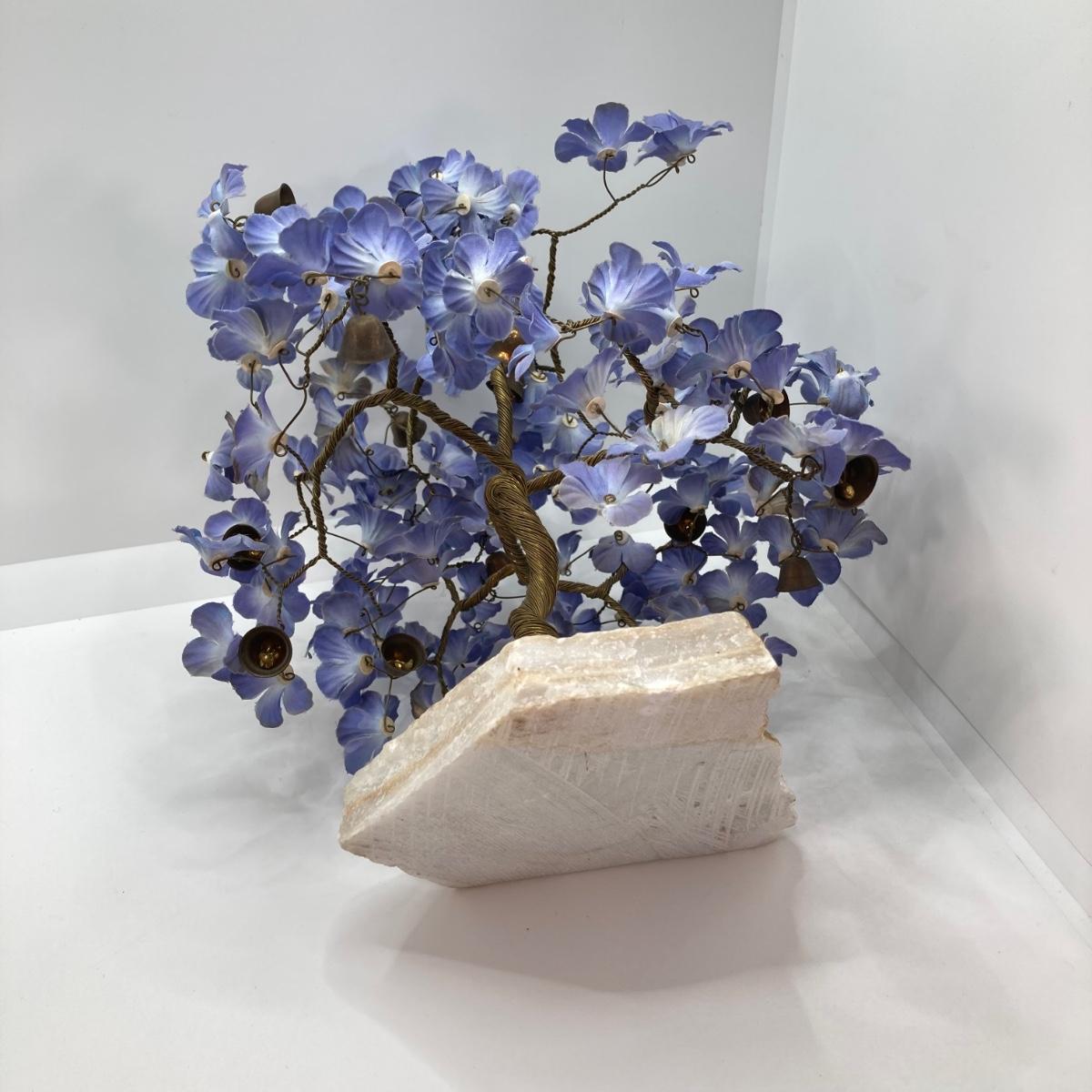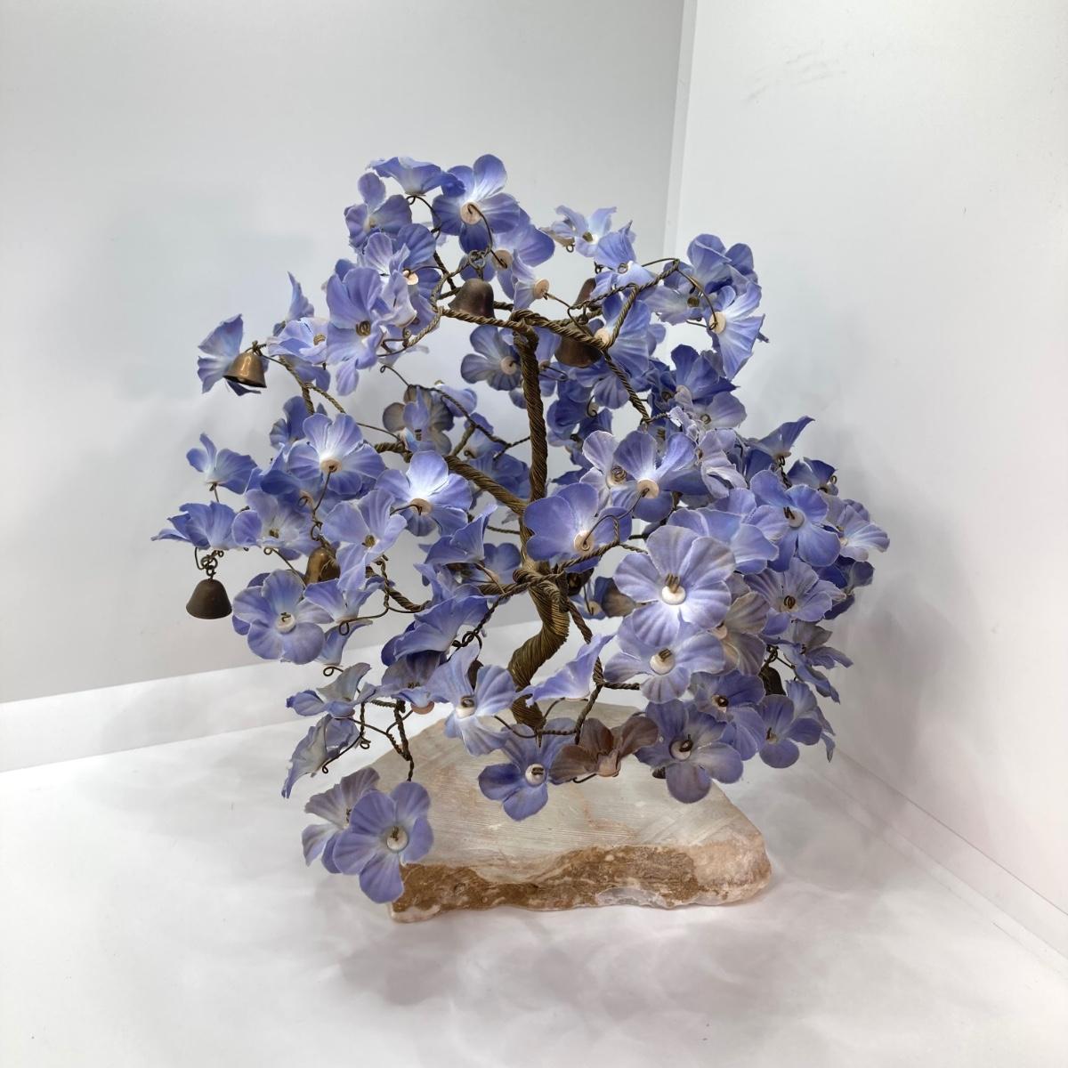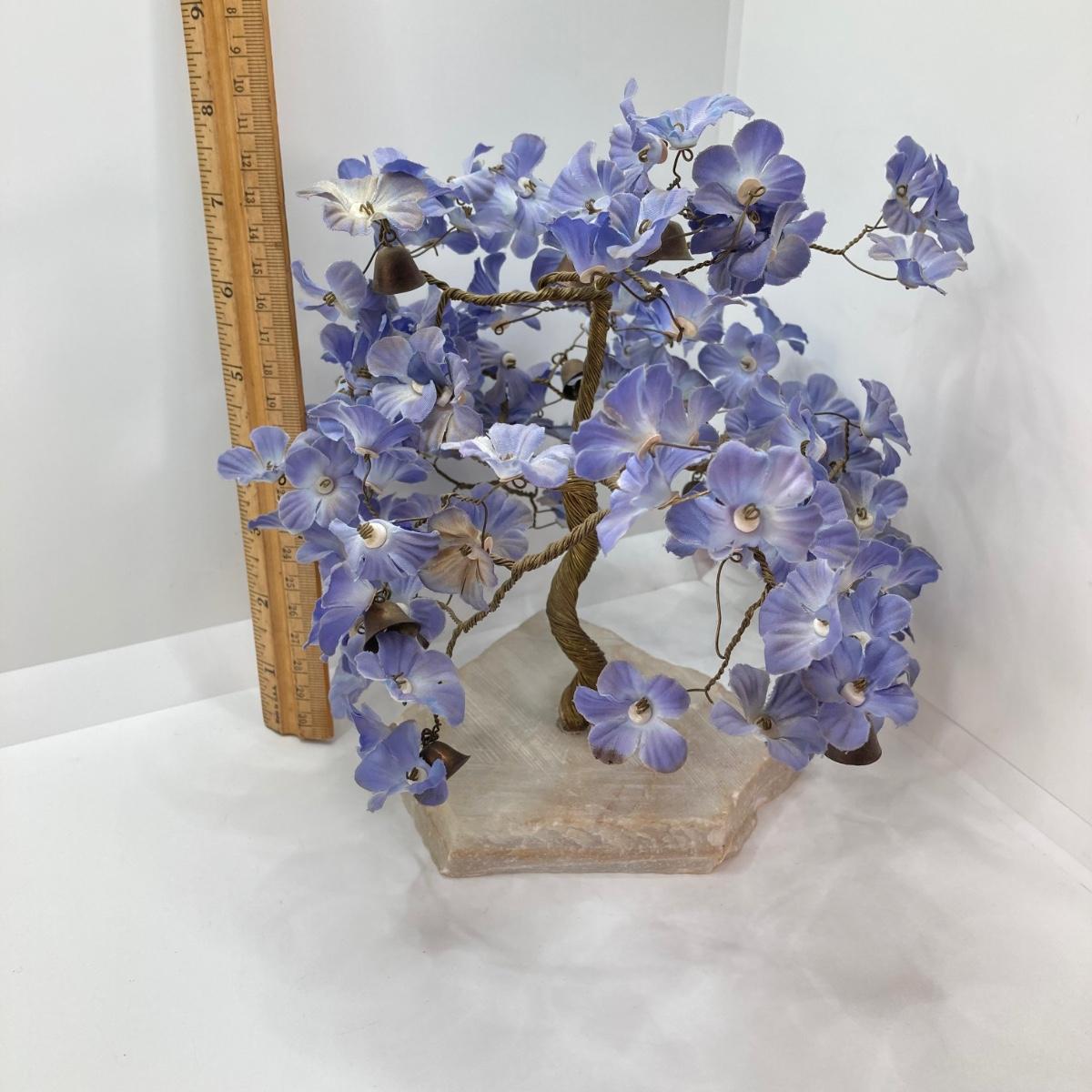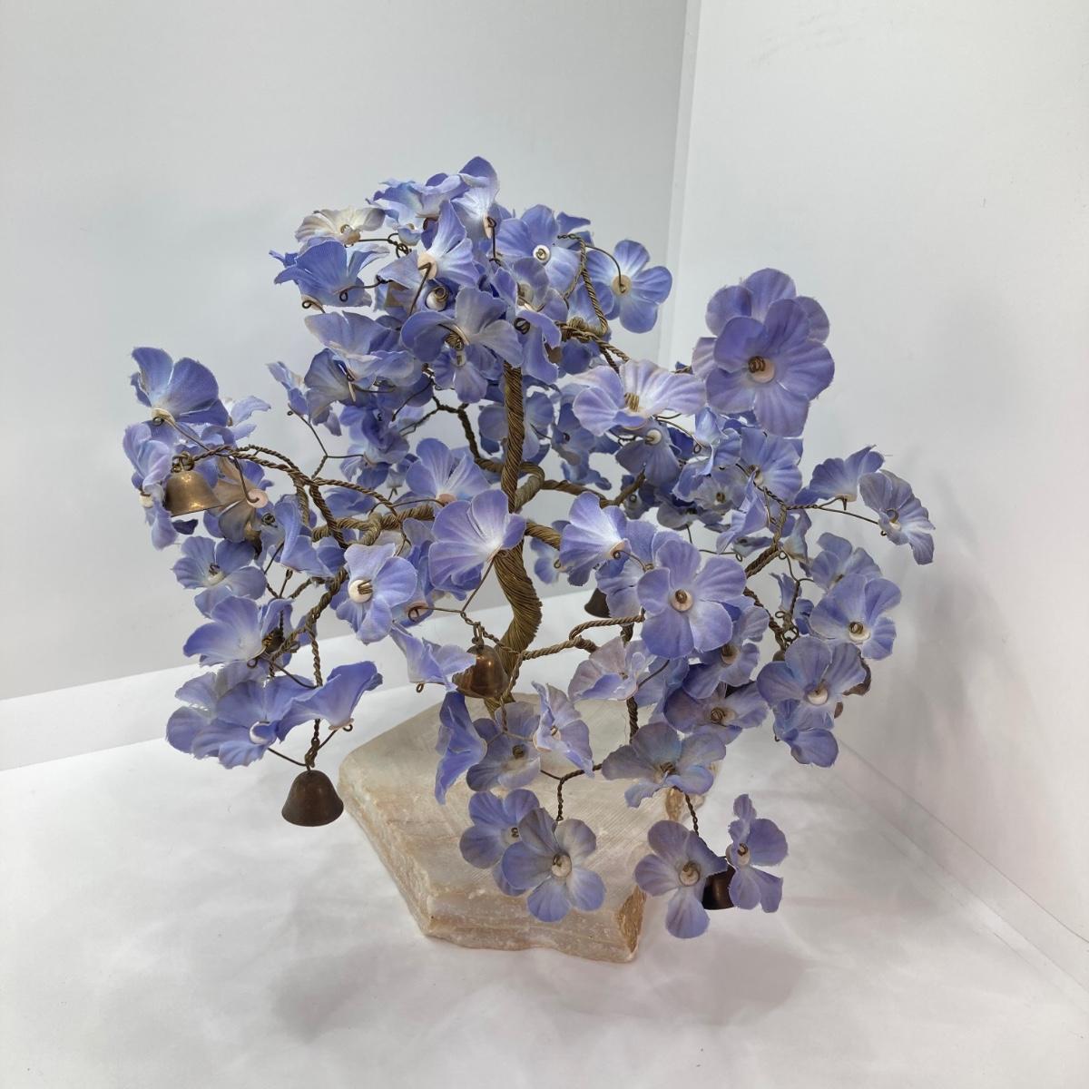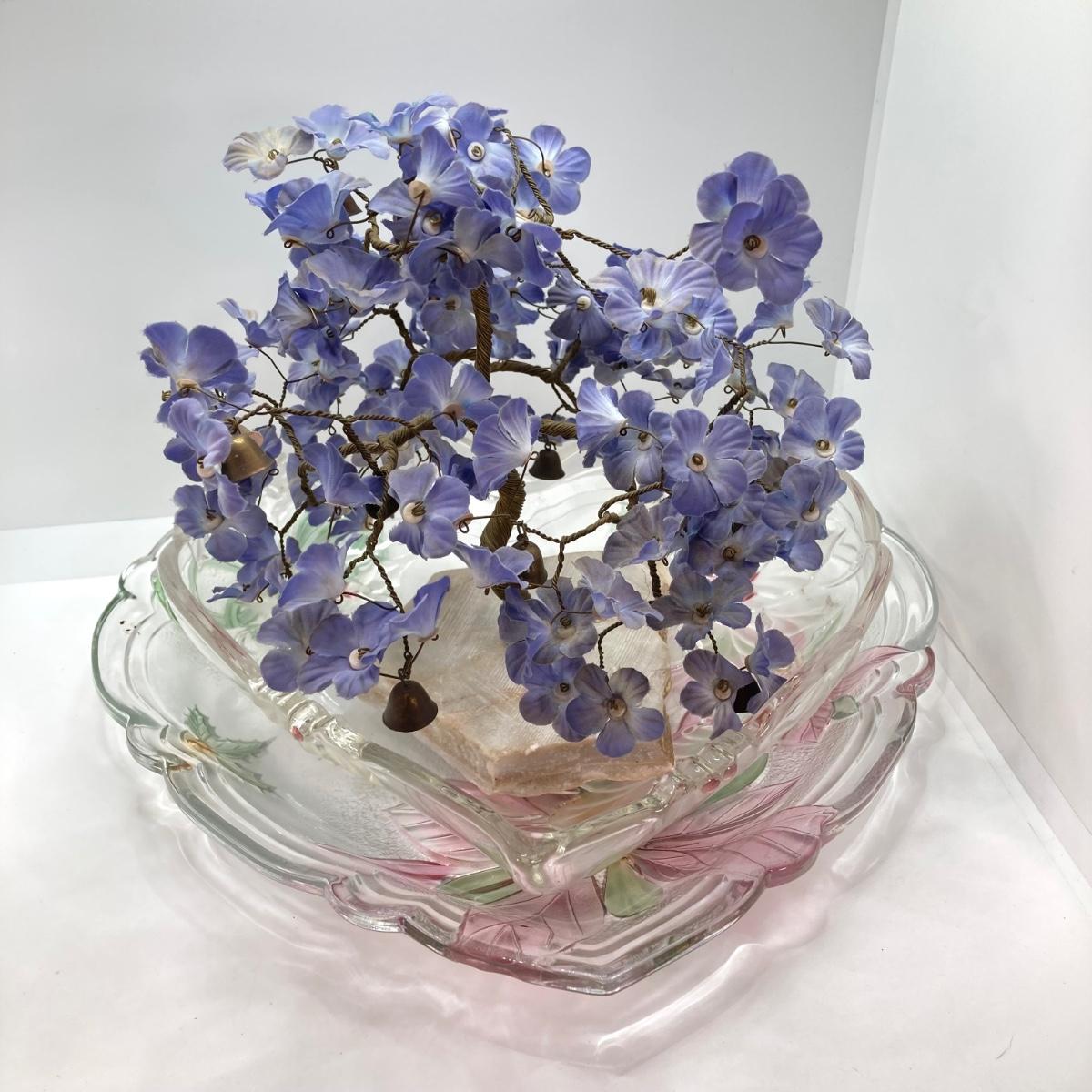 LOT 37: Vintage Collection - Czech Republic Dome Style Crystal Candle Holder Lamp, Stone Base Floral Feng Shui Tree and Pair of Heart Shaped Serving Dishes
