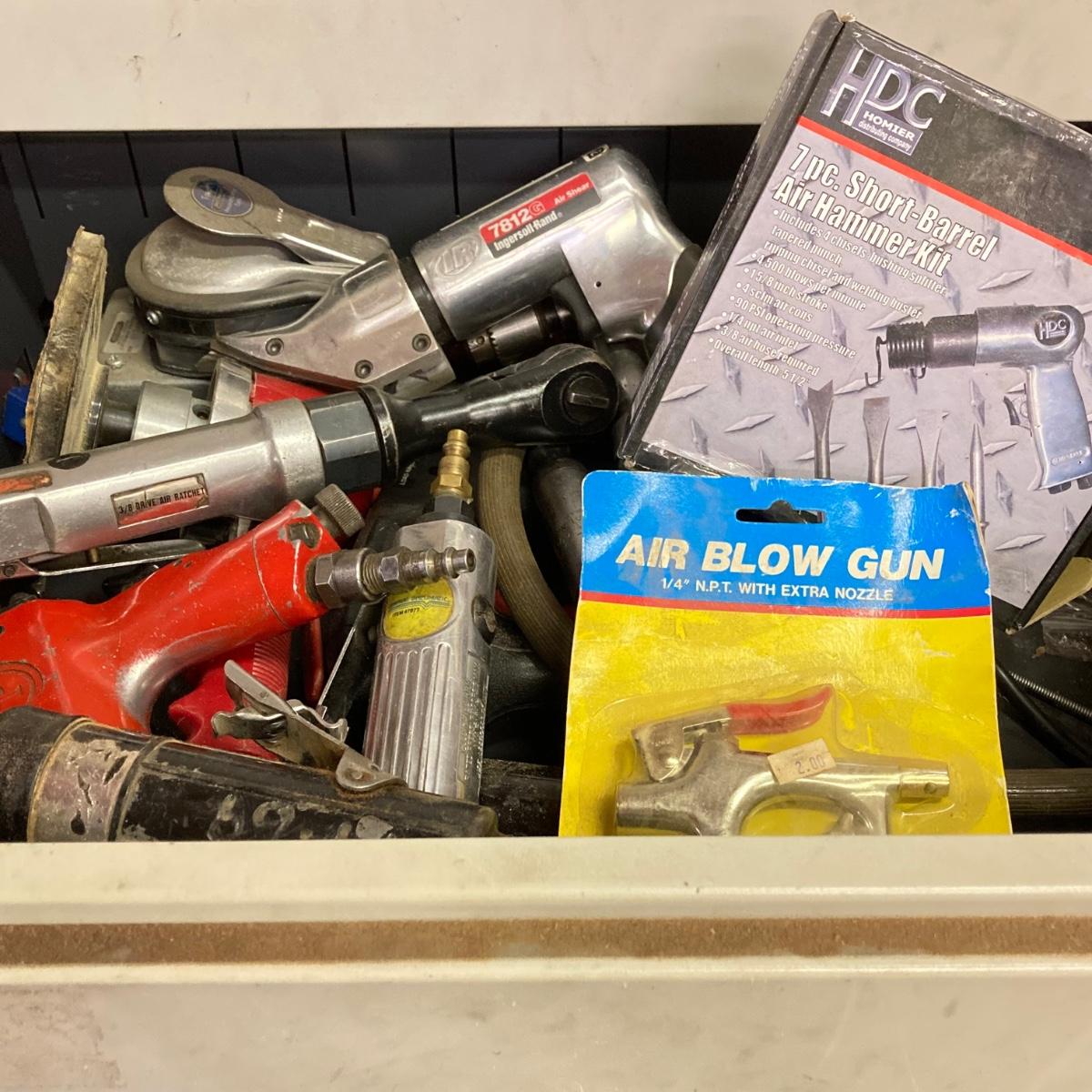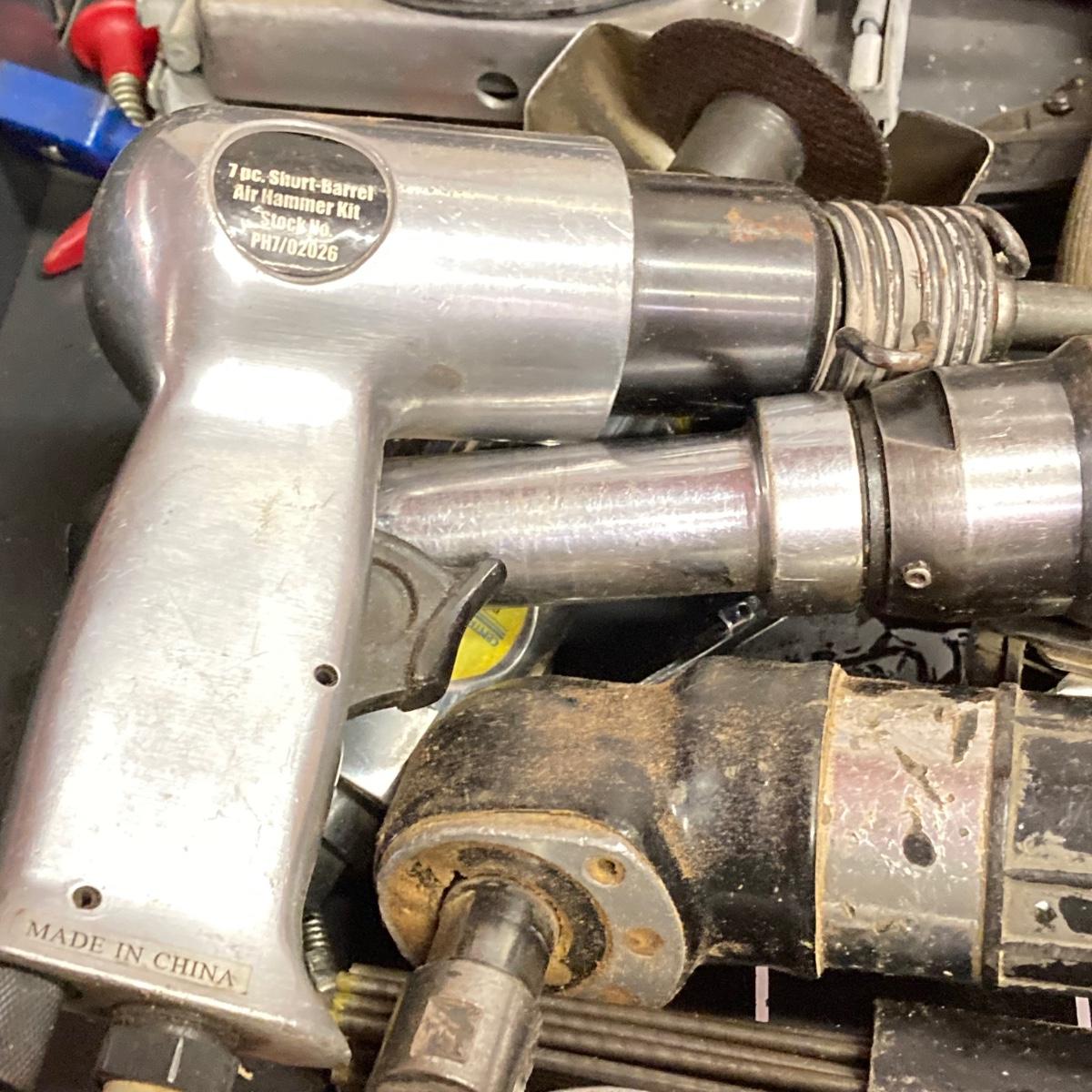LOT 52: Collection of Air Gun Tools and Accessories (Chicago Pneumatic Impact Wrench, Mechanic's Sanders, Chief Air Needle Scaler, Cut Off Tool and More