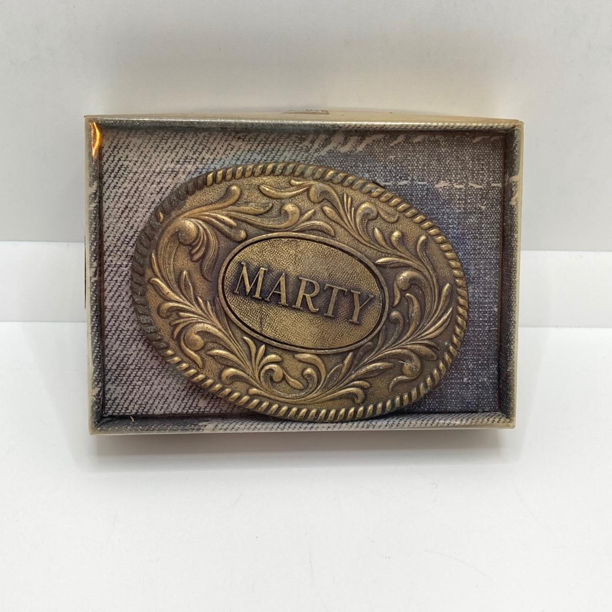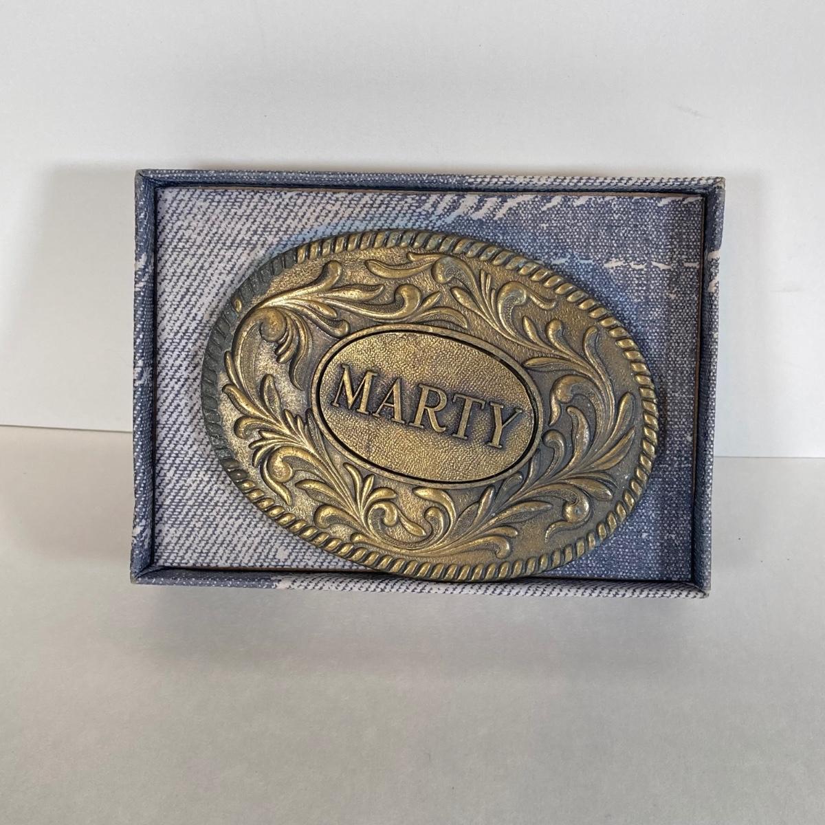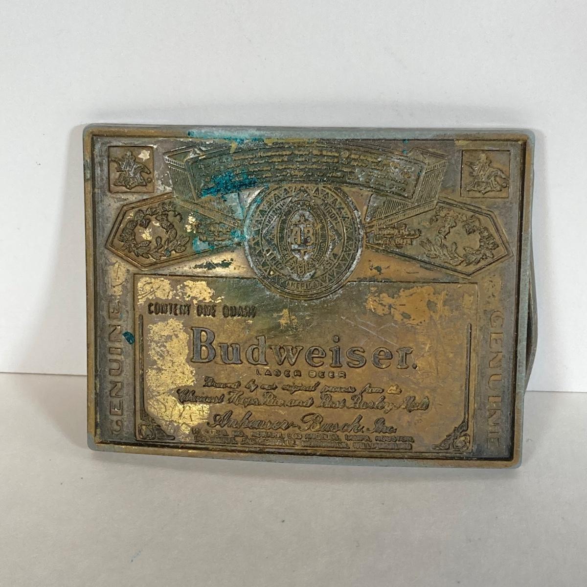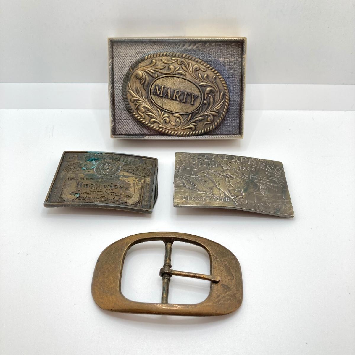 LOT 63: Vintage Belt Buckles (Kinney / Lewis Buckle Chicago) - Budweiser, Pony Express, Personalized Marty and More