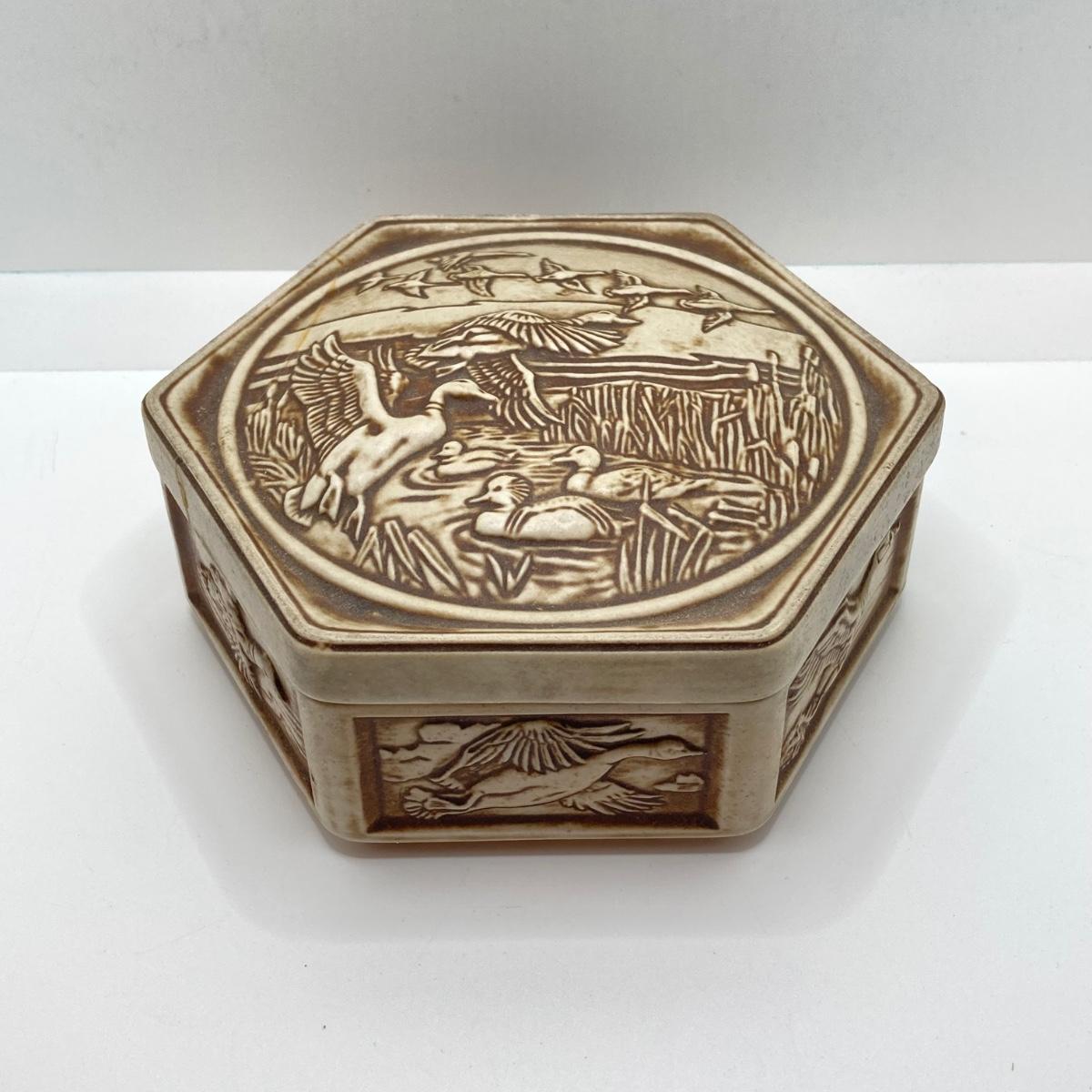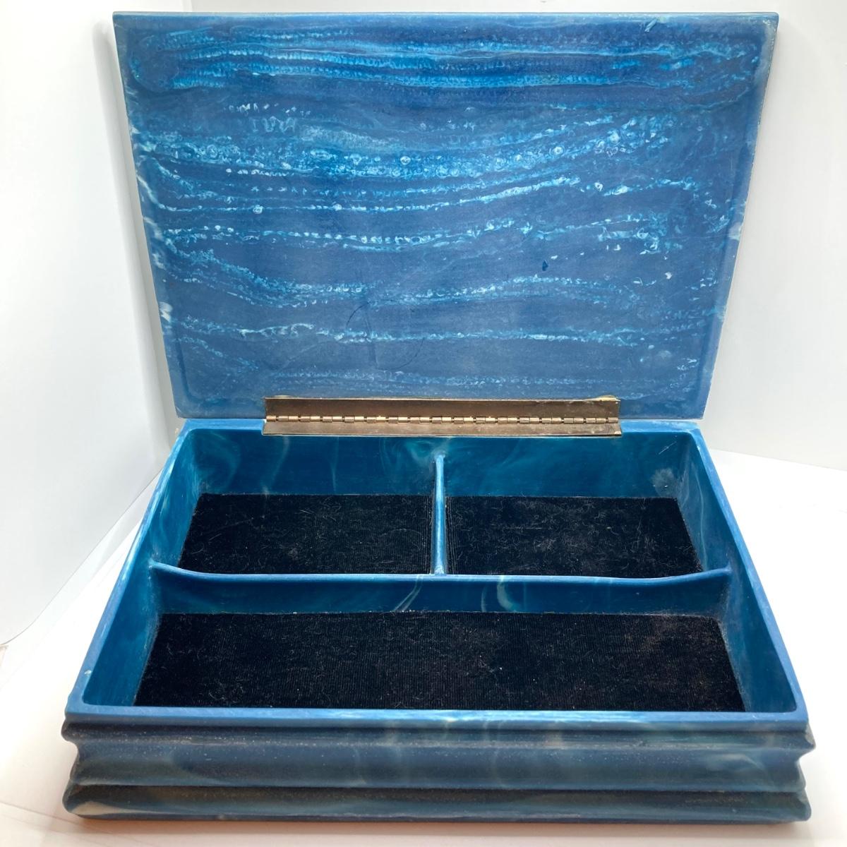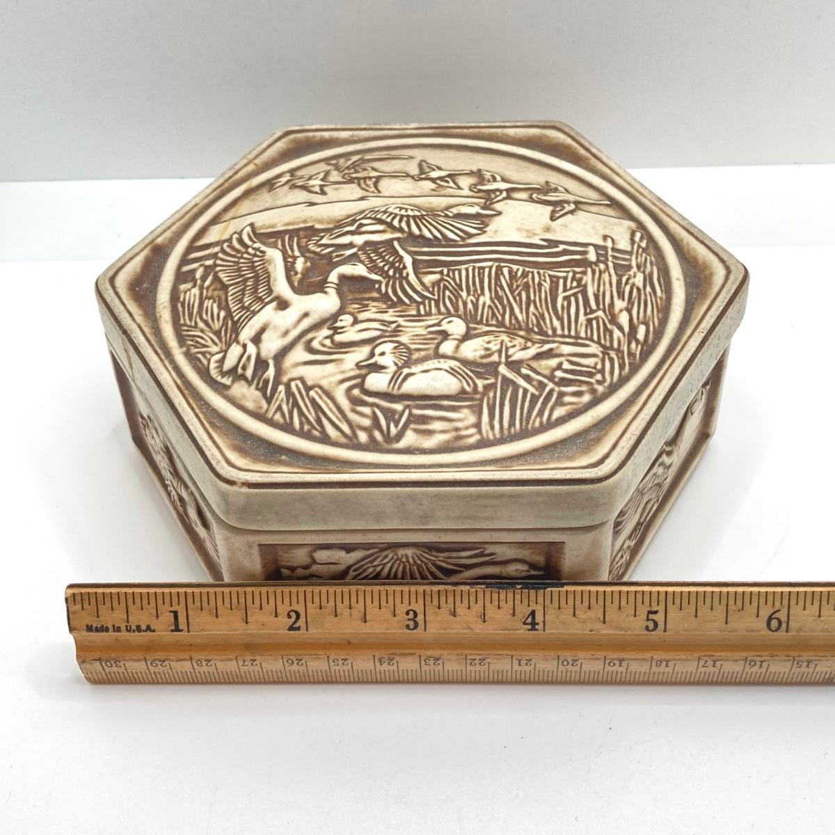LOT 72: Vintage Incolay Stone Carved Nautical Scene Jewelry Box with Hexagon Shaped Handcrafted in Brazil Exclusively for Avon Products 1980 Jewelry Box