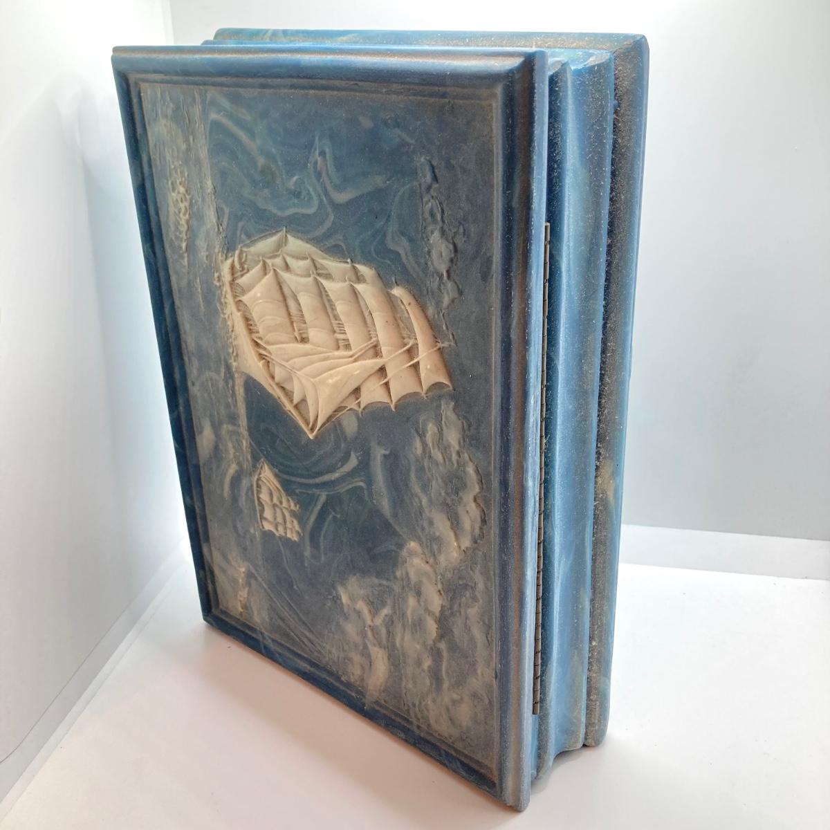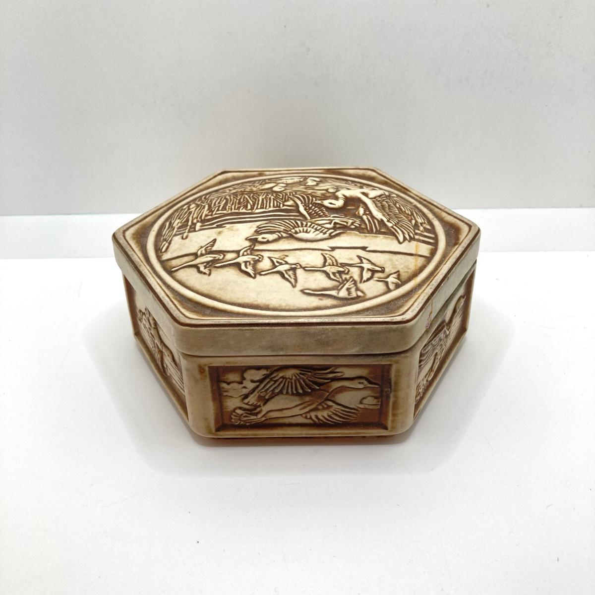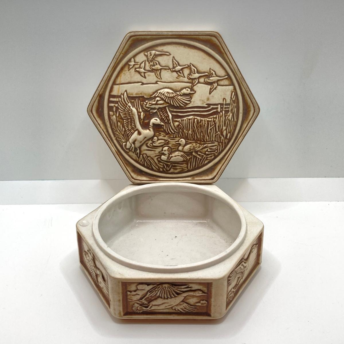 LOT 72: Vintage Incolay Stone Carved Nautical Scene Jewelry Box with Hexagon Shaped Handcrafted in Brazil Exclusively for Avon Products 1980 Jewelry Box