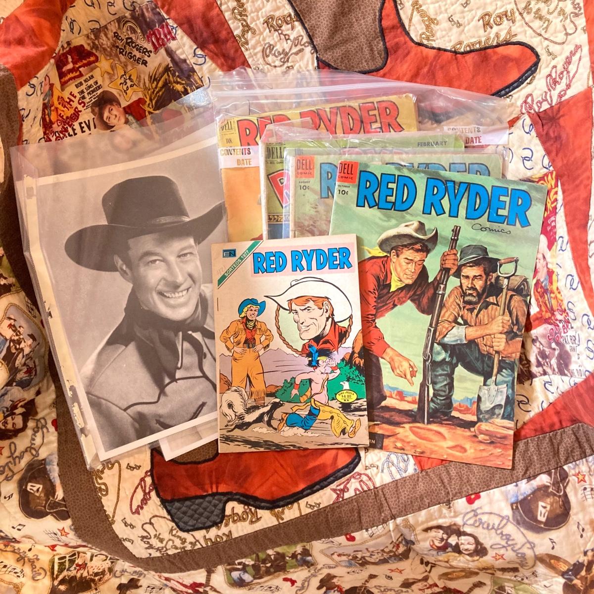 LOT 81: Vintage Western Themed Collection - Quilted Throw Blanket, Red Ryder Comic, Black and White Photographs