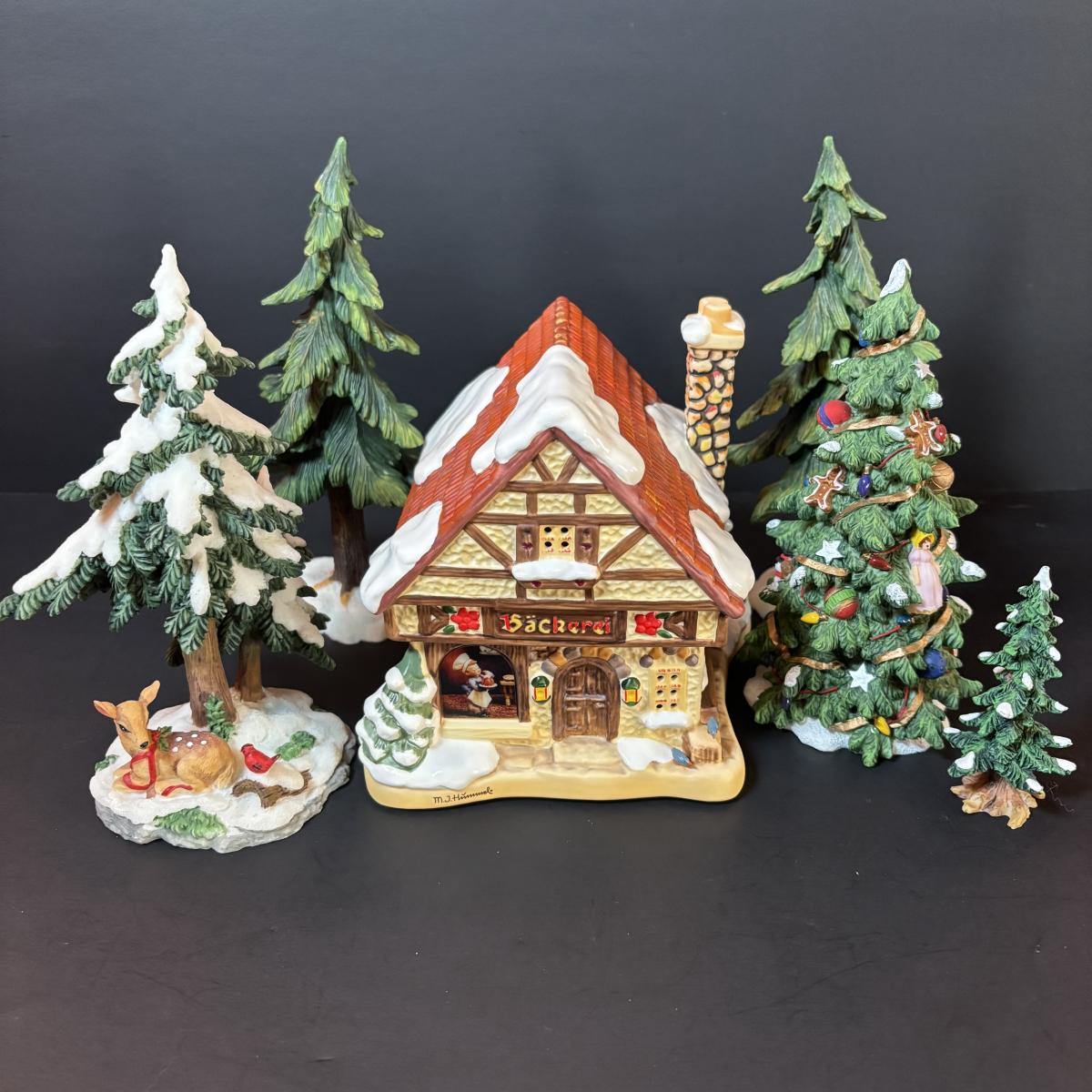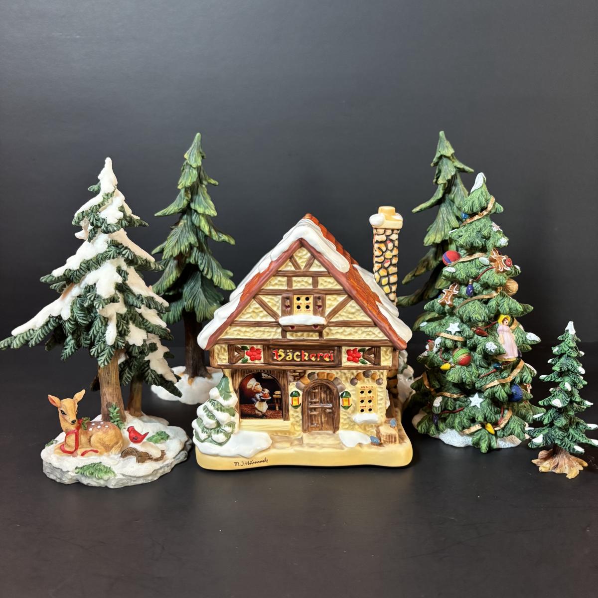 LOT 88: M.J. Hummel Holiday Village Bakery & Christmas Village Acessories