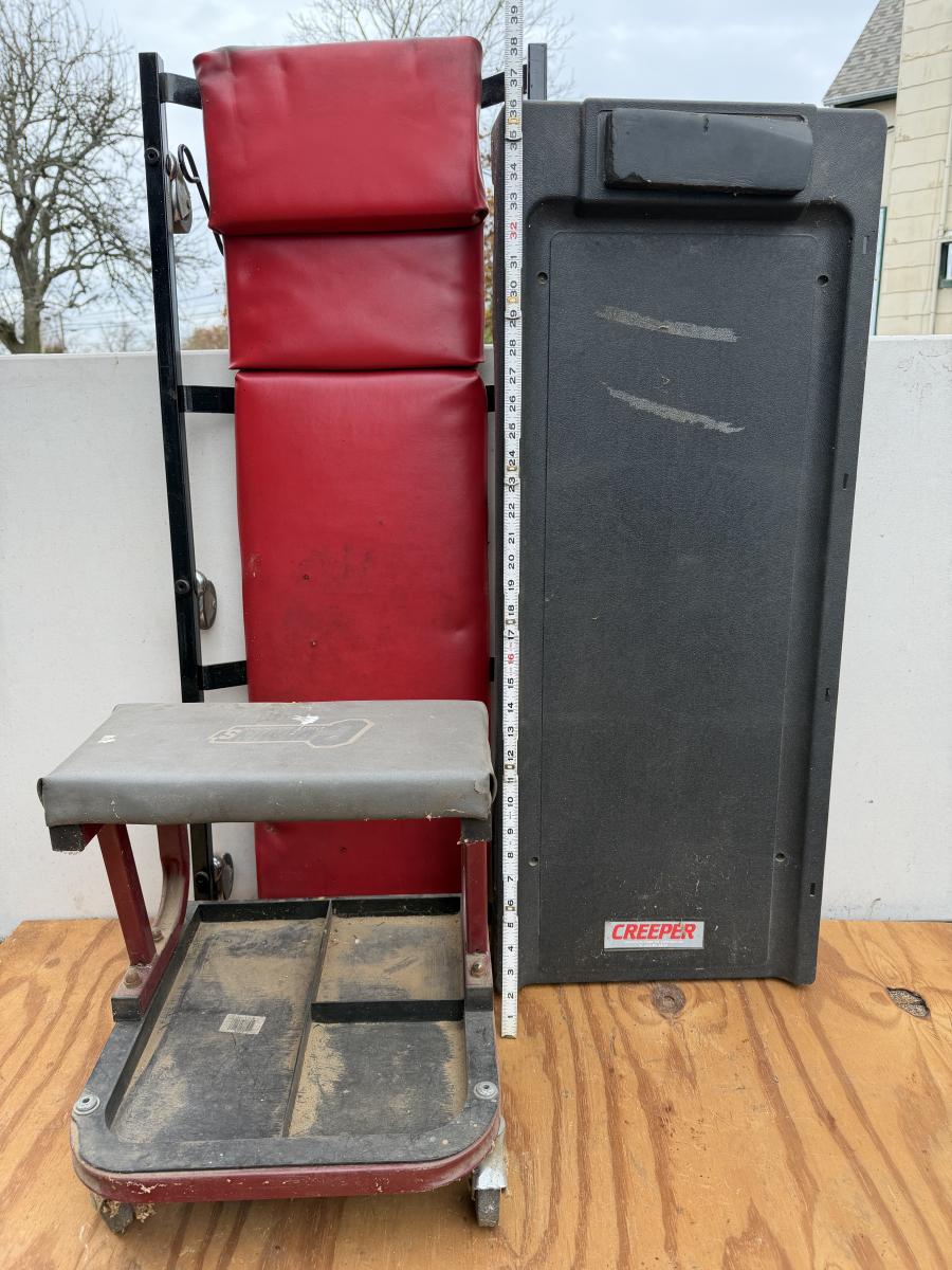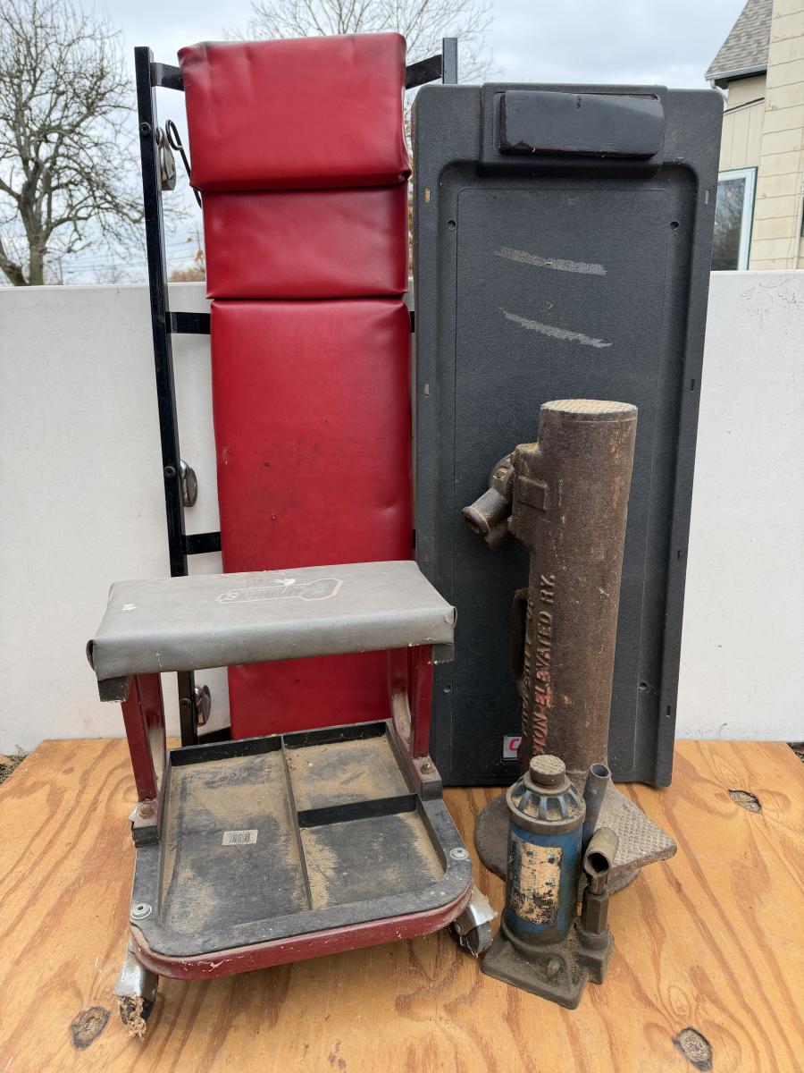 LOT:: 127 - Mechanic Floor Creepers/Stool, Heavy Duty Boston, Mass Jack, small jack -JLP - garage