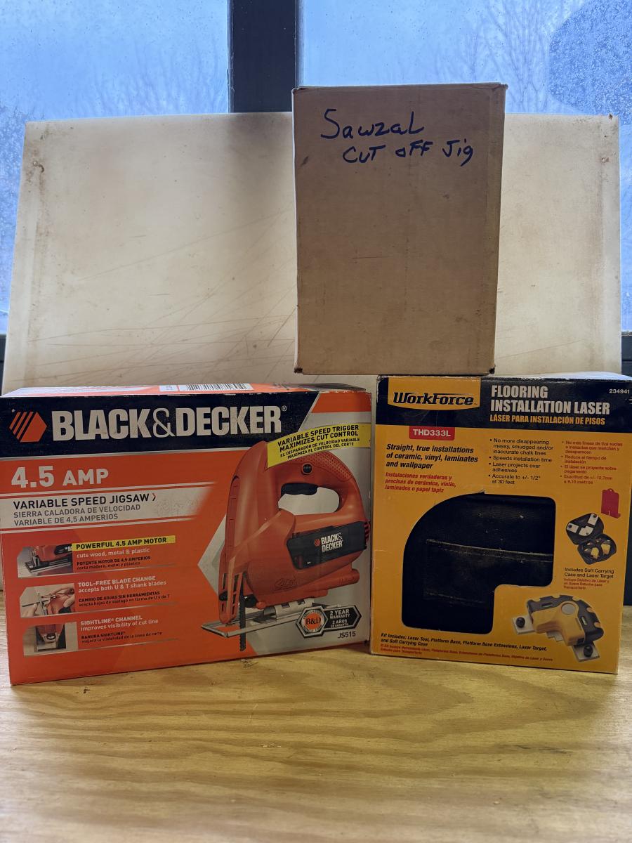 LOT:: 145 - Black & Decker Jigsaw, Floor Installation Laser, Cut Off Jig