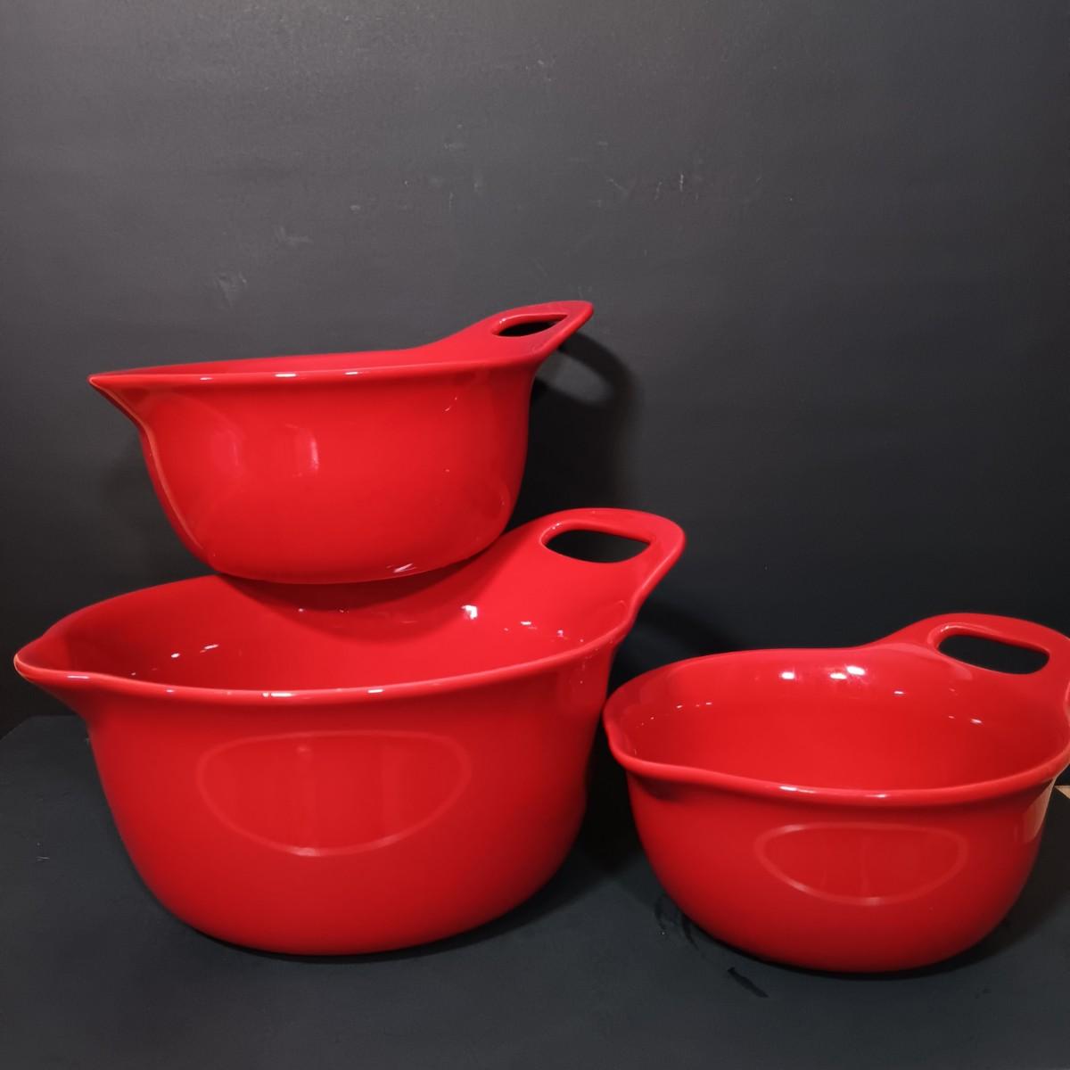 LOT 166: Rachel Ray Orange Casserole Dishes and Red Mixing Bowls with Cordon Bleu Platter
