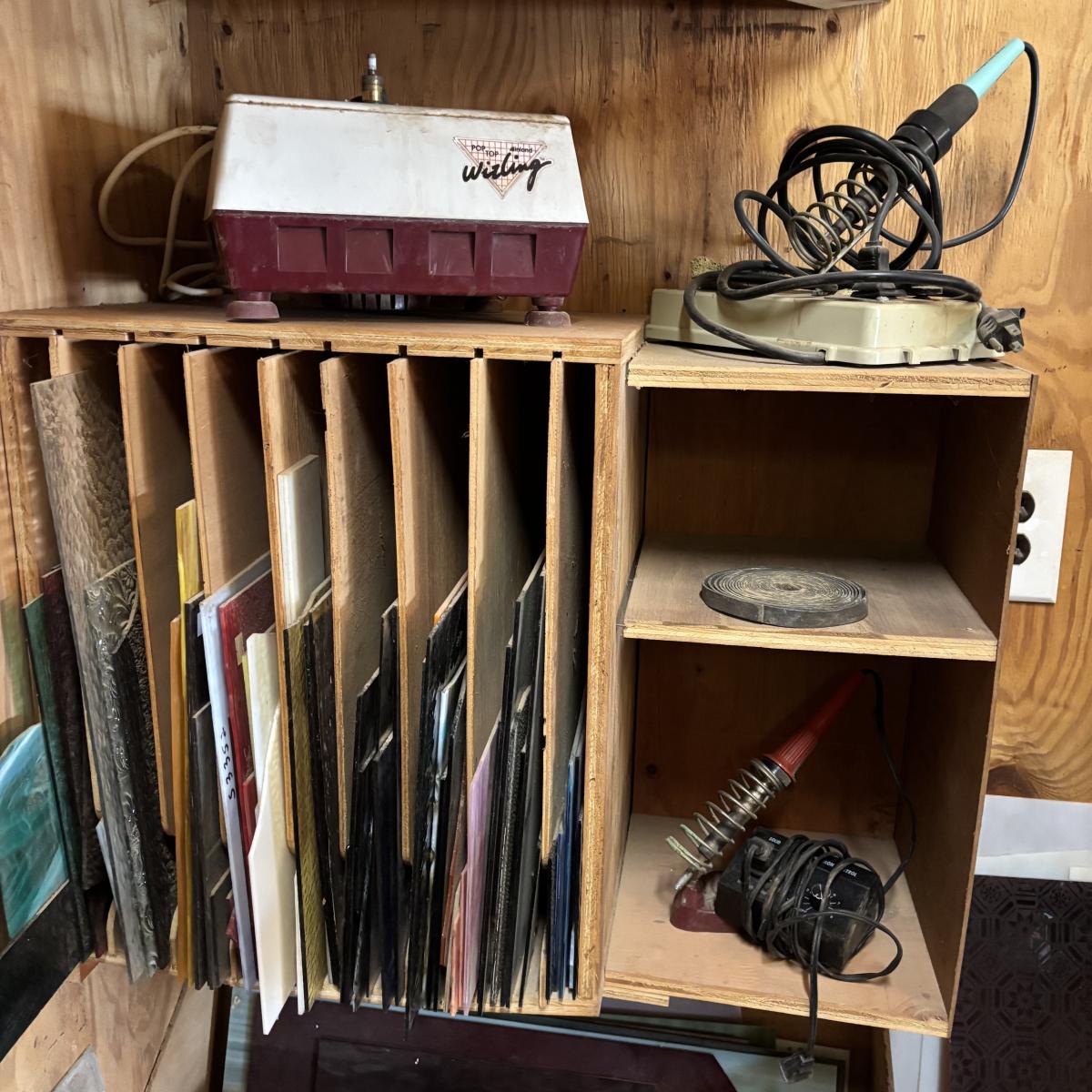 LOT 231: Glass Art/Stained Glass Supplies: Glass Sheets, Wizling Glass Grinder, Weller Soldering Station