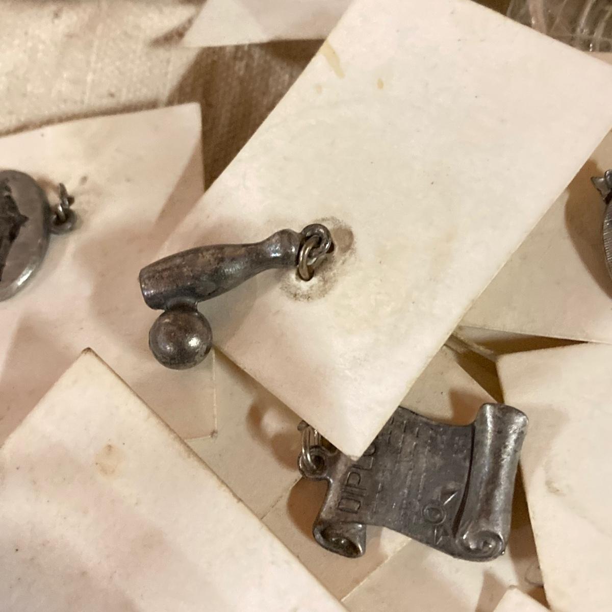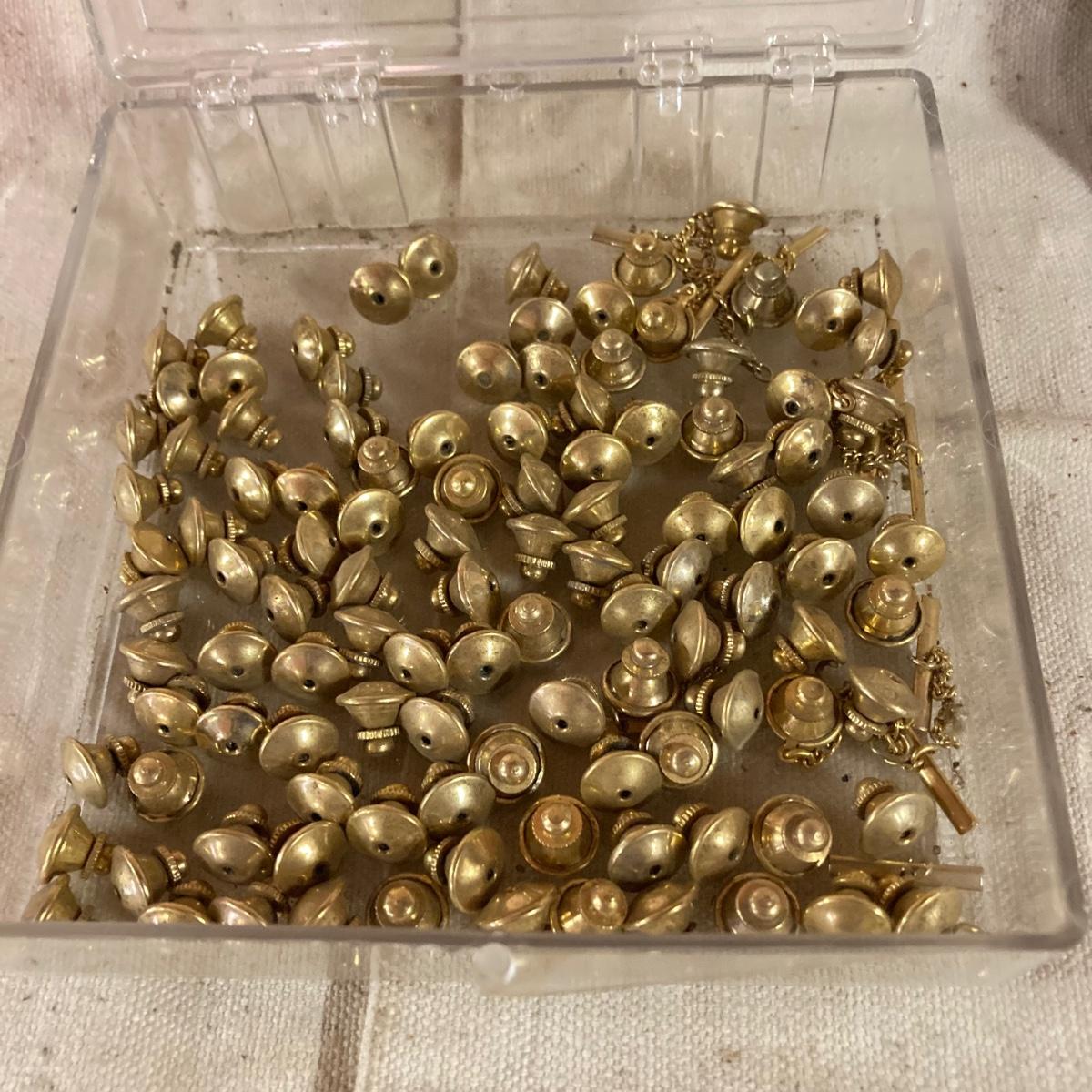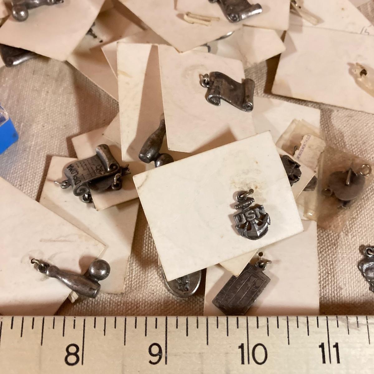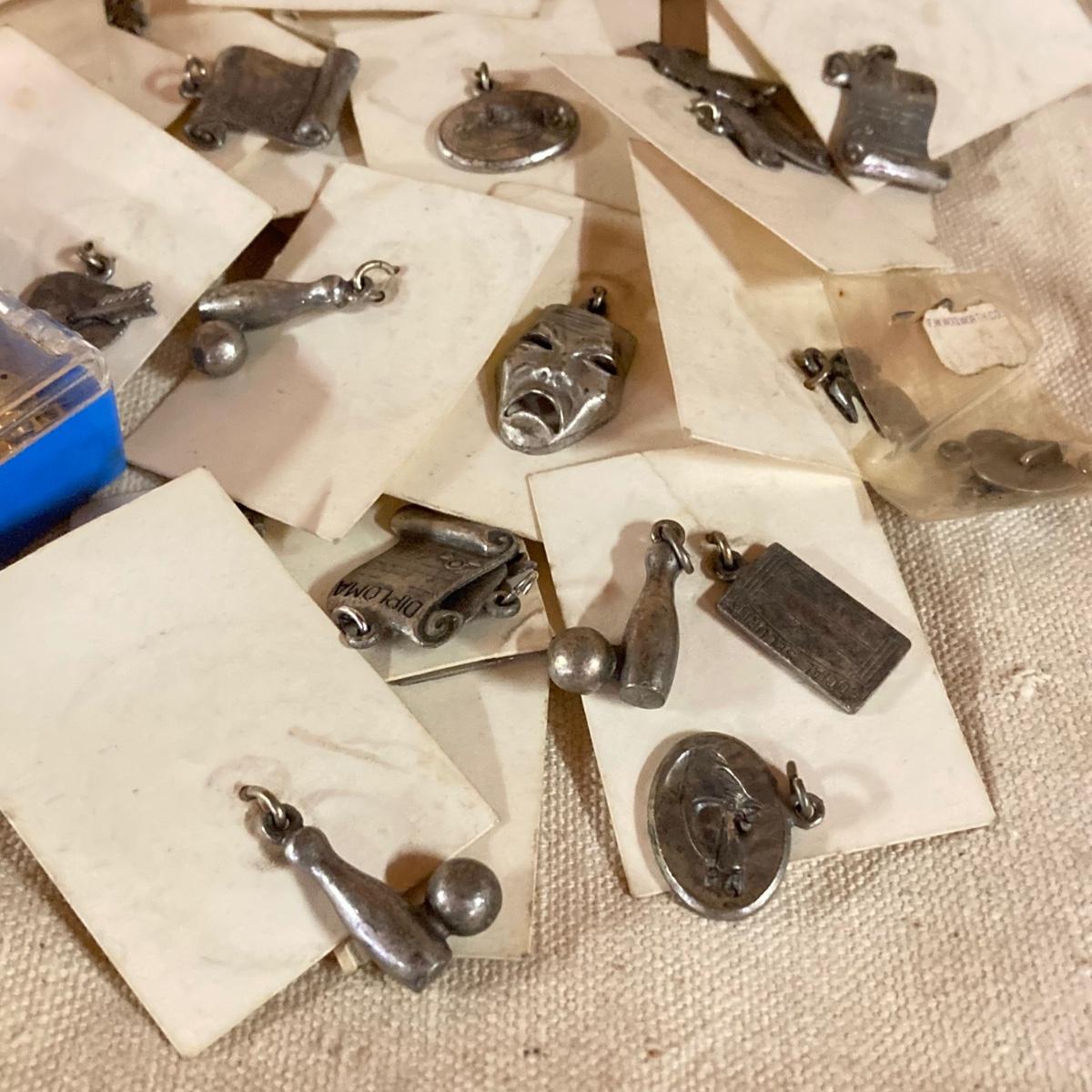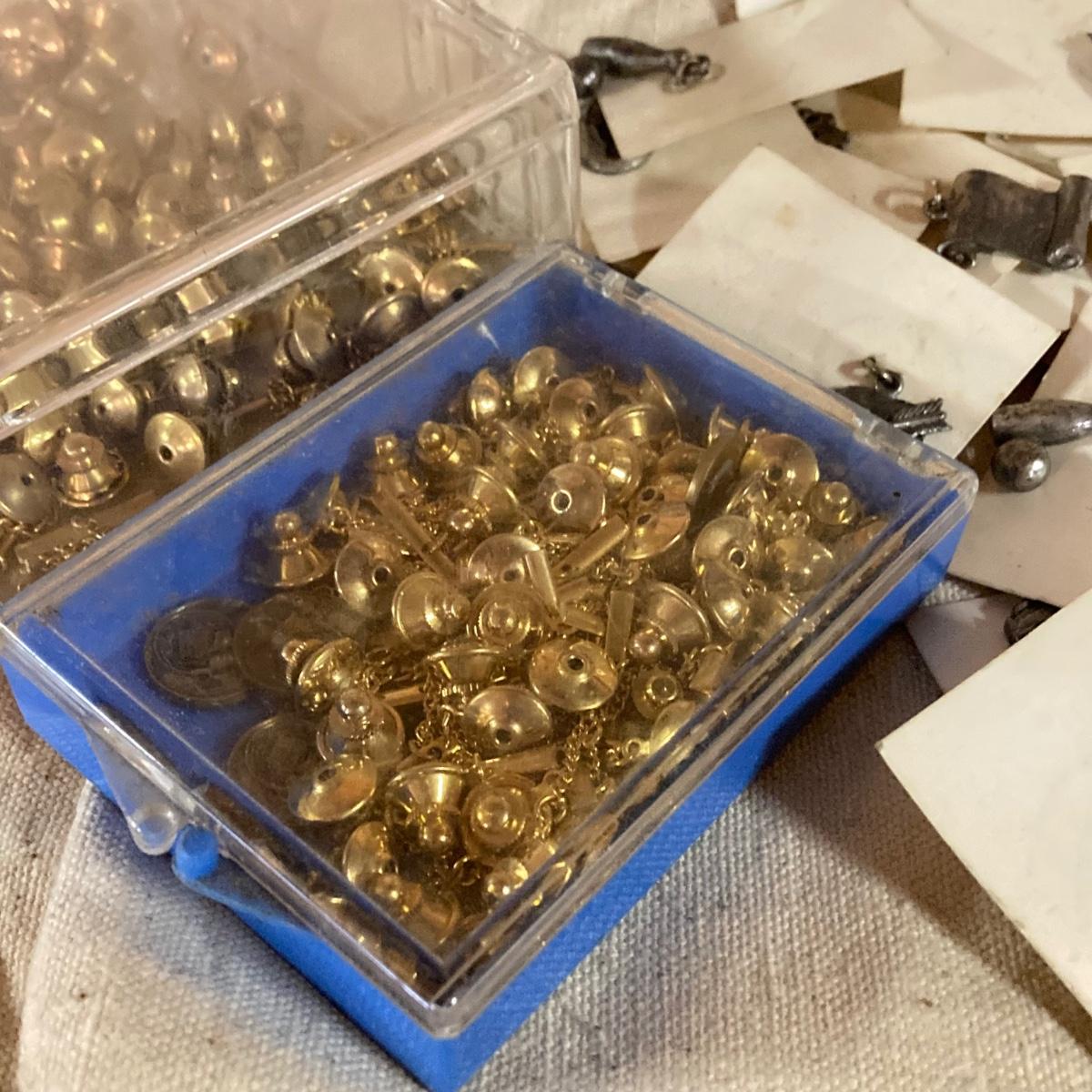 LOT 258: Vintagae Jewelry and Craft Finds - Charms, Gold Tone Corner Pieces, Pin / Tack Backs and More