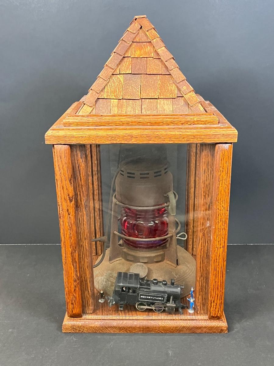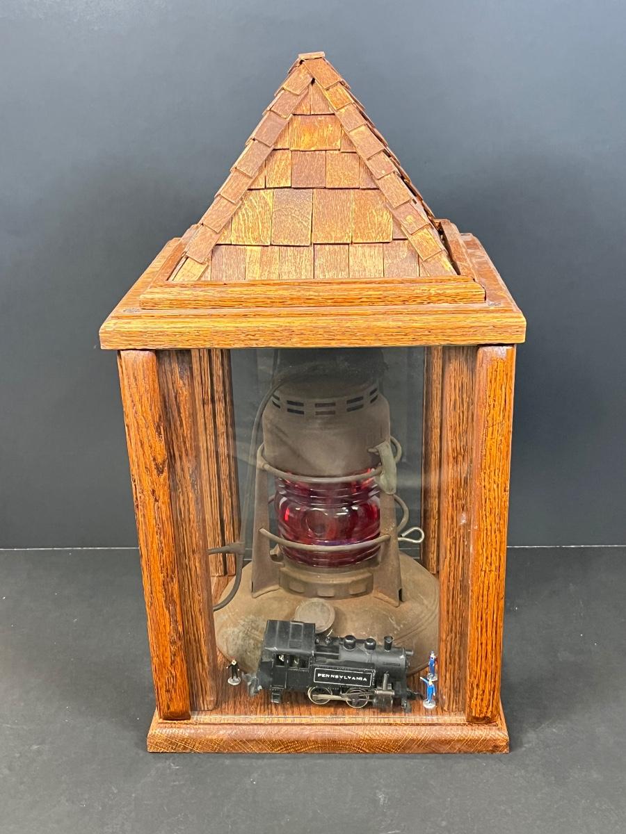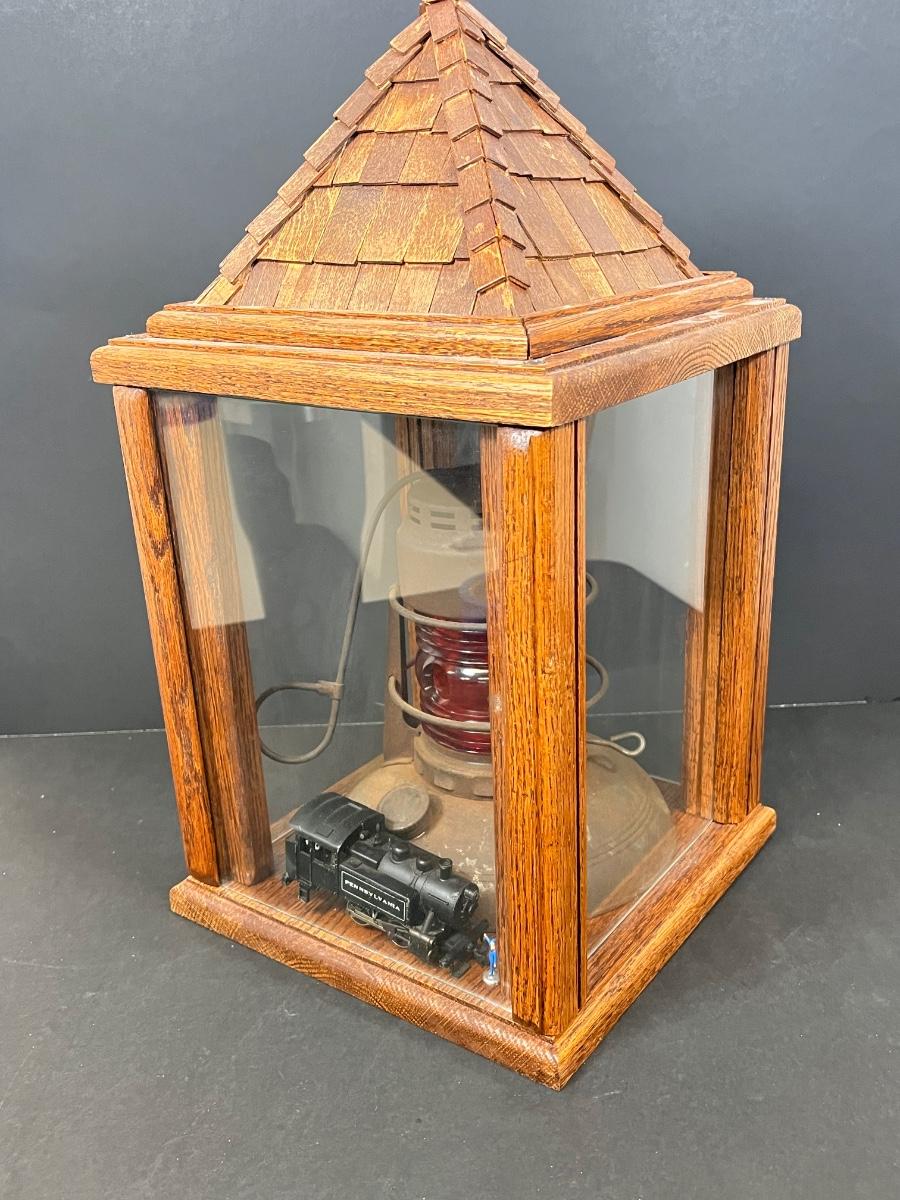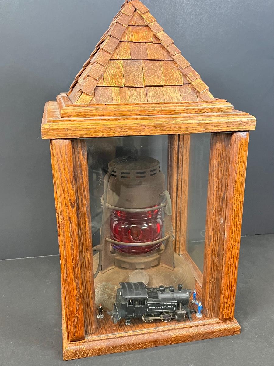 LOT 6: Handmade Railroad Display with Embury No. 4 Lantern and Train
