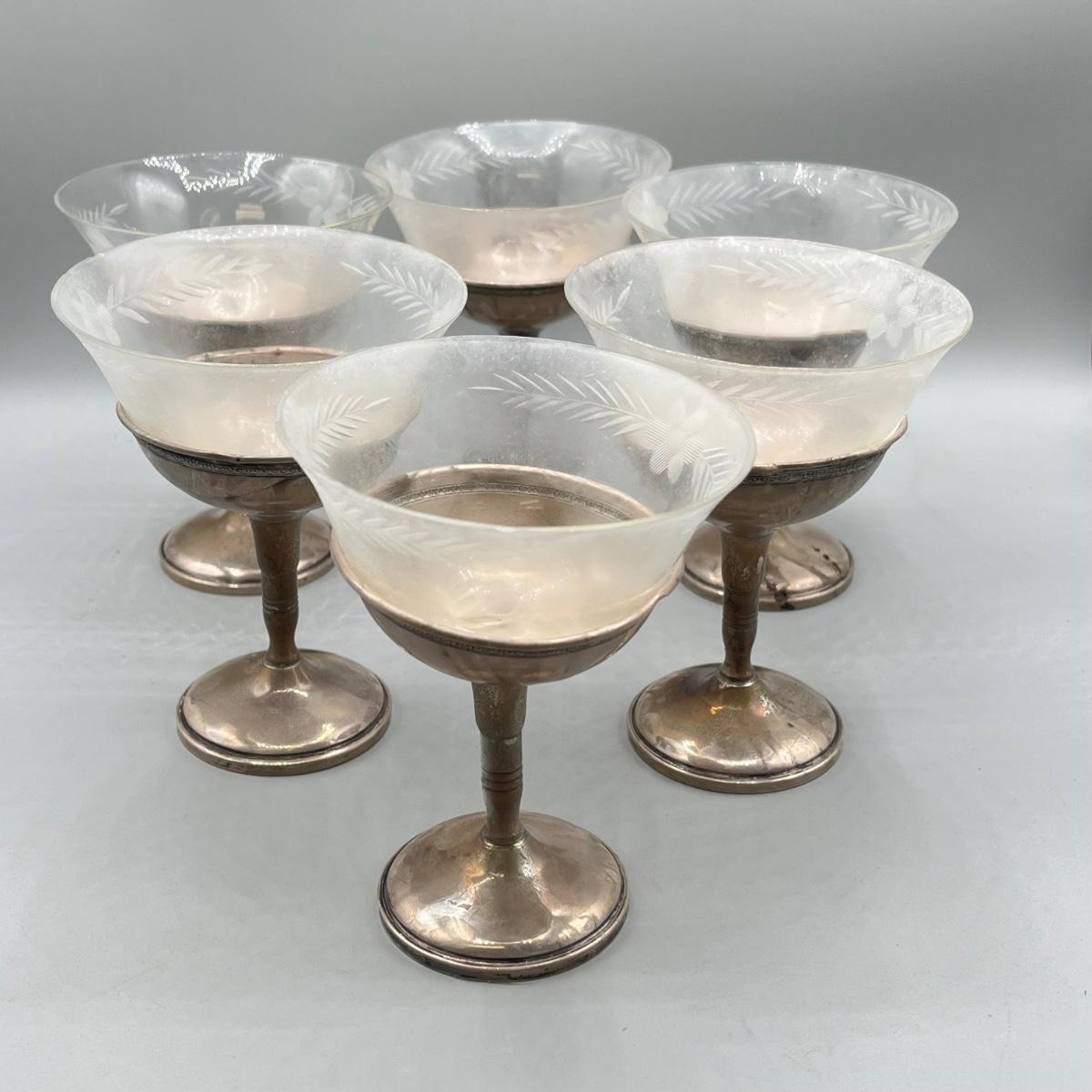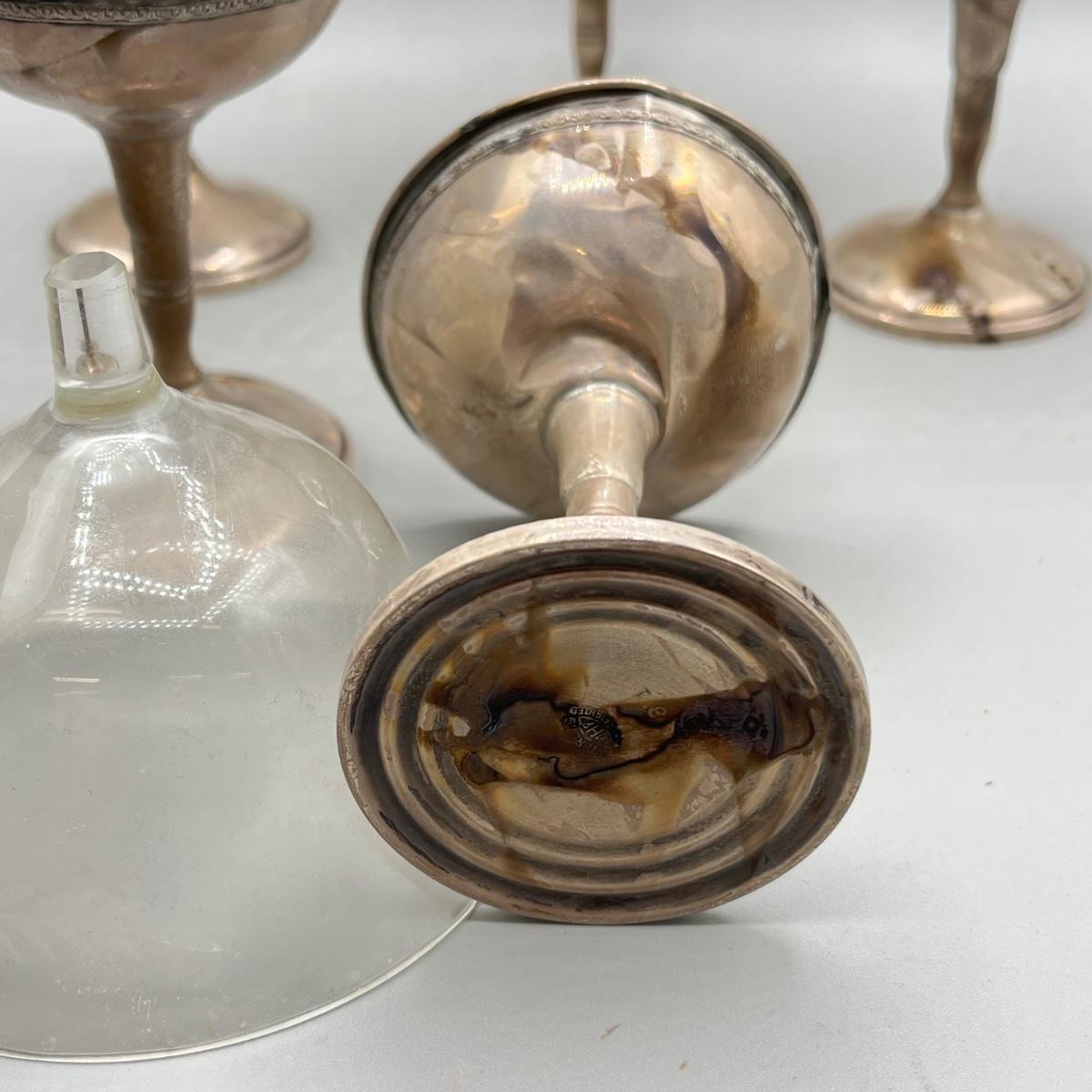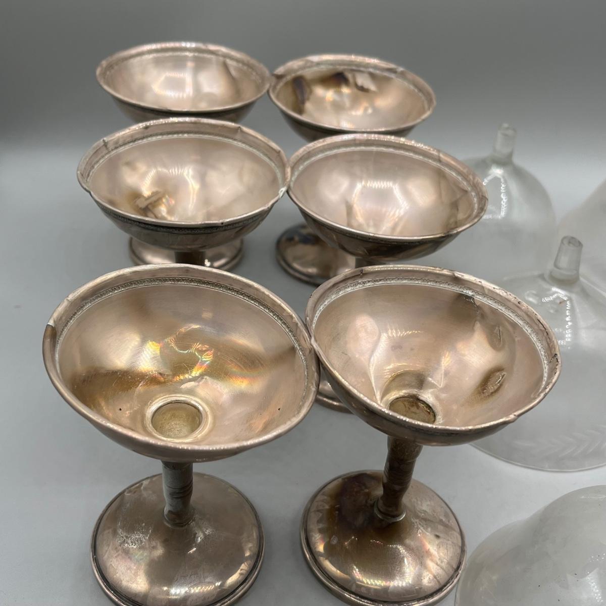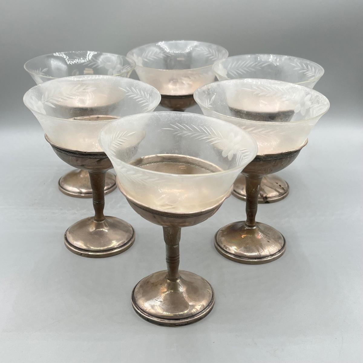 LOT 47: Set of Weighted Sterling Silver And Glass Dessert Glasses
