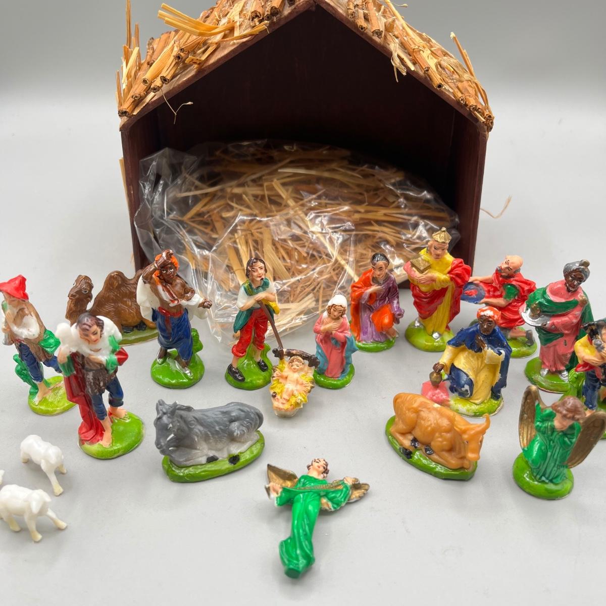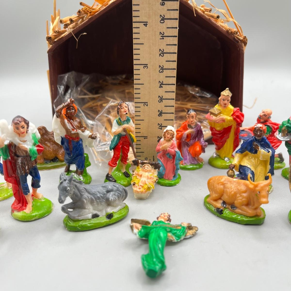 LOT 50: Vintage Painted Plastic Christmas Nativity Set