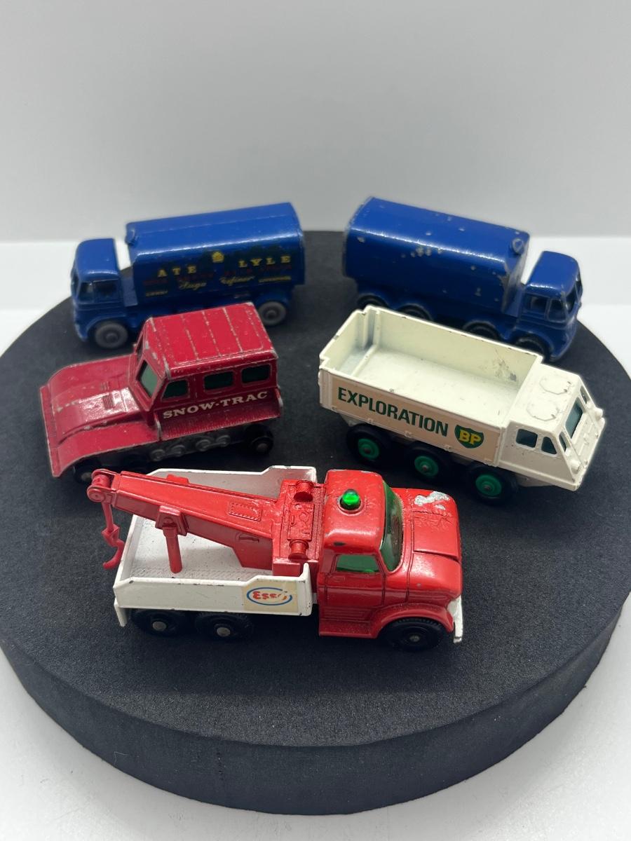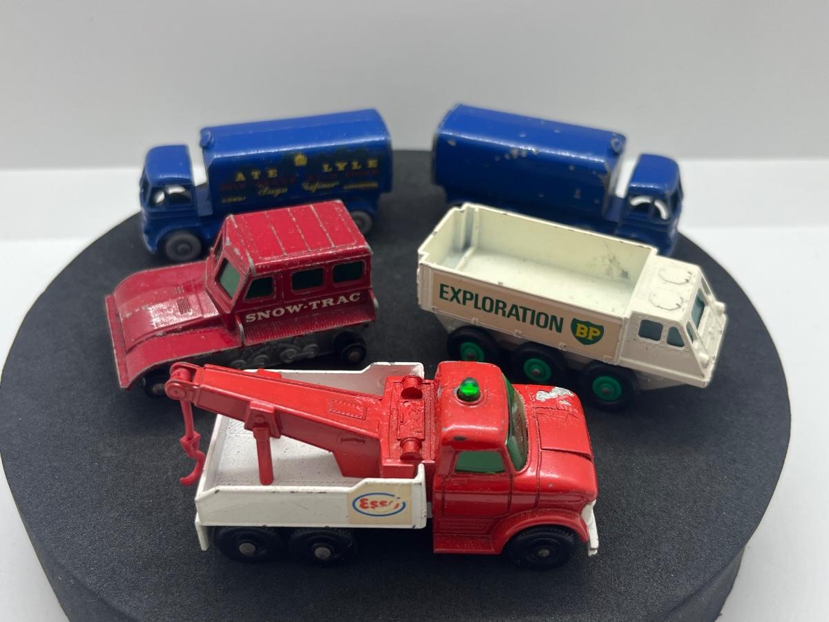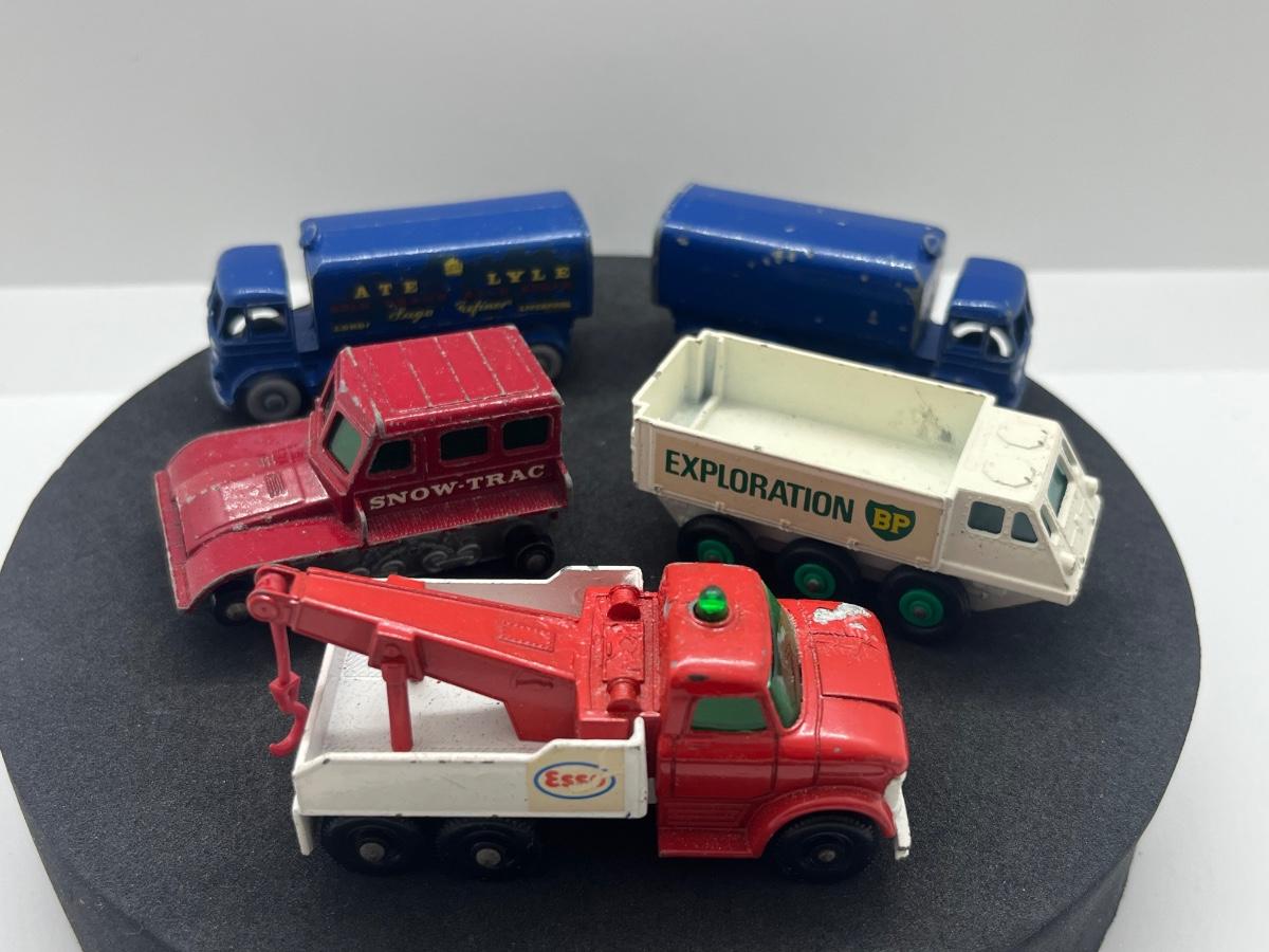 LOT 88: Vintage Lesney Matchbox Vehicles - Snow Trac, Sugar Container, Alvis Stalwart and Ford Heavy Wreck Truck