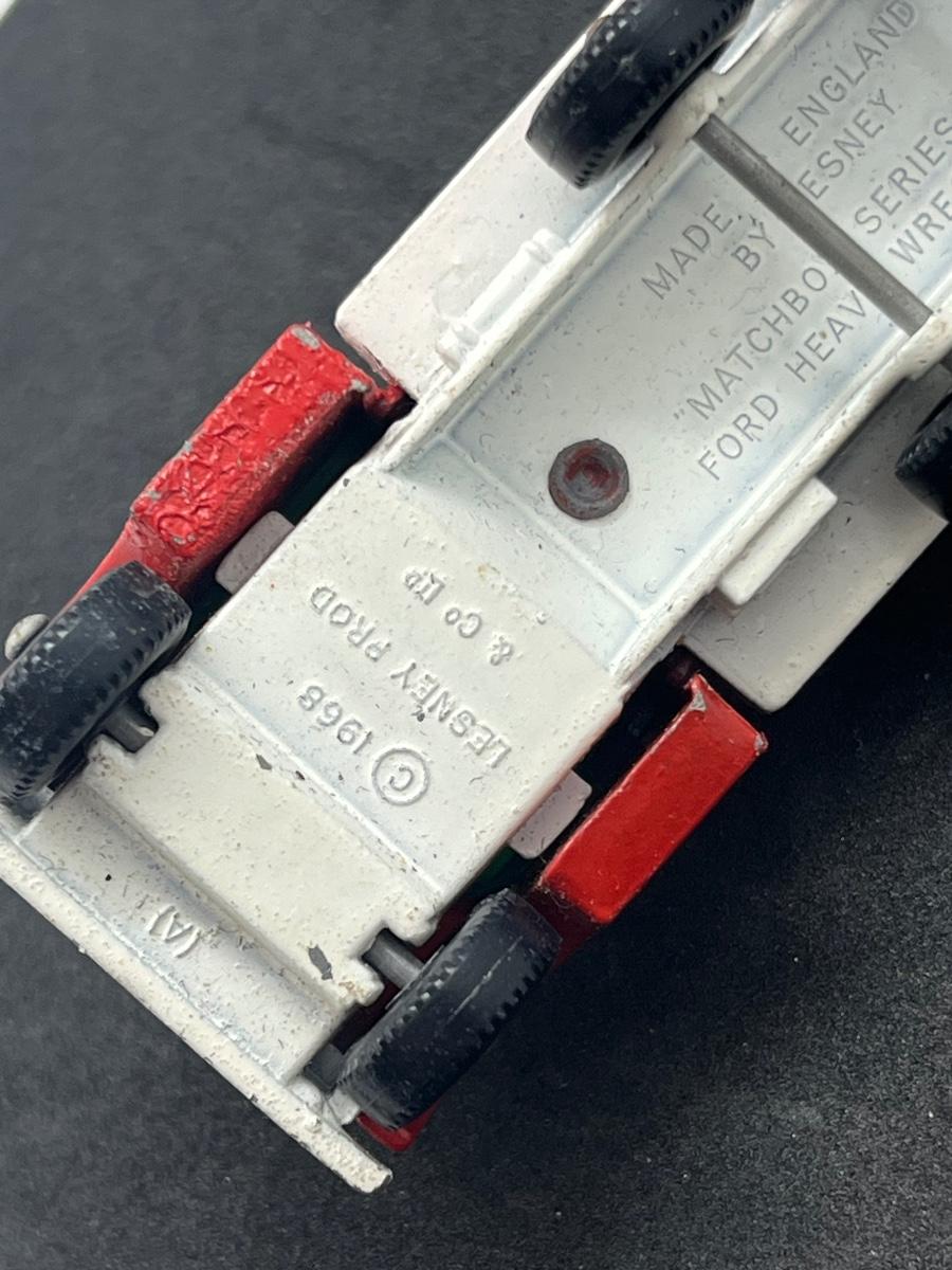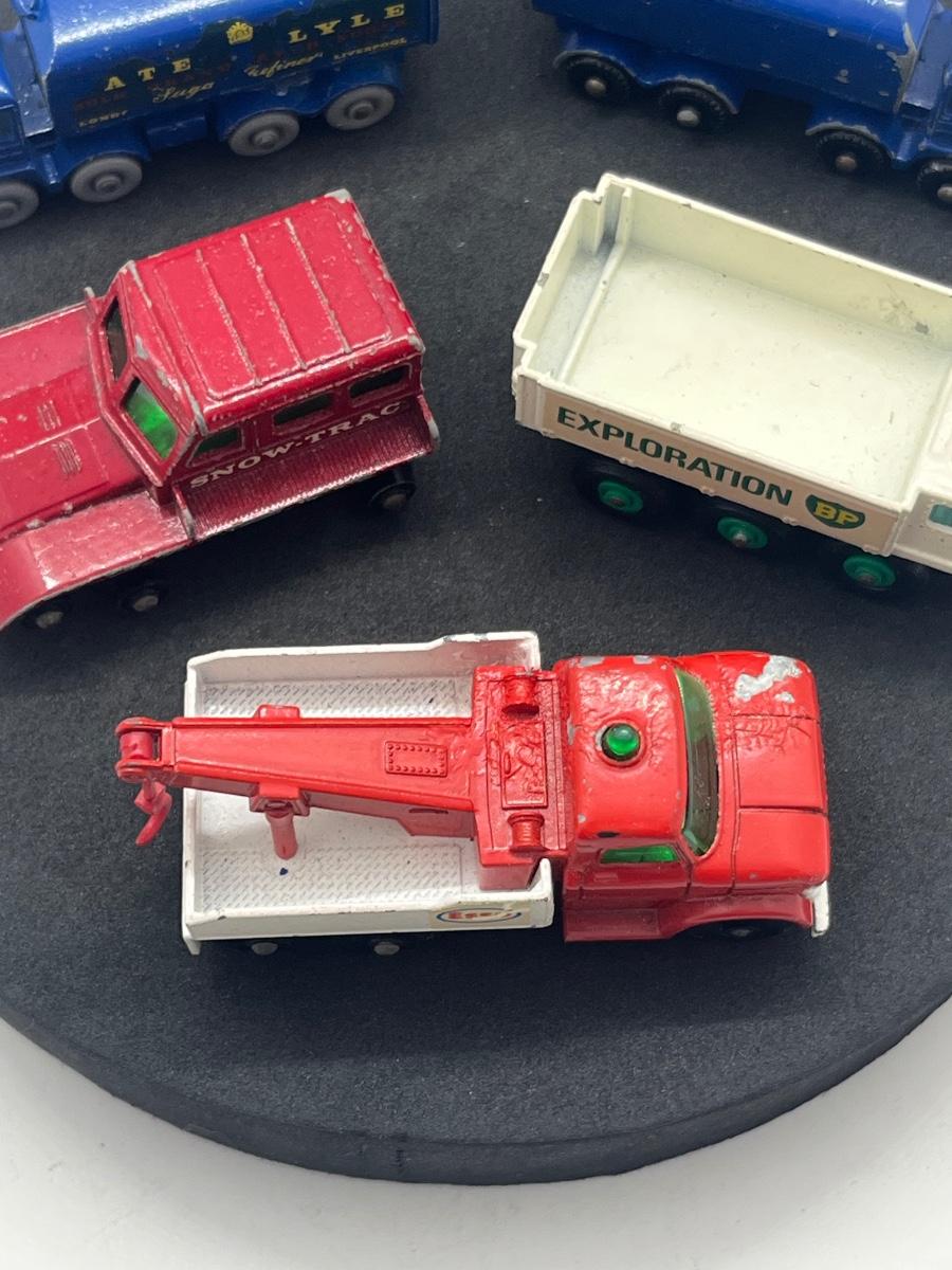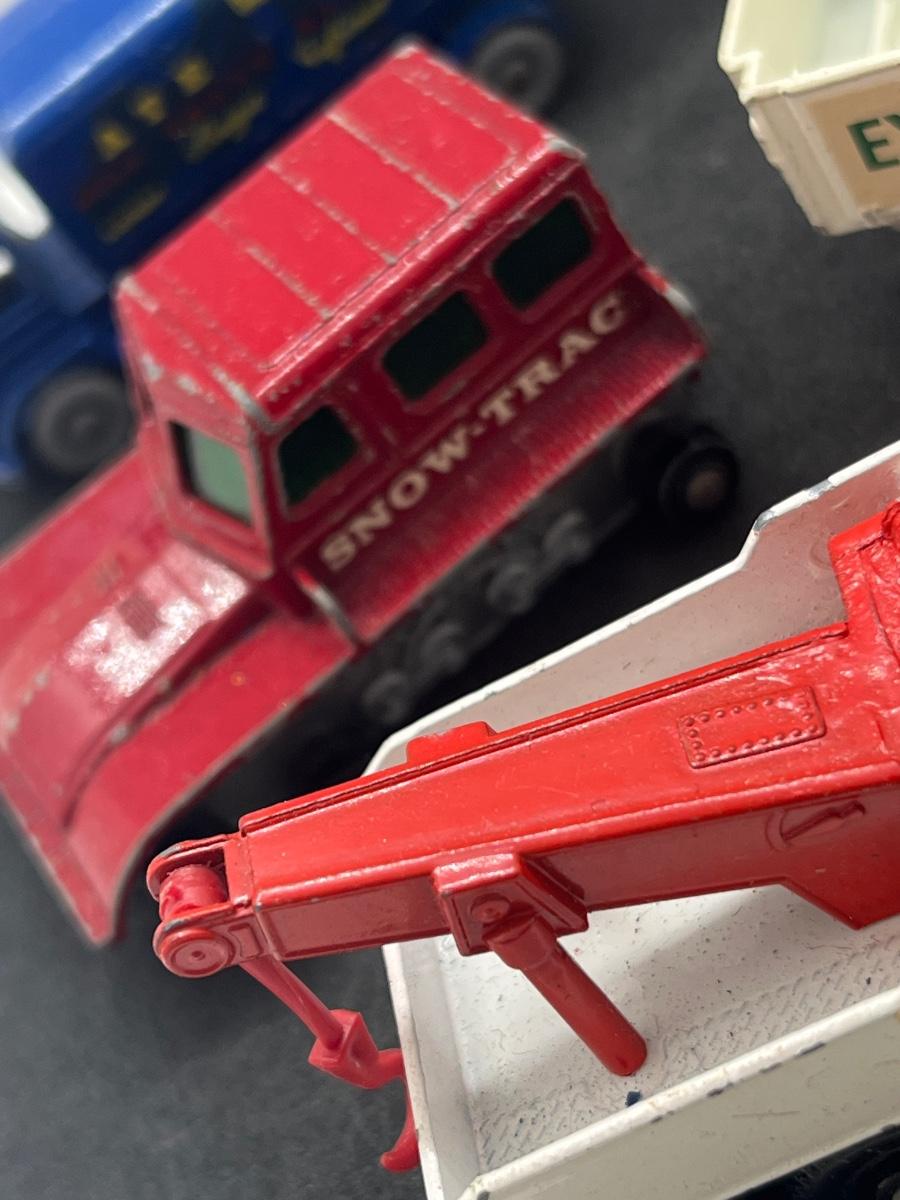LOT 88: Vintage Lesney Matchbox Vehicles - Snow Trac, Sugar Container, Alvis Stalwart and Ford Heavy Wreck Truck
