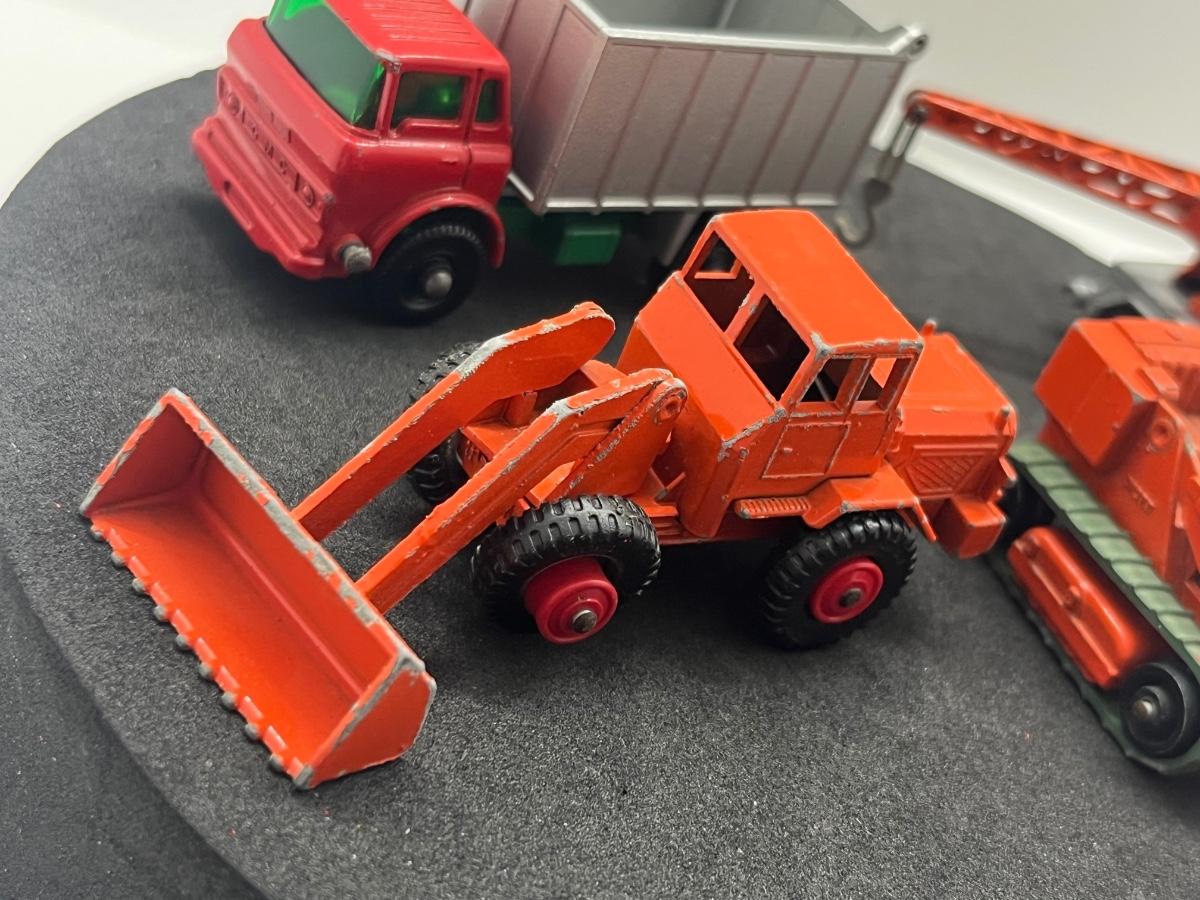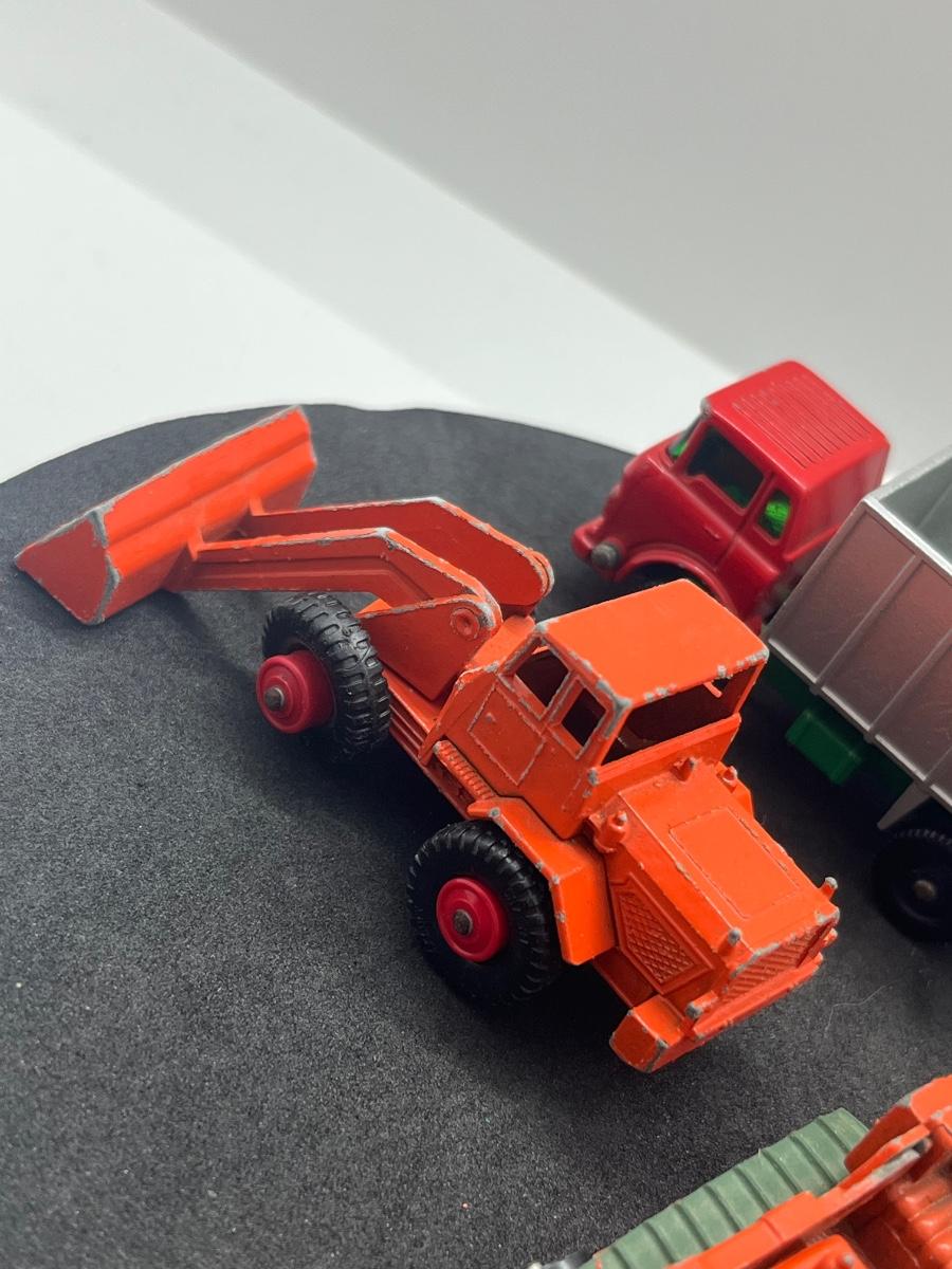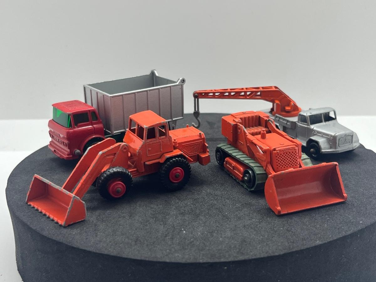 LOT 92: Vintage Lesney Matchbox Vehicles - GMC Tipper Truck, Tractor Shovel, Drott Excavator and Magirus -Deutz Crane Truck