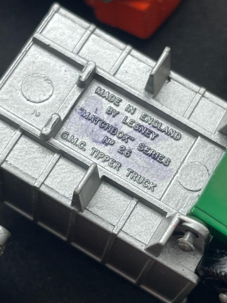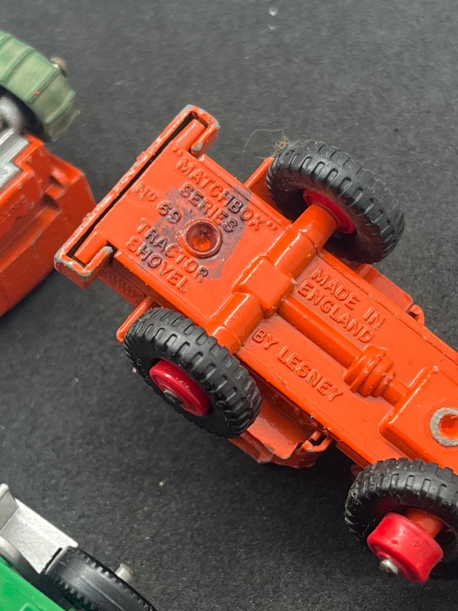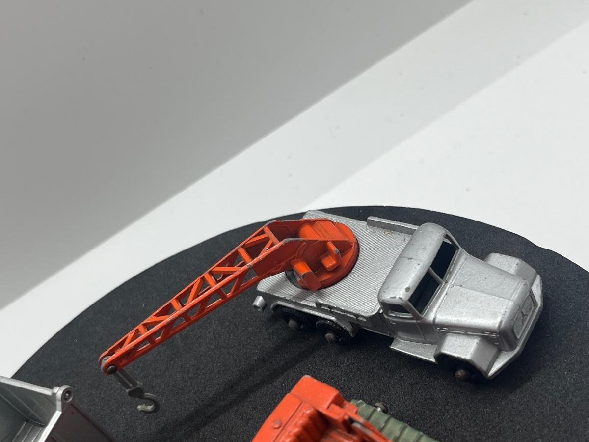 LOT 92: Vintage Lesney Matchbox Vehicles - GMC Tipper Truck, Tractor Shovel, Drott Excavator and Magirus -Deutz Crane Truck