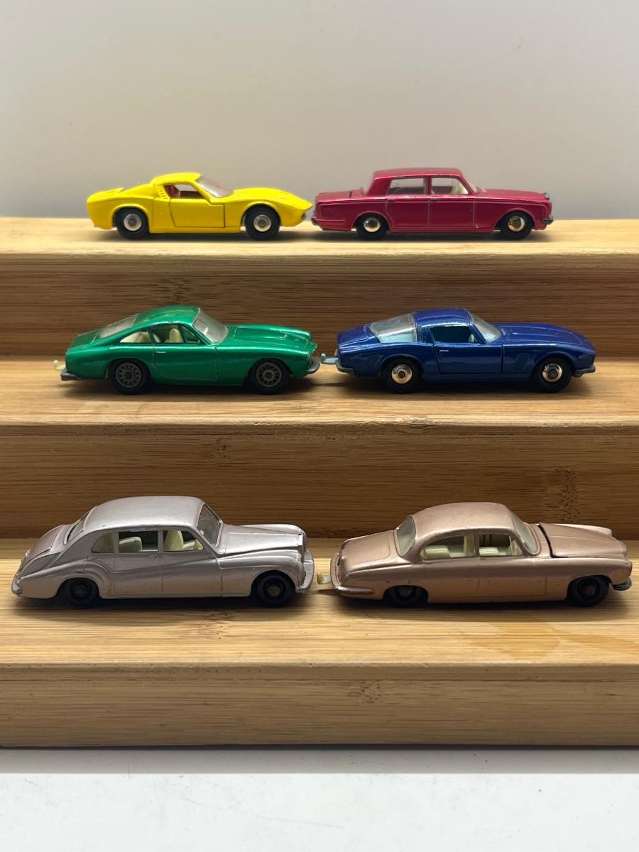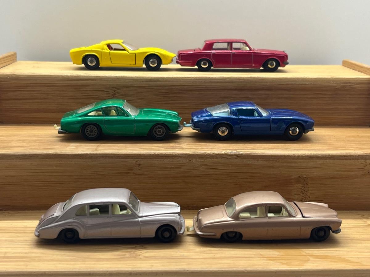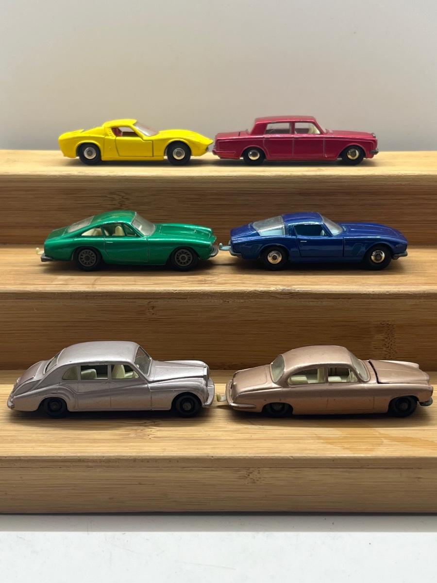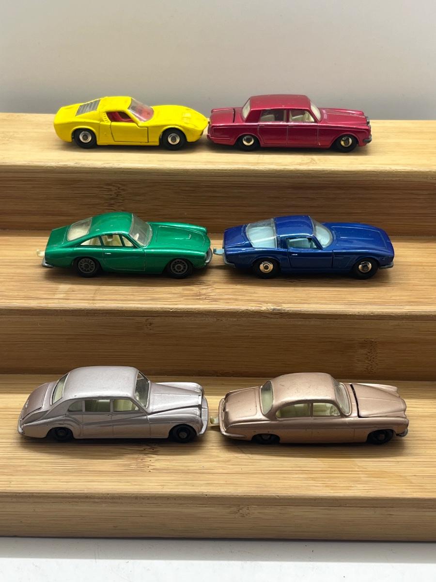 LOT 97: Vintage Lesney Matchbox Cars - Lamborghini Miura, Rolls Royce Silver Shadow, Ferrari Berlinetta, Iso Grifo, Rolls Royce Phantom V, Jaguar MK 10