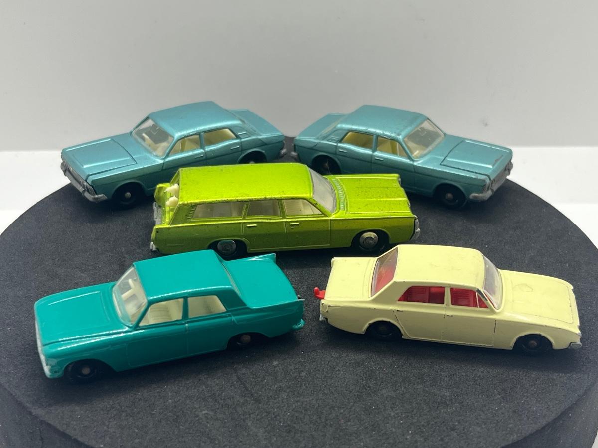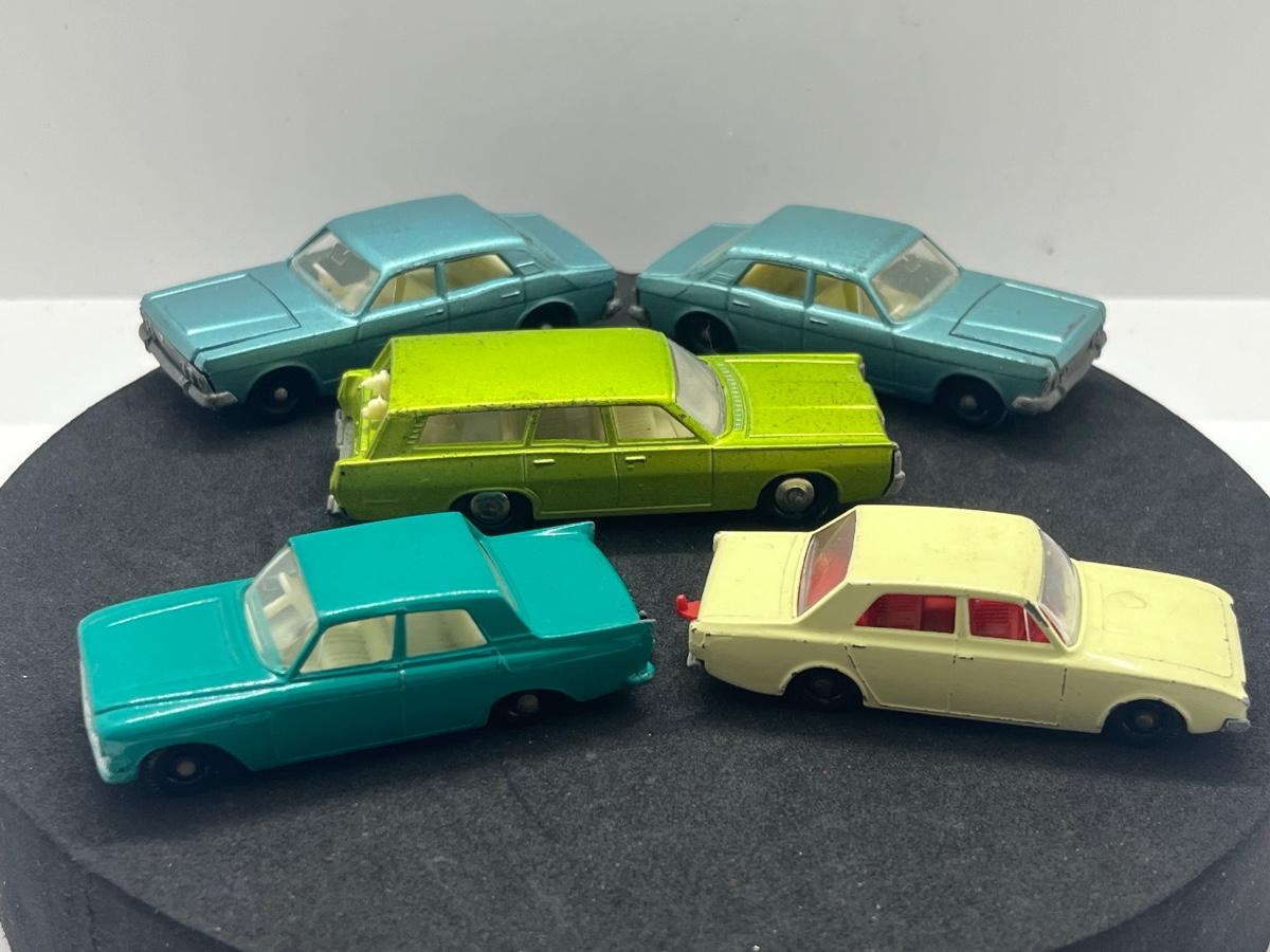 LOT 99: Vintage Lesney Matchbox Cars - Mercury, Two Ford Zodiac MK IV, Ford Zephyr, Ford Corsair