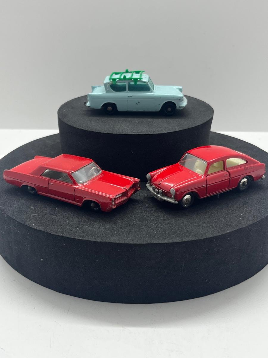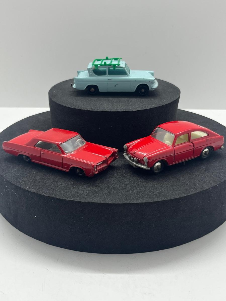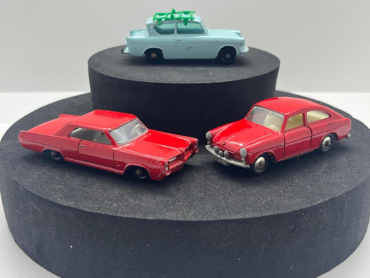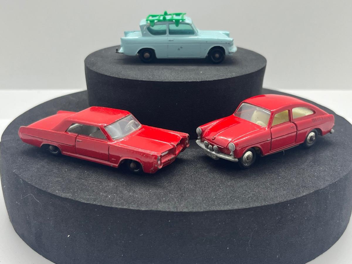 LOT 102: Vintage Lesney Matchbox Cars - Ford Anglia, Pontiac GP Sports Coupe, Volkswagen 1600TL