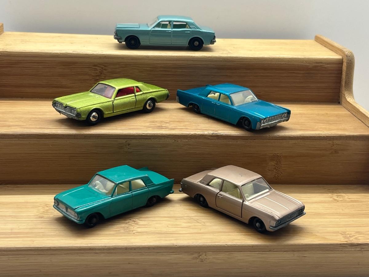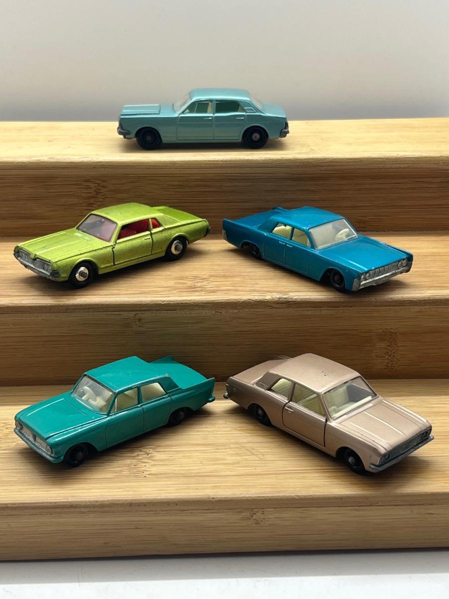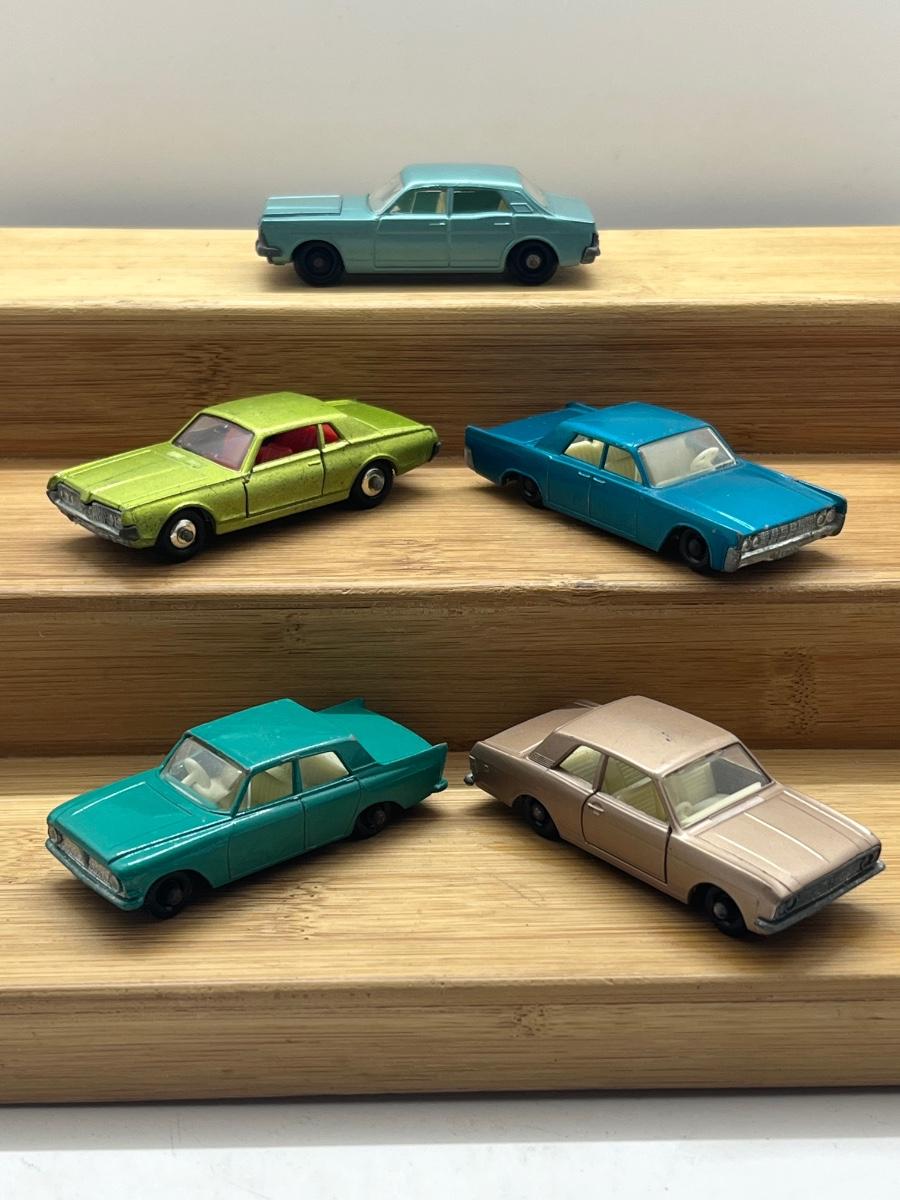 LOT 107: Vintage Lesney Matchbox Cars - Mercury Cougar, Ford Zephyr, Ford Cortina, Lincoln Continental and Ford Zodiac MK IV