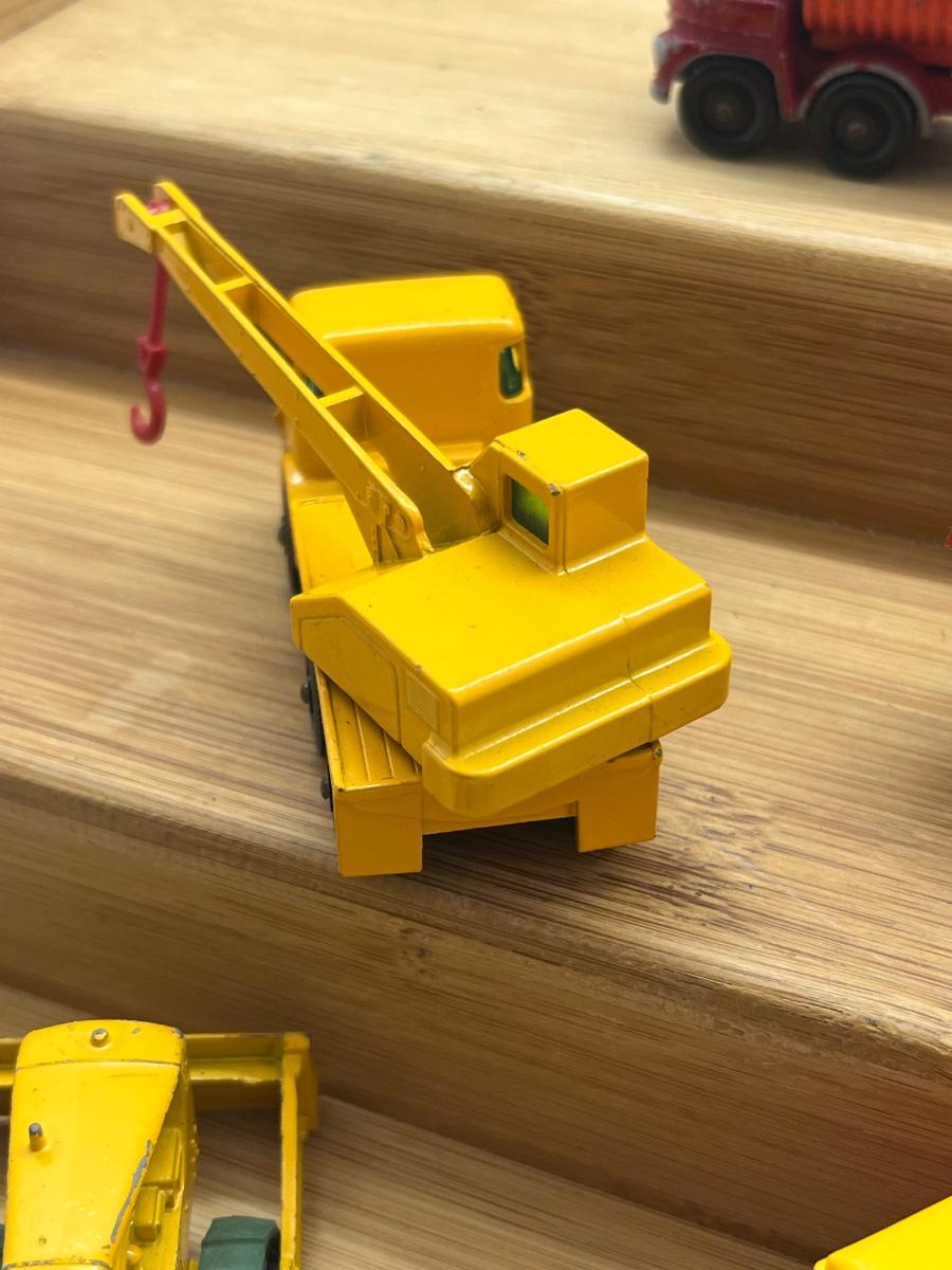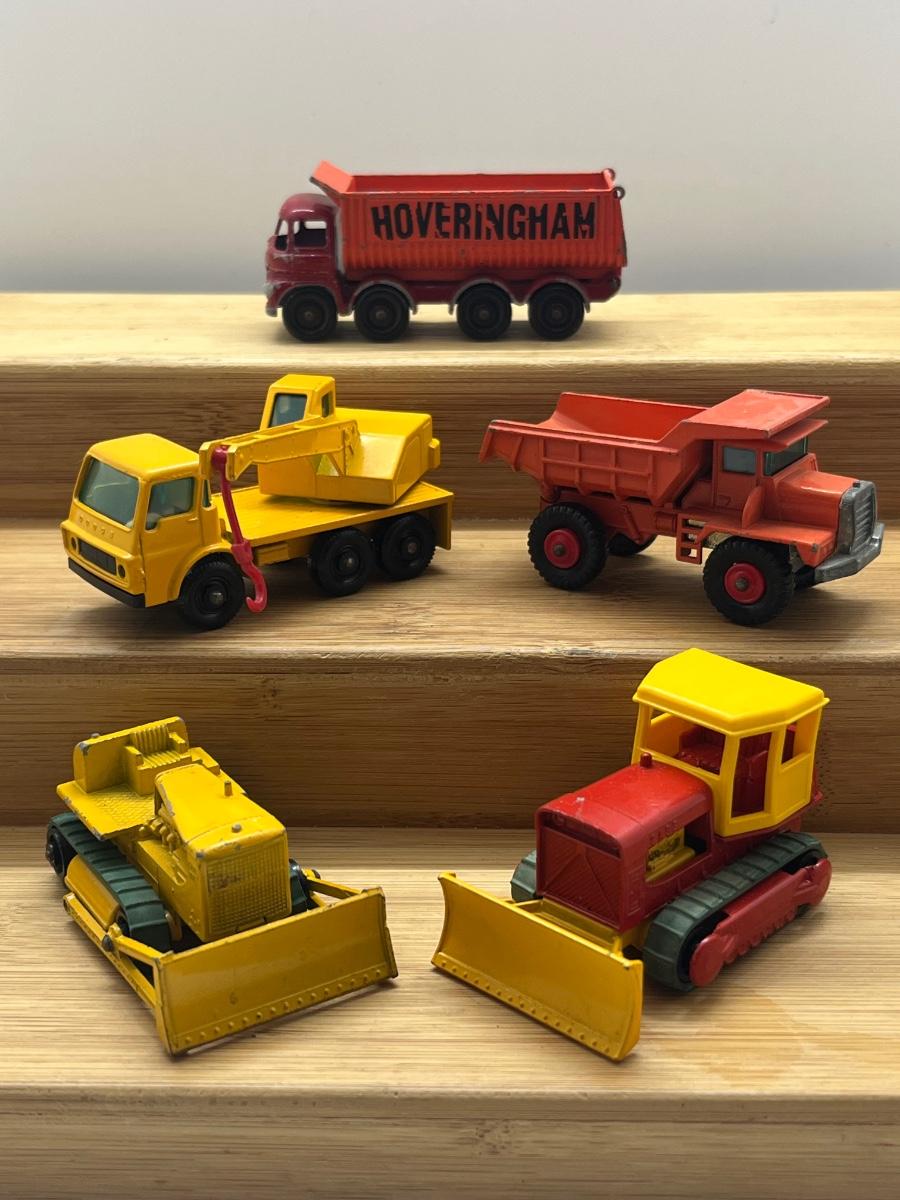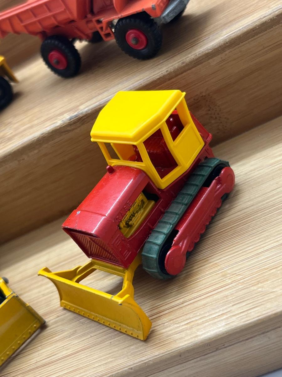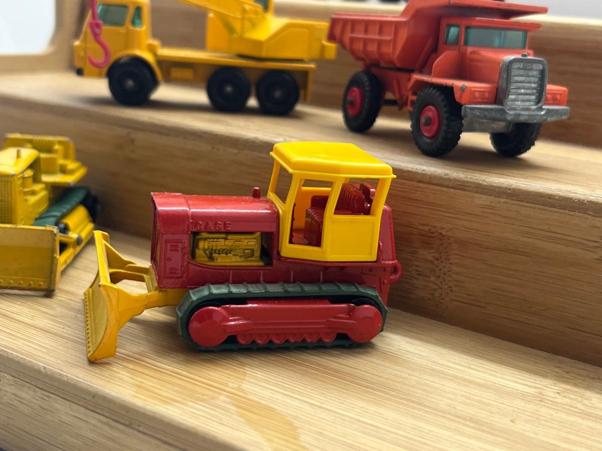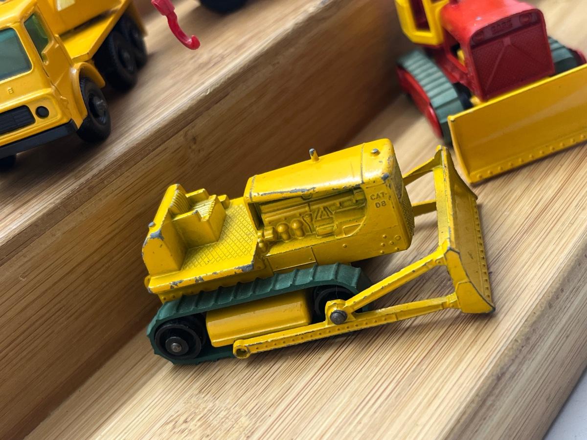 LOT 112: Vintage Lesney Matchbox Construction Vehicles - Crane Truck, Caterpillar Bulldozer, Mack Dump Truck and More