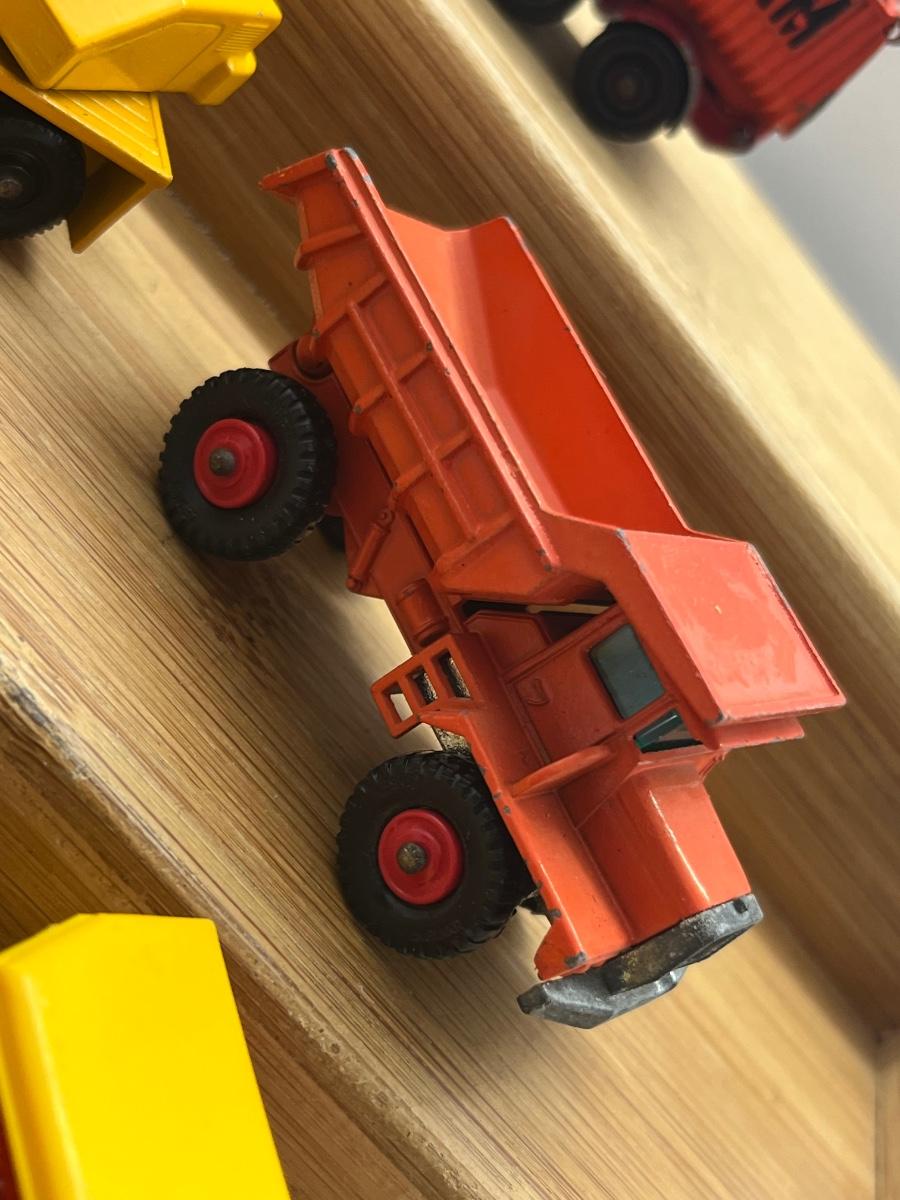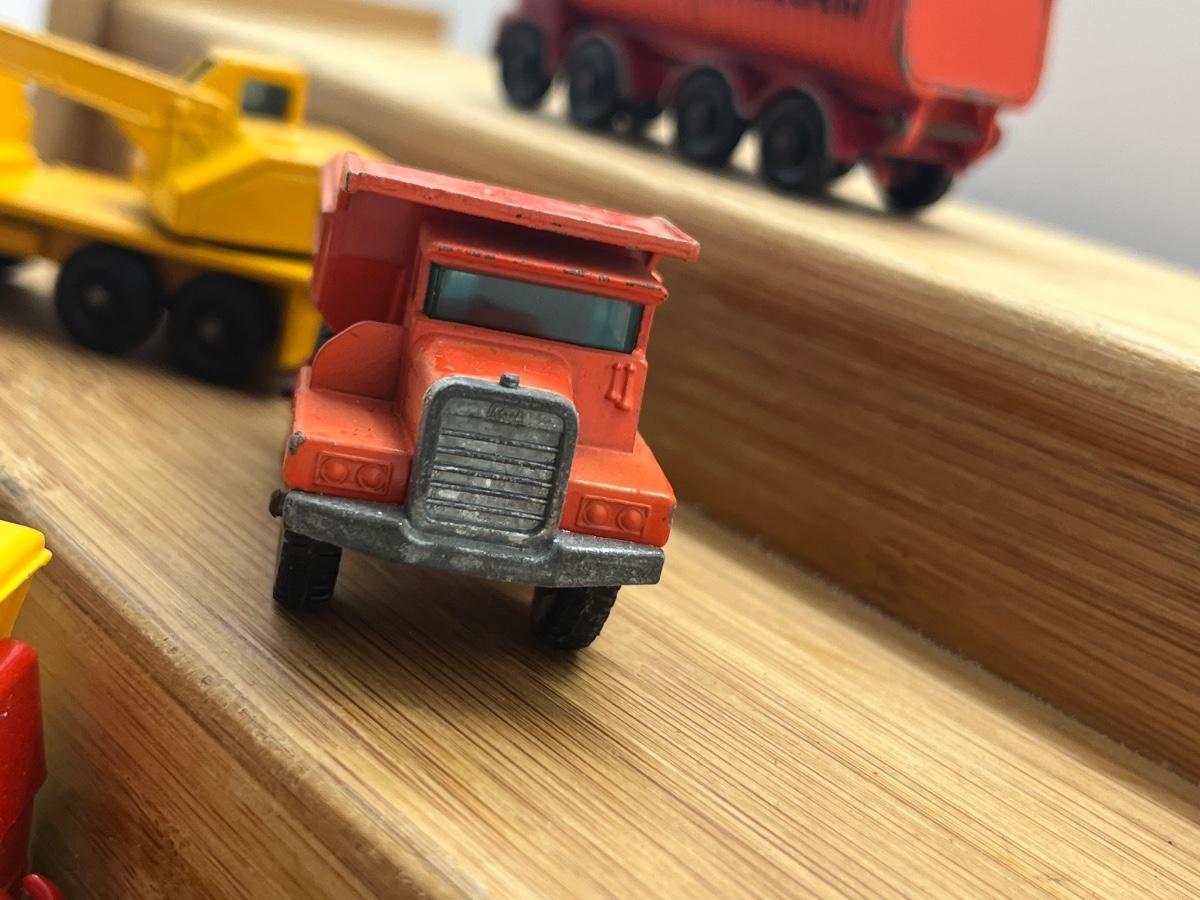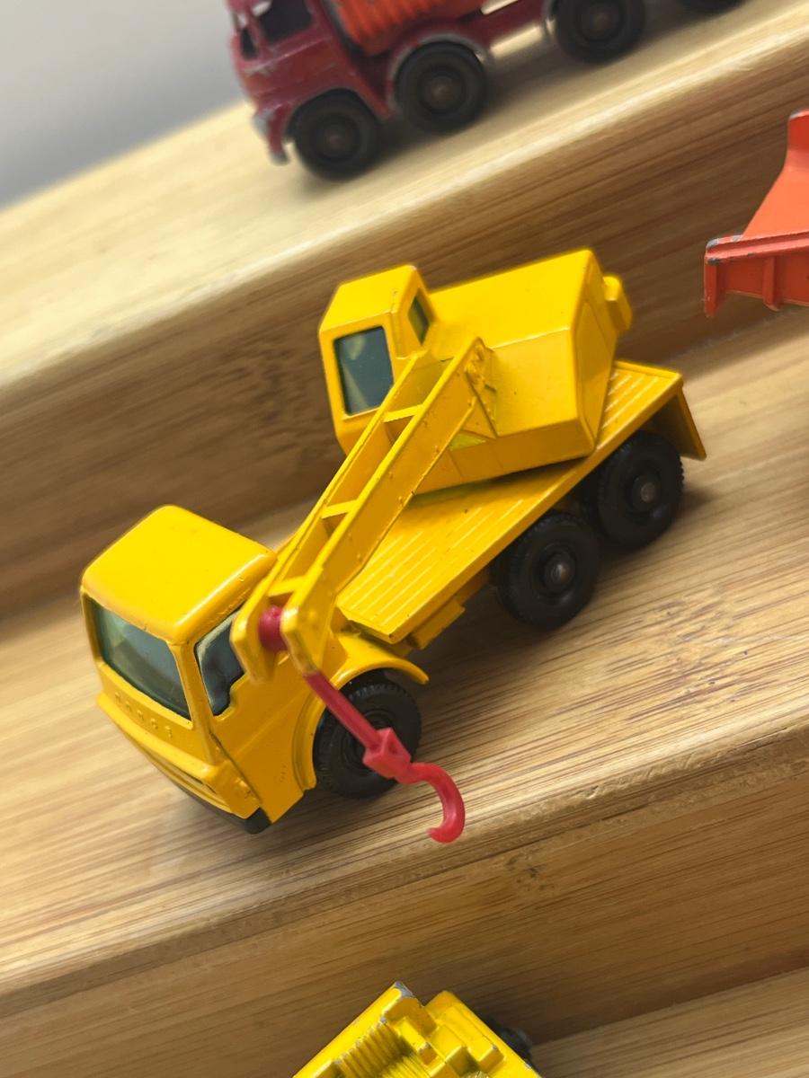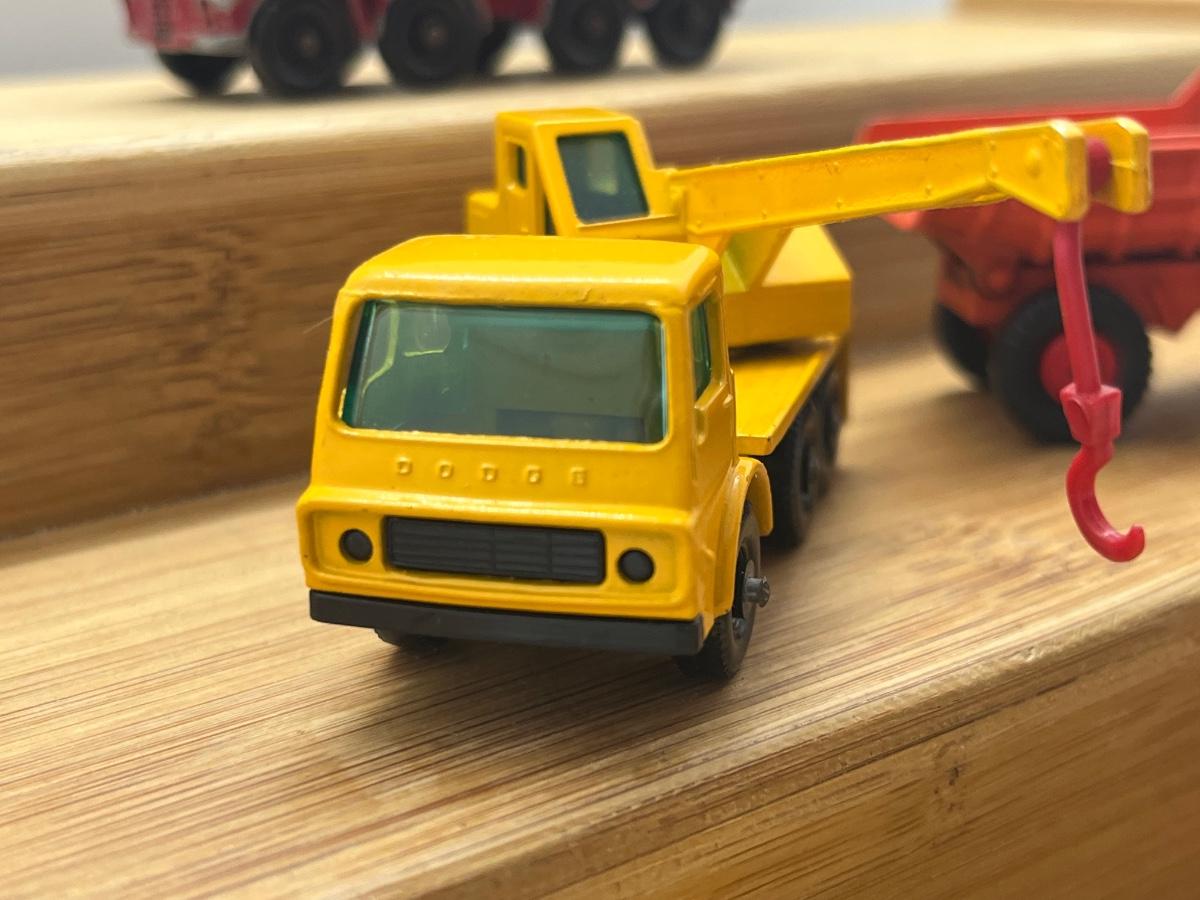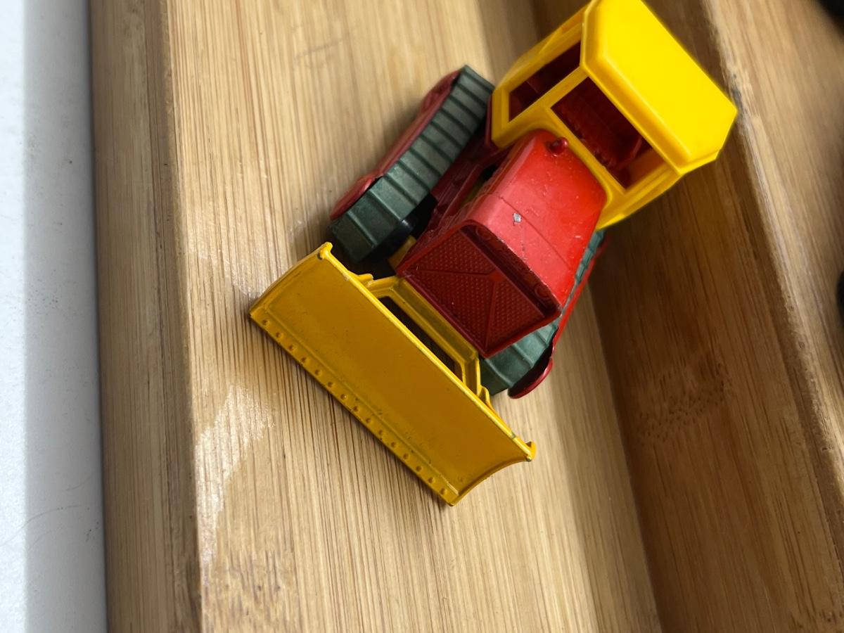 LOT 112: Vintage Lesney Matchbox Construction Vehicles - Crane Truck, Caterpillar Bulldozer, Mack Dump Truck and More