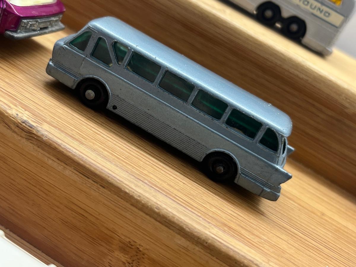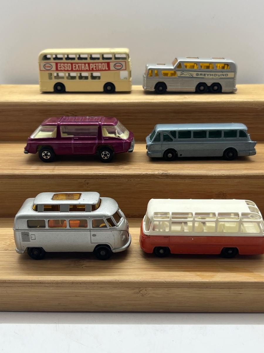 LOT 120: Vintage Lesney Matchbox Vehicles - Mercedes Coach, Freeman Inter-City Commuter, Royal Tiger Coach, Daimler Bus, Coach, Volkswagen Camper
