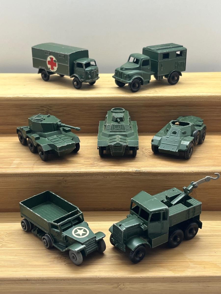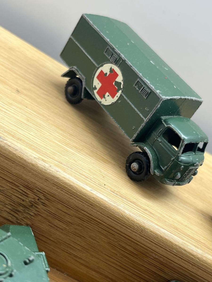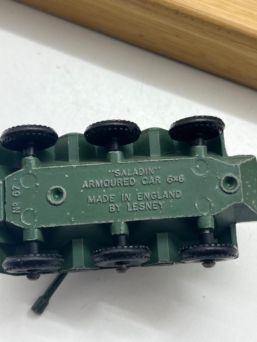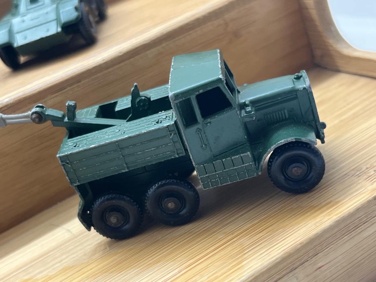 LOT 130: Vintage Lesney Toy Military Vehicles - Scammell Breakdown Truck, Personnel Carrier, Saladin Armoured Car and More