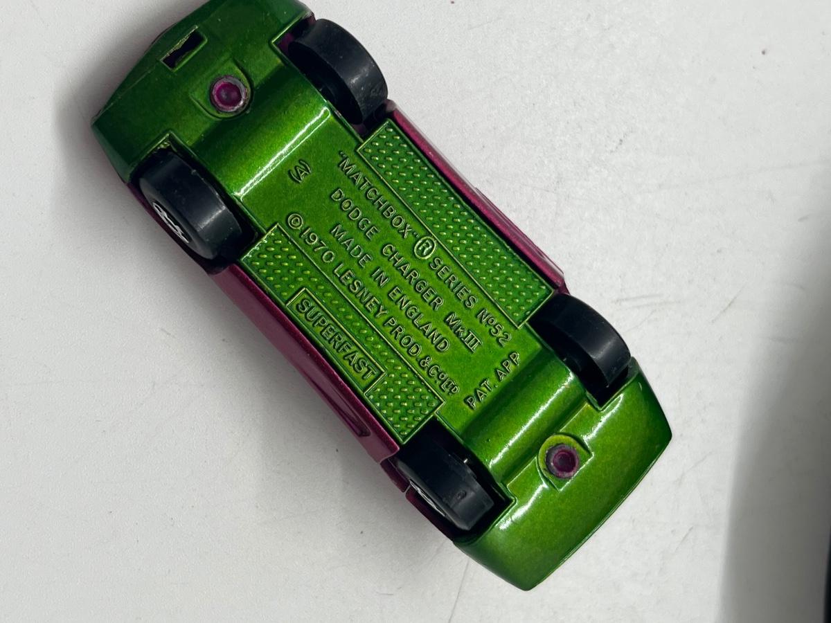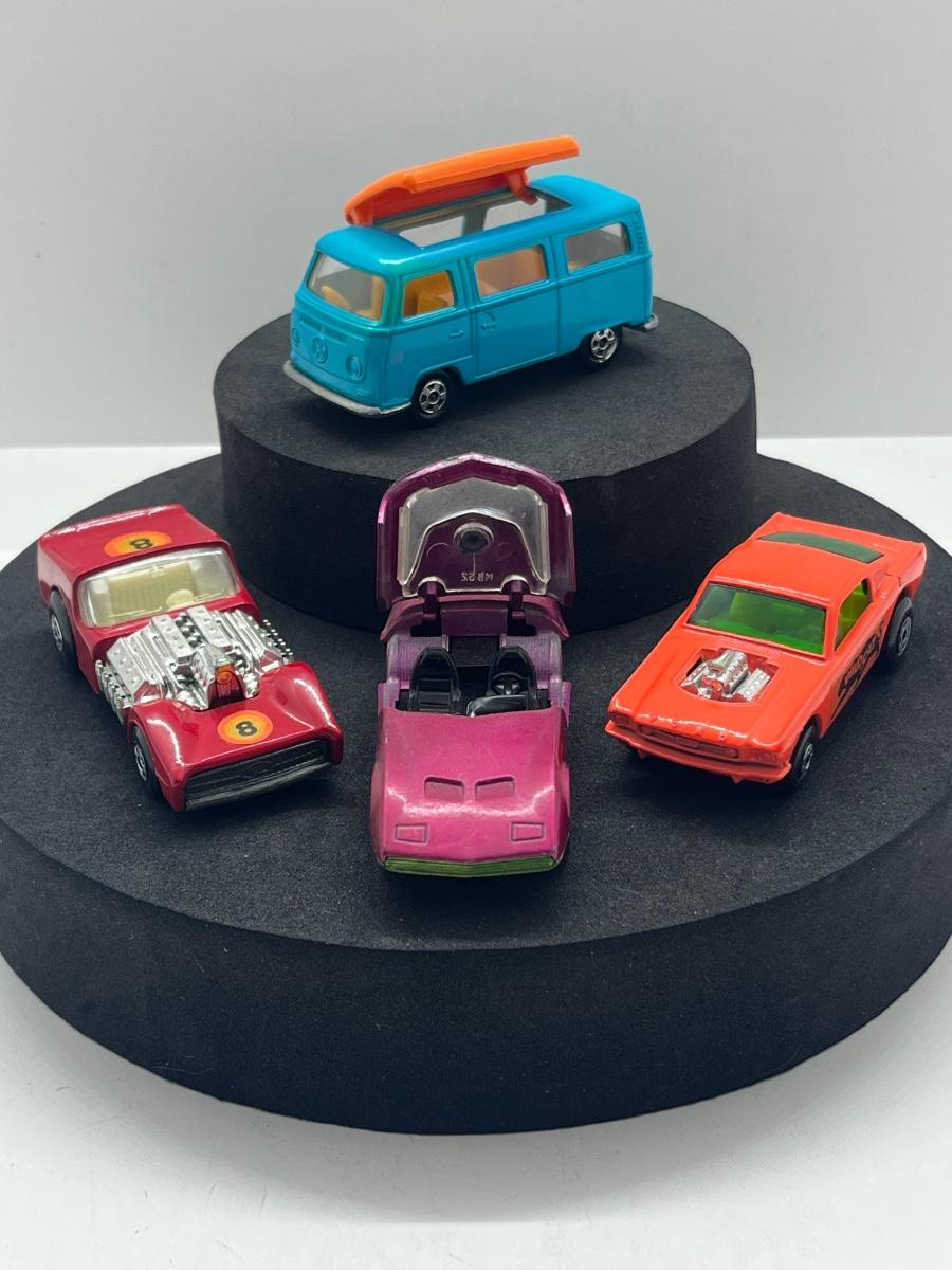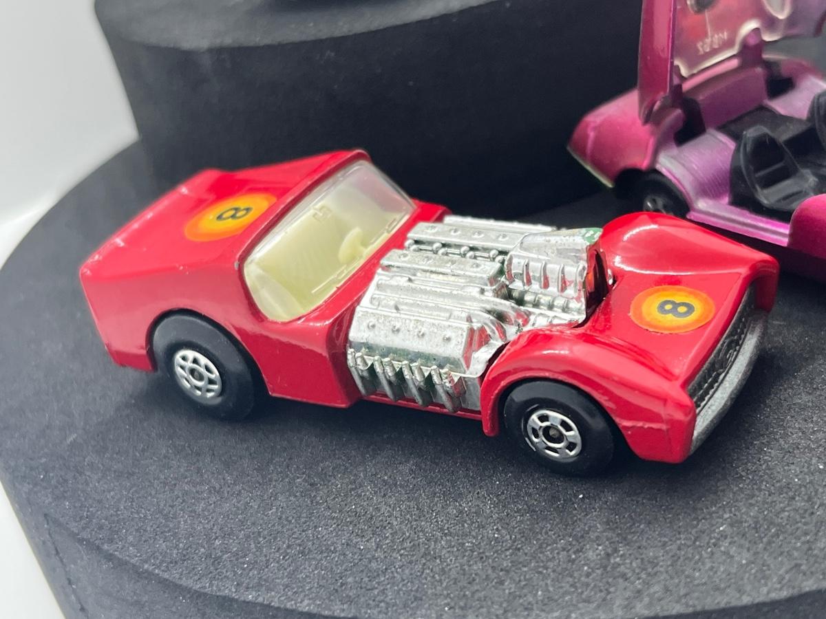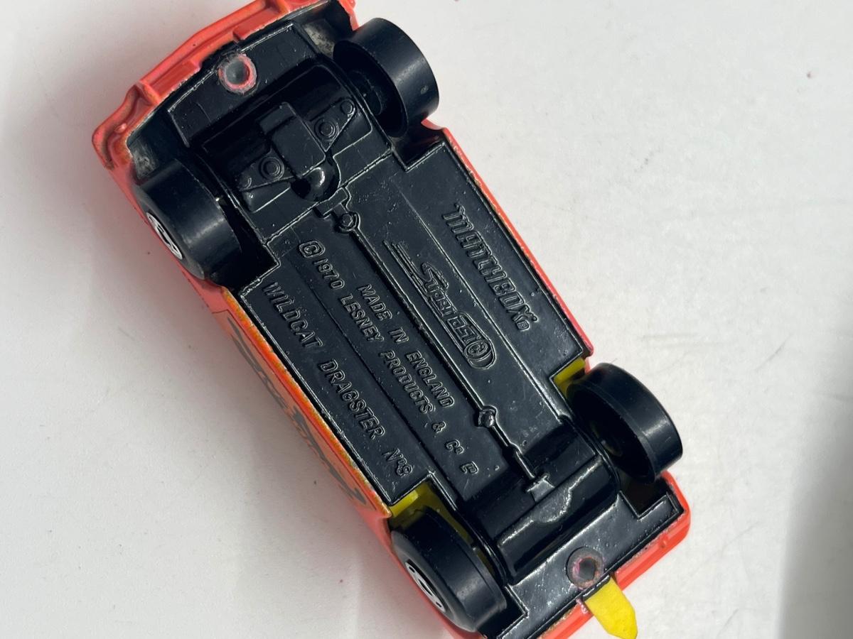 LOT 135: Vintange Lensey Matchbox Vehicles - Volkswagen Camper Road Dragster, Dodge Charger MkIII, Wildcat Dragster