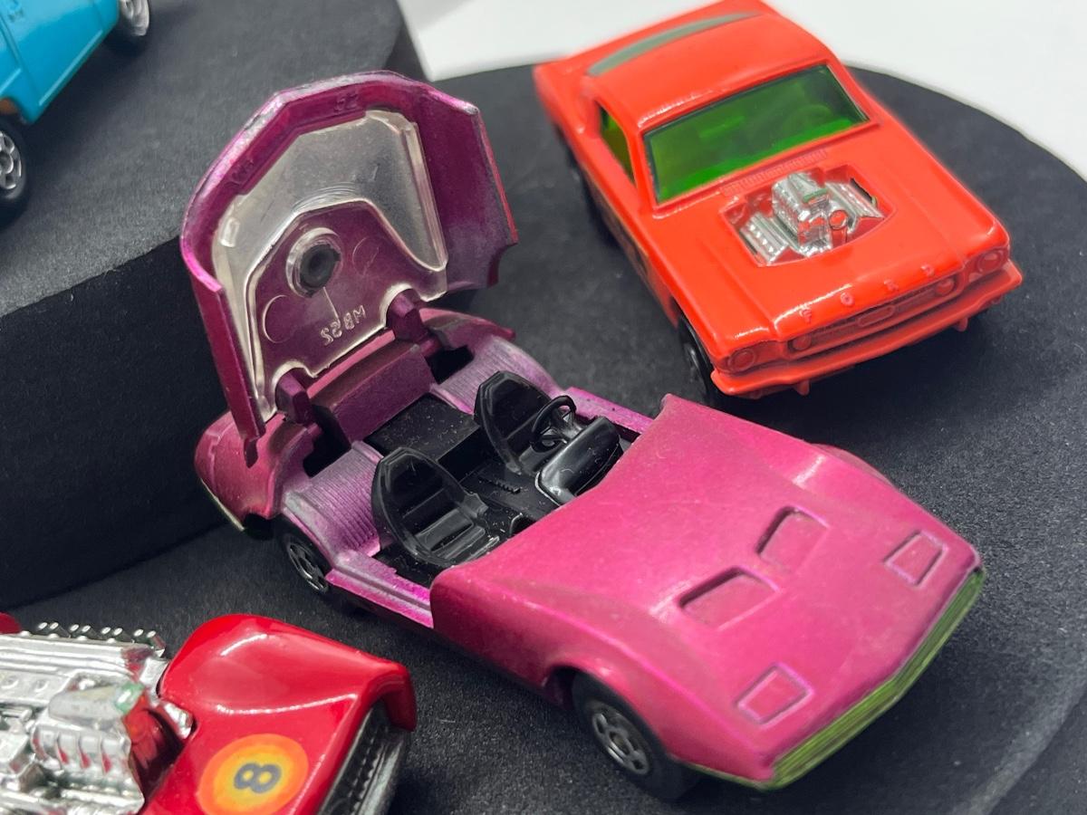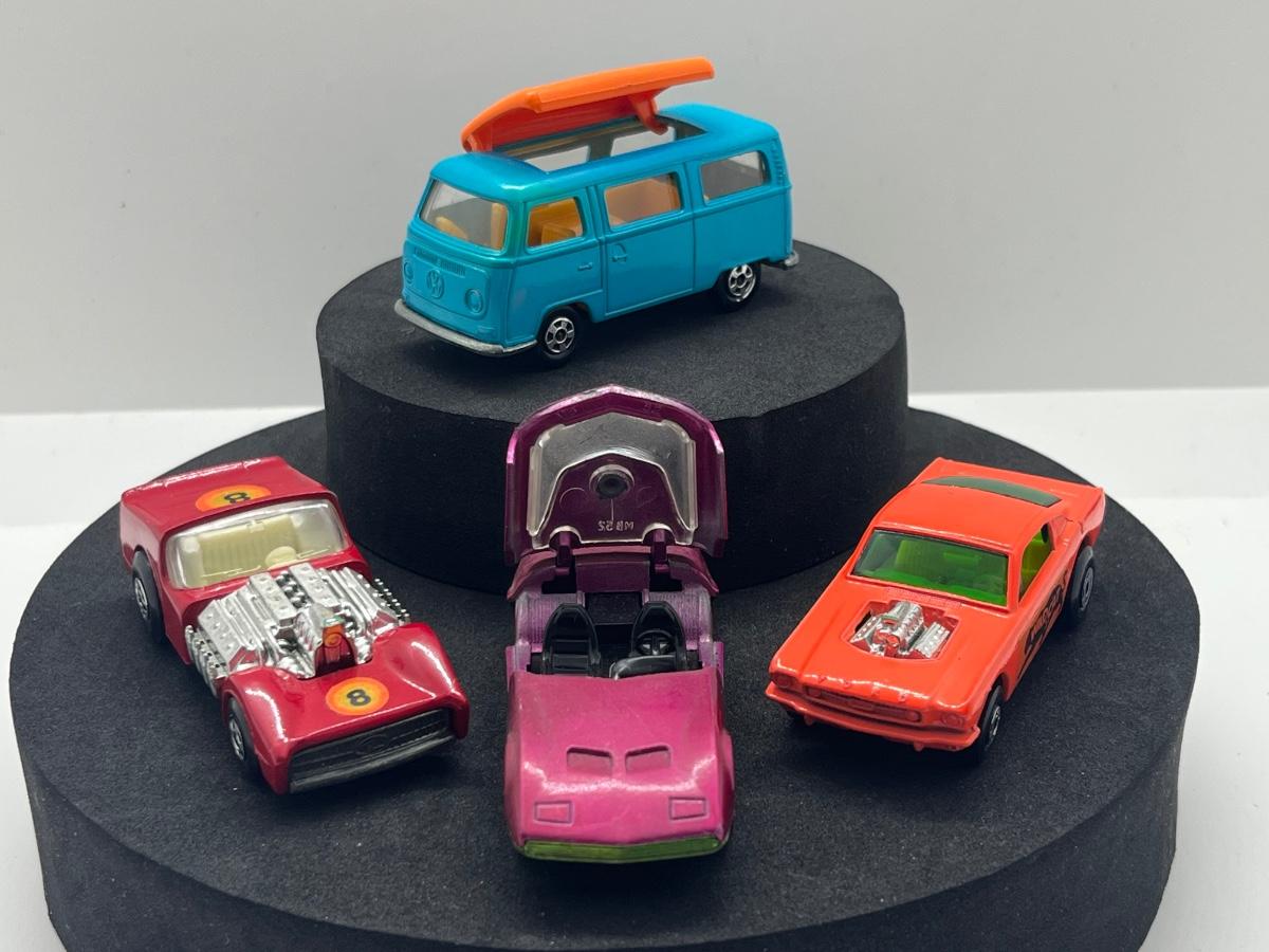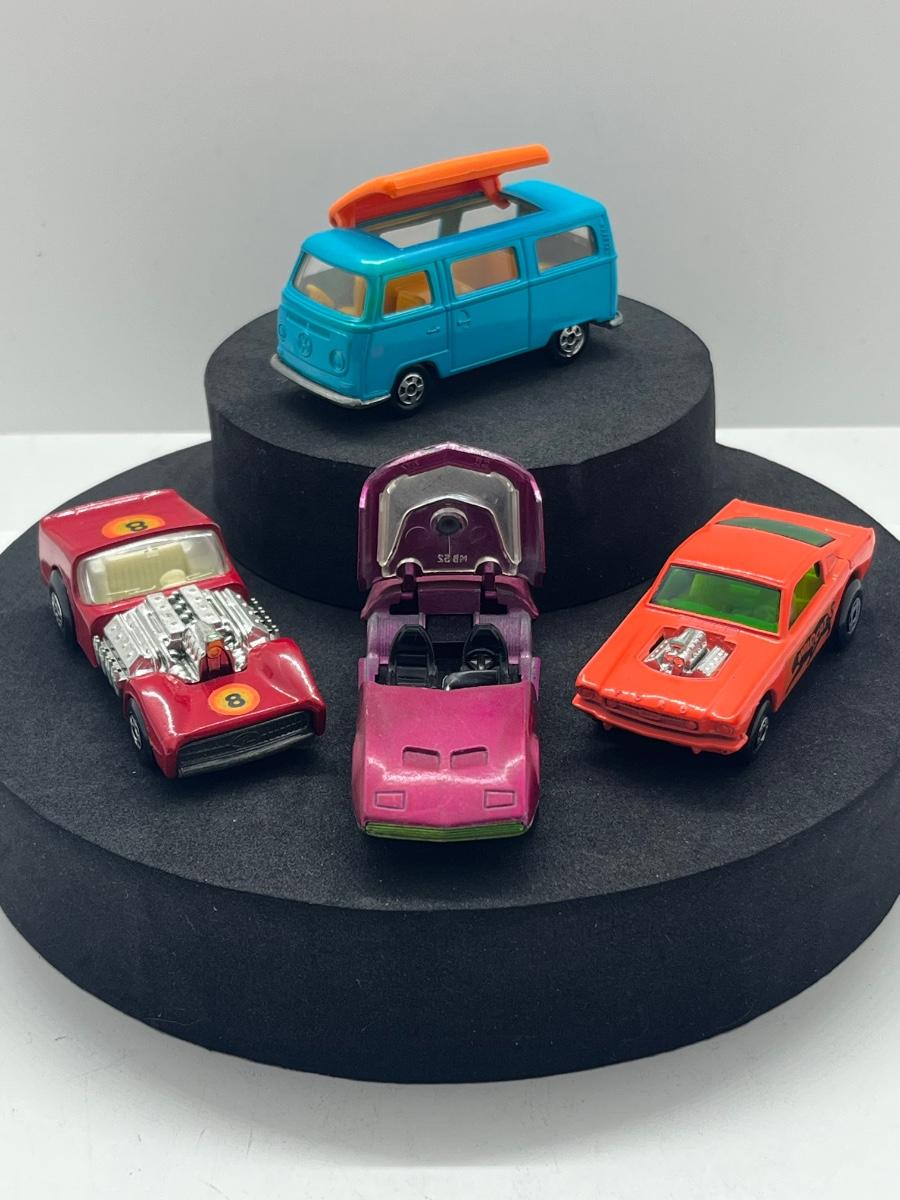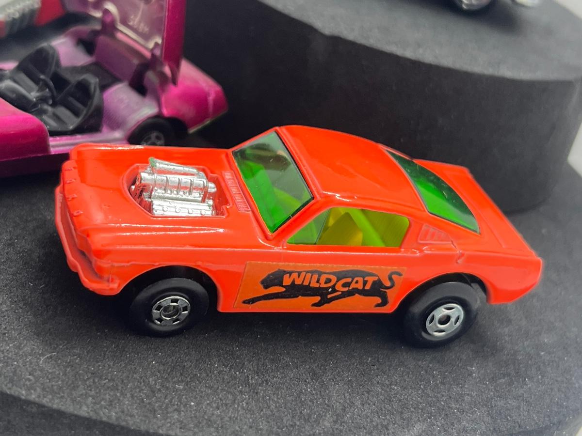 LOT 135: Vintange Lensey Matchbox Vehicles - Volkswagen Camper Road Dragster, Dodge Charger MkIII, Wildcat Dragster