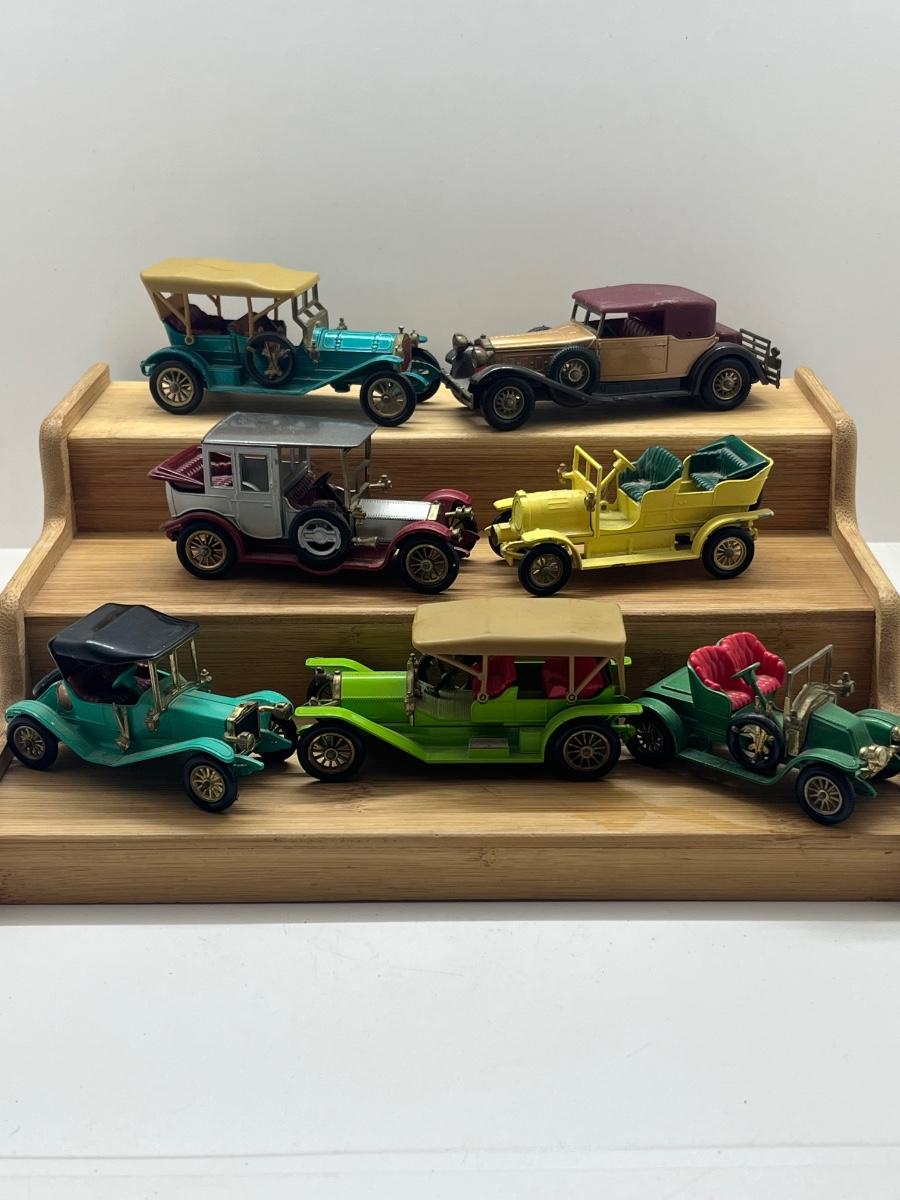 LOT 145: Vintage Lesney "Models of Yesteryear" - 1911 Maxwell Roadster, 1912 Simplex, 1911 Renault, 1912 Rolls Royce, 1904 Spyker, 1909 Thomas Flyabout and 1930 Packard Victoria