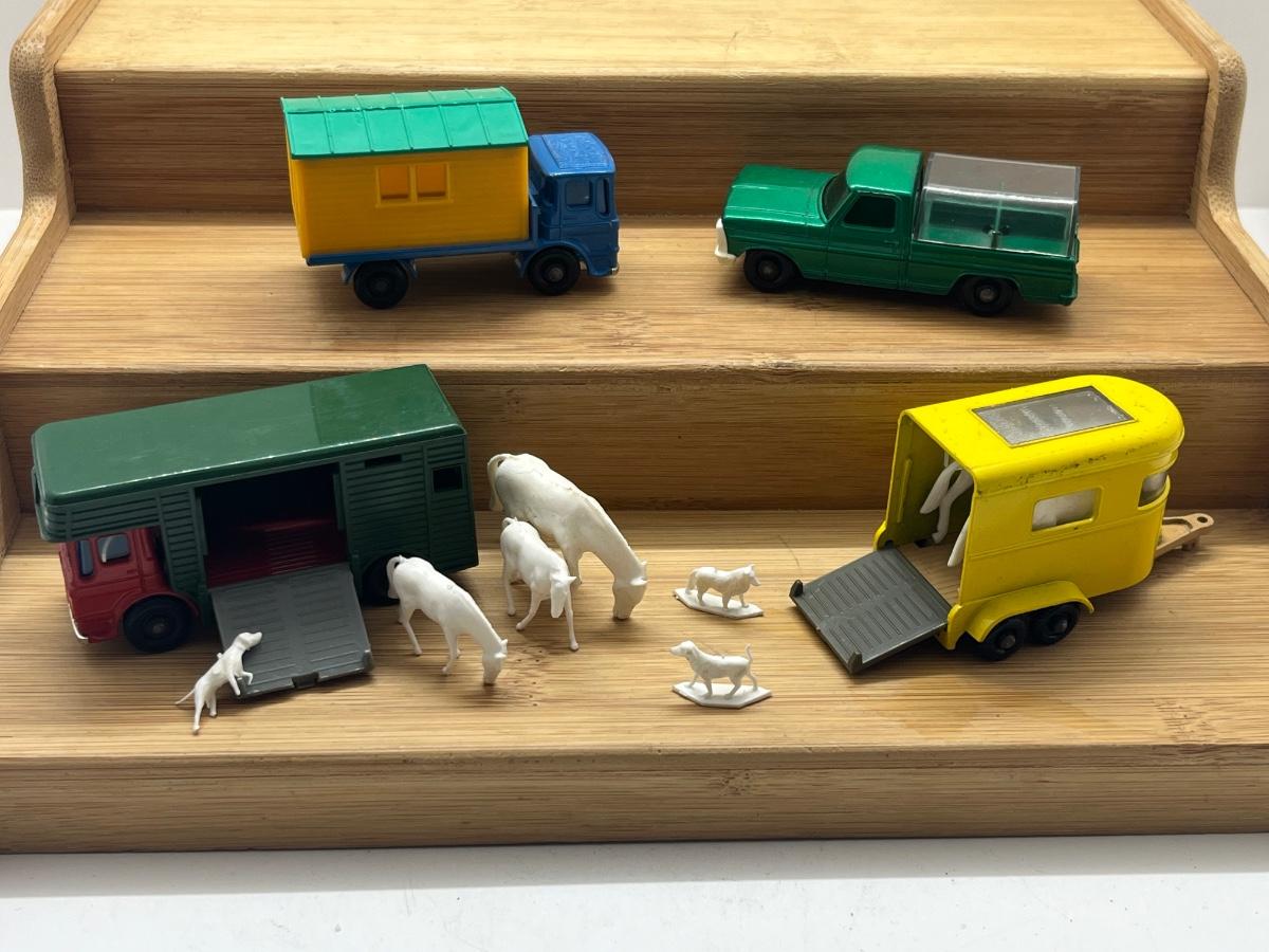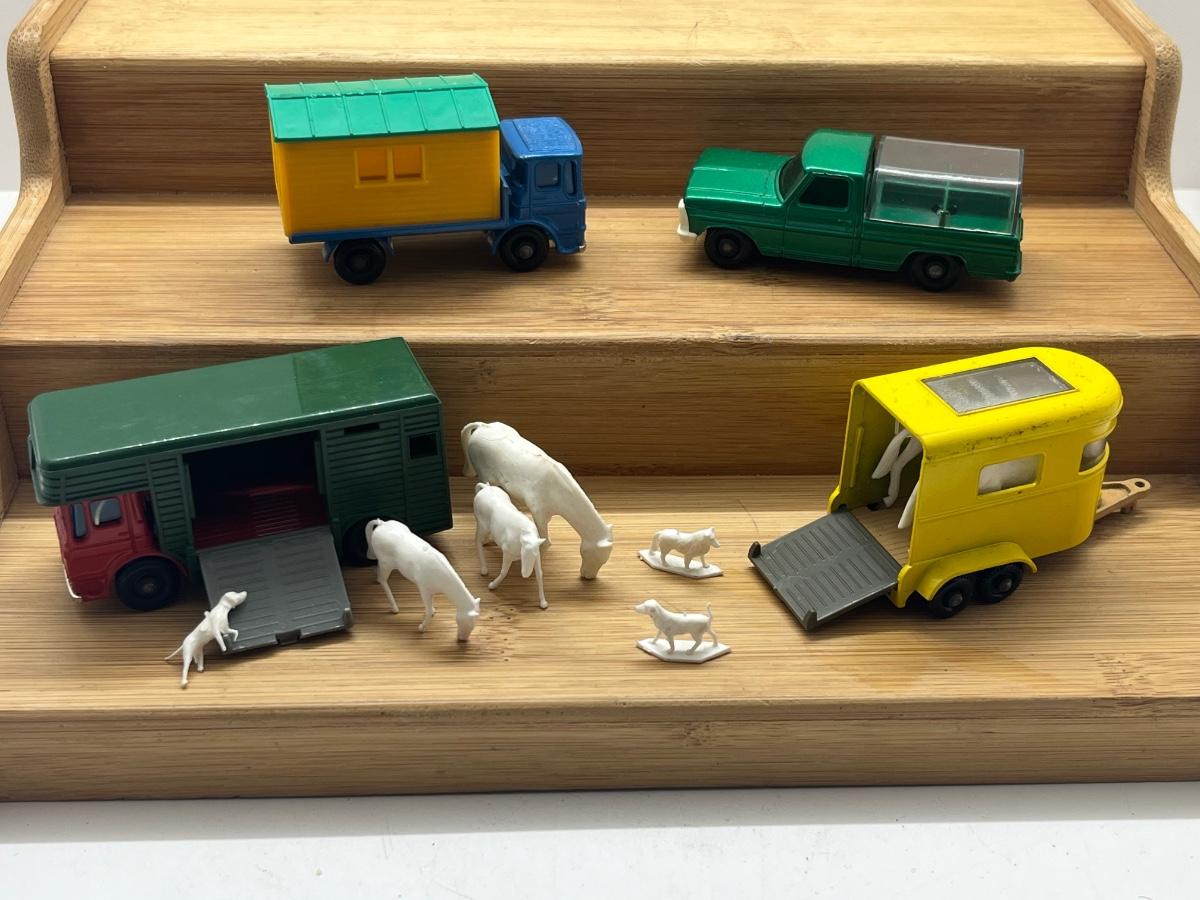 LOT 146: Vintage Lesney Matchbox Vehicles - Horse Box, Pony Trailer and More with Animals