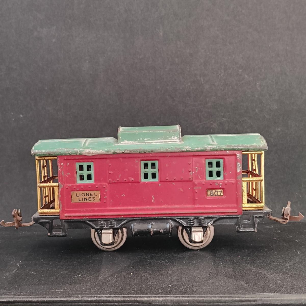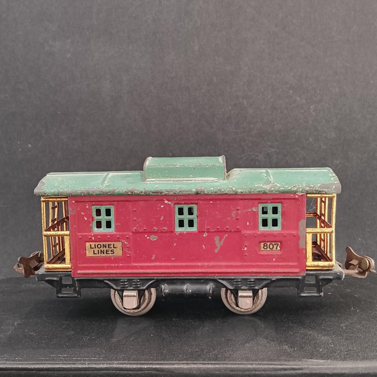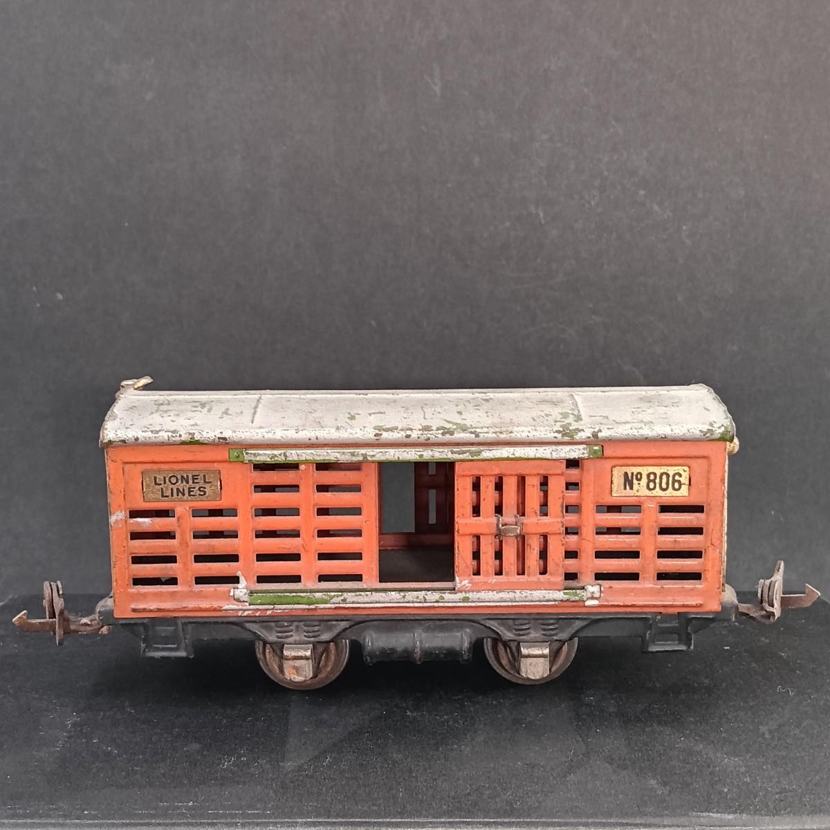 LOT 21: Lionel Pre-War 806 Cattle Car, Tank Car, 657 Caboose & 807 Tinplate Train Caboose