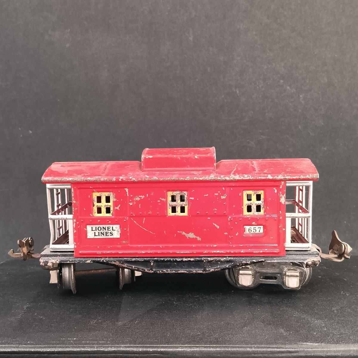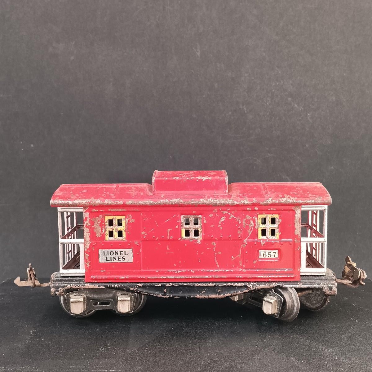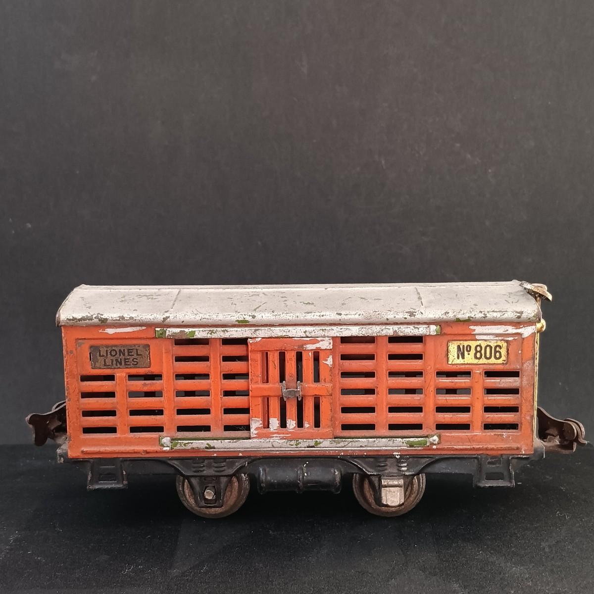 LOT 21: Lionel Pre-War 806 Cattle Car, Tank Car, 657 Caboose & 807 Tinplate Train Caboose