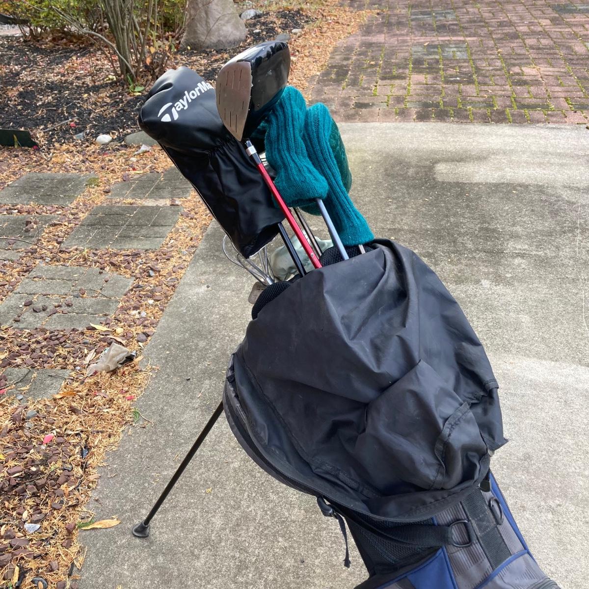 LOT 33: Collection of Golf Clubs and Accessories - Taylor Made, Callaway, Ram, Vesuvius Ceramic Putter with Ogio Golf Bag