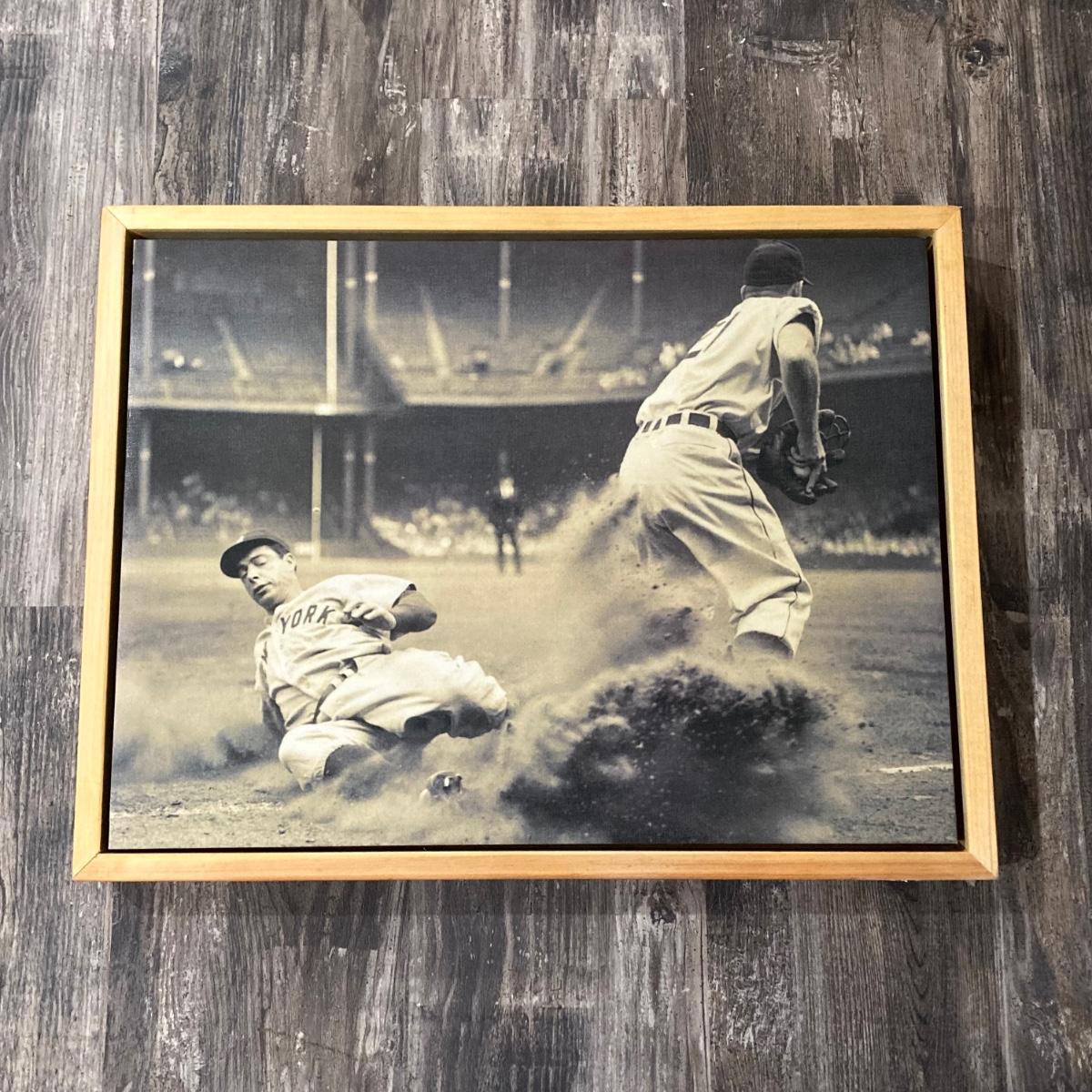 LOT 75: Framed Black and White Joe DiMaggio "Sliding into Third" (New York Yankees) Wall Hanging