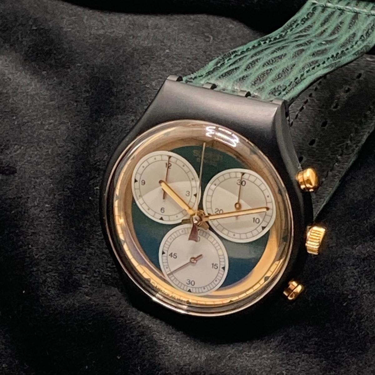 LOT 168: Vintage Swatch Swiss Rollerball Twenty Two Jewels Chronograph Watch in Original Case