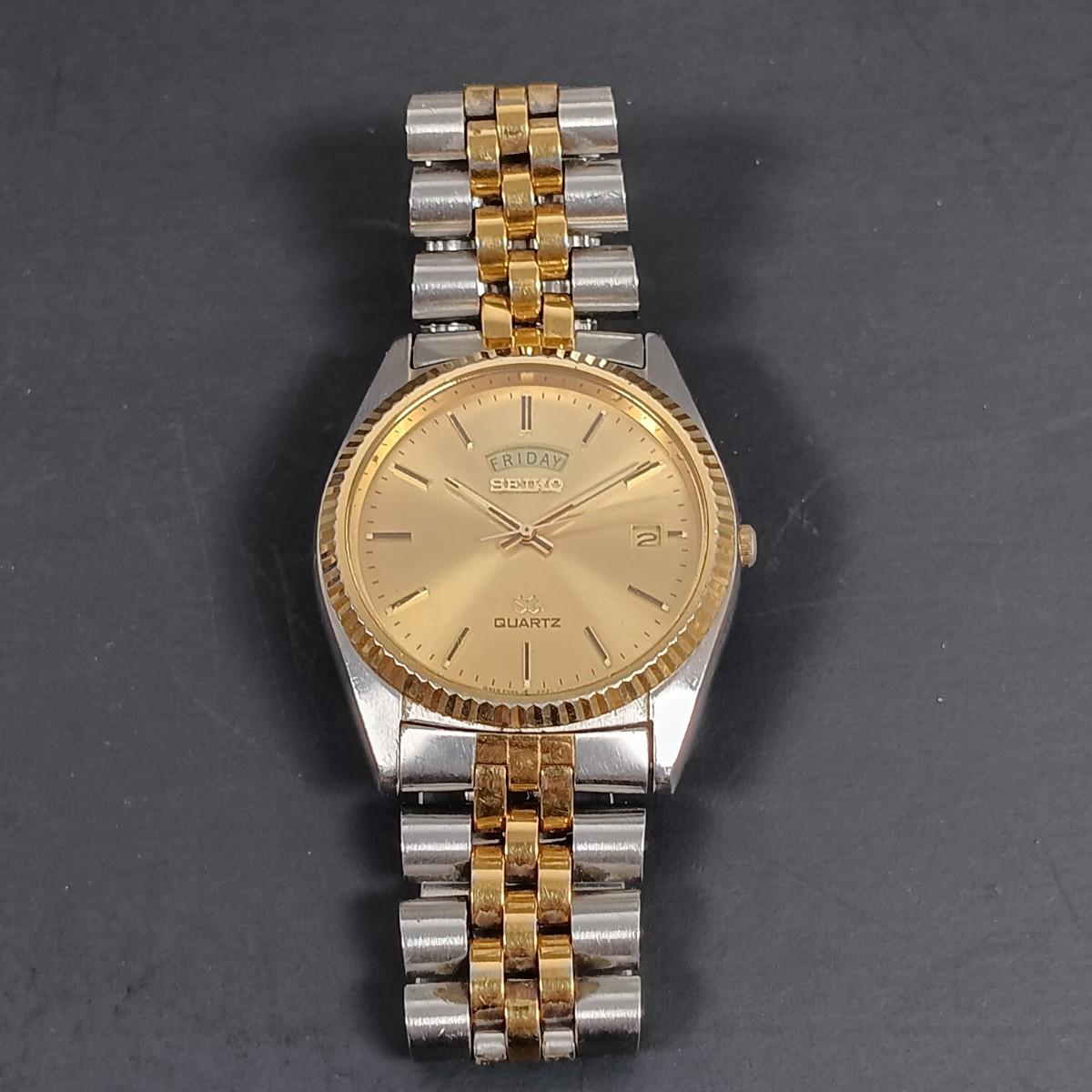 LOT 193: Vintage Seiko Men's Two-Tone Day Date Watch 5Y23-8A69