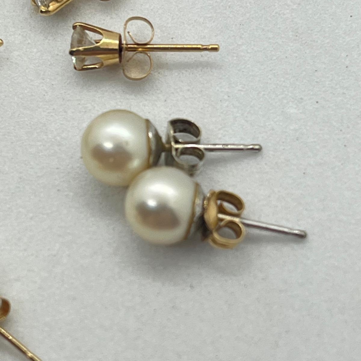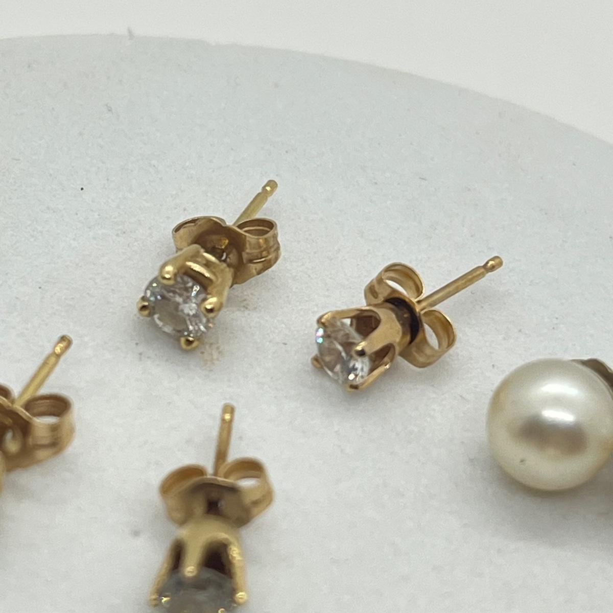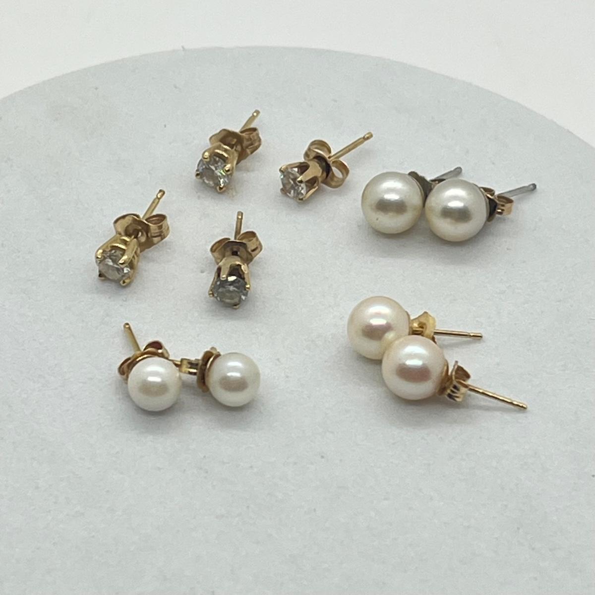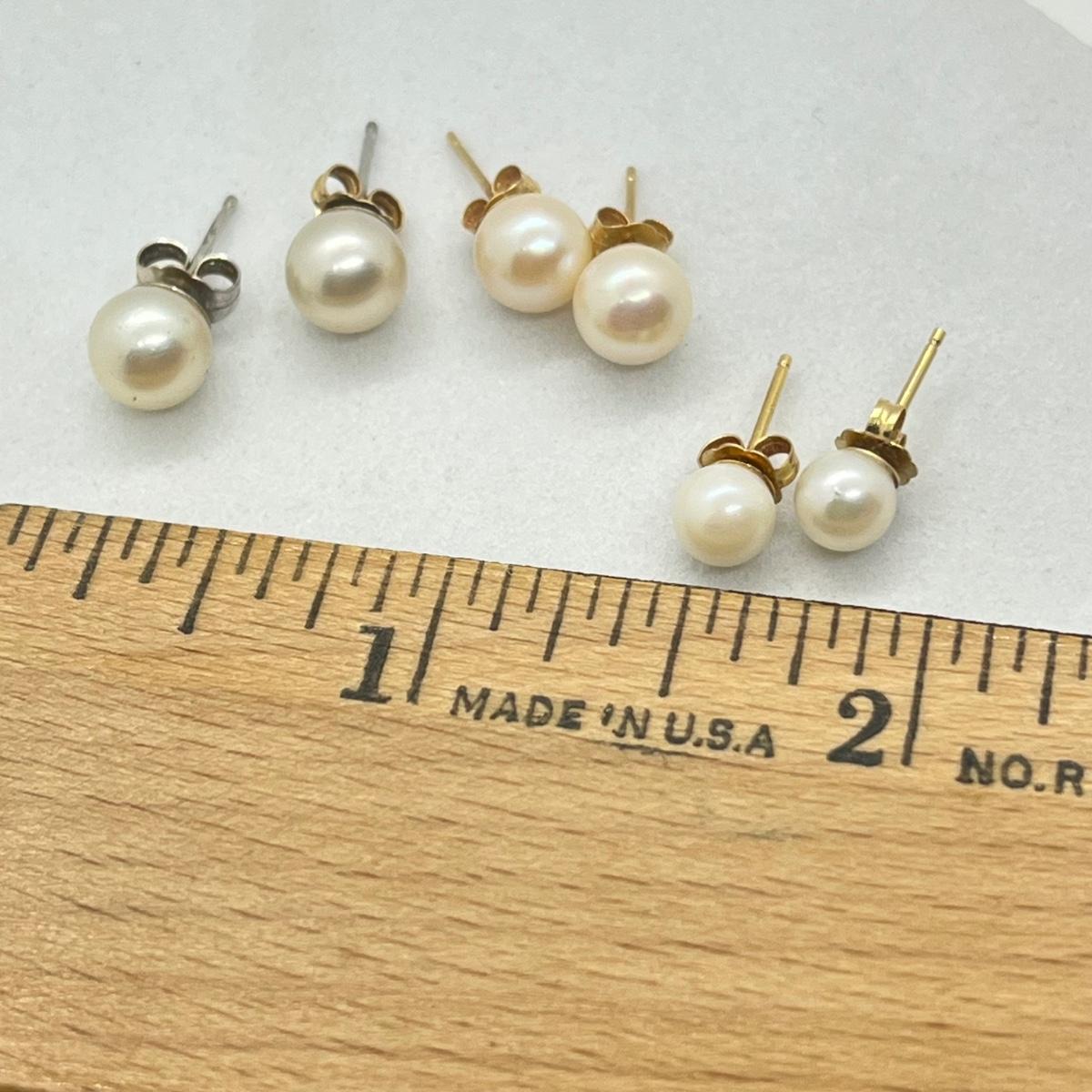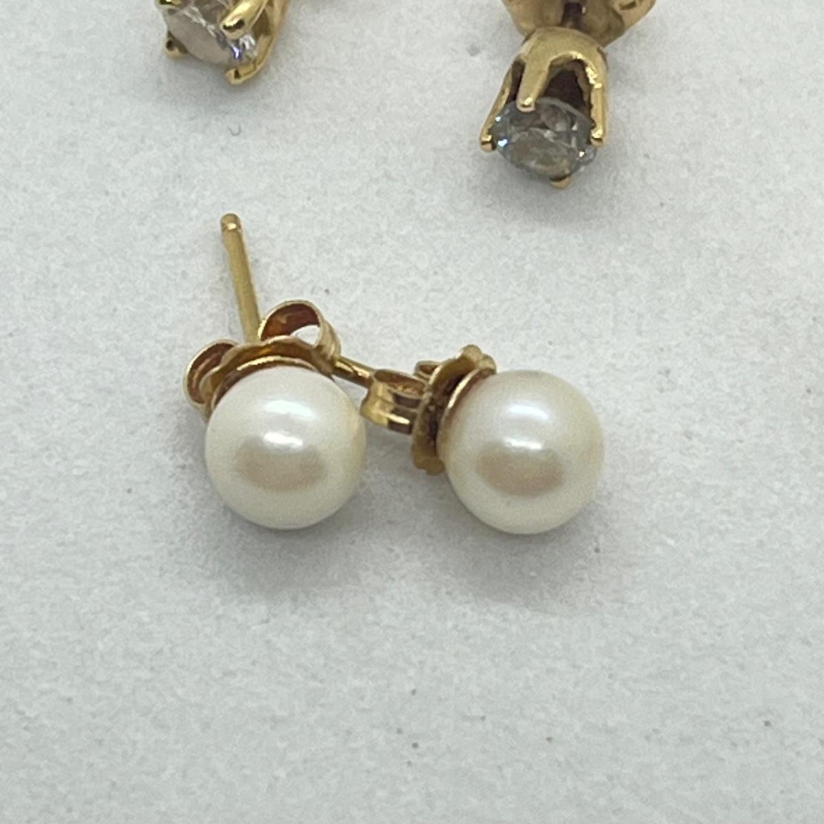 LOT 3: 14K Gold Diamond and Pearl Stud Earrings - 4.9 gtw