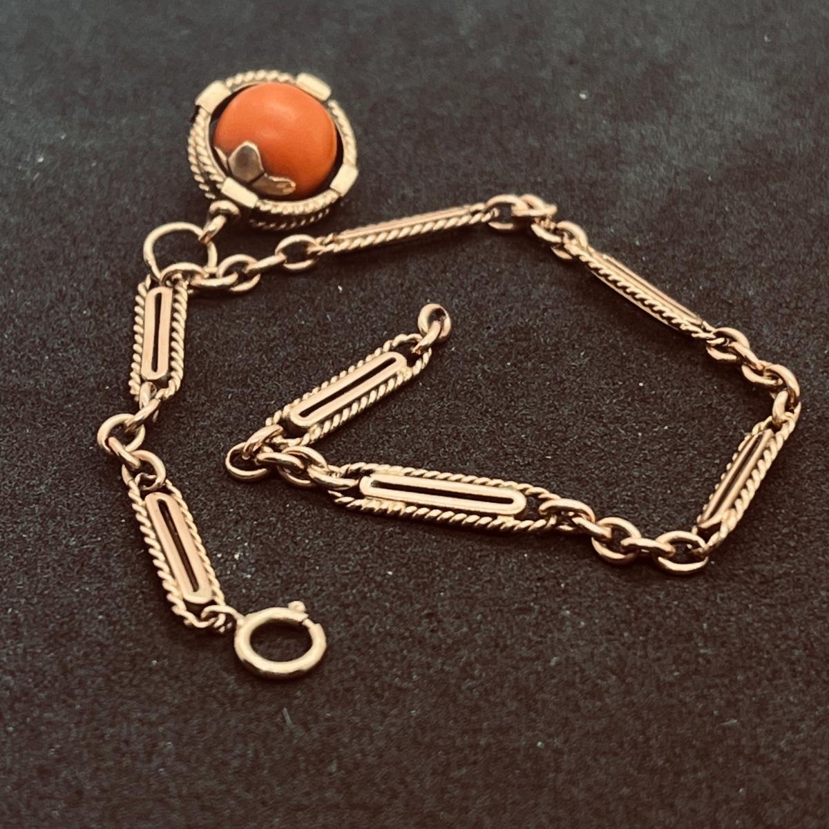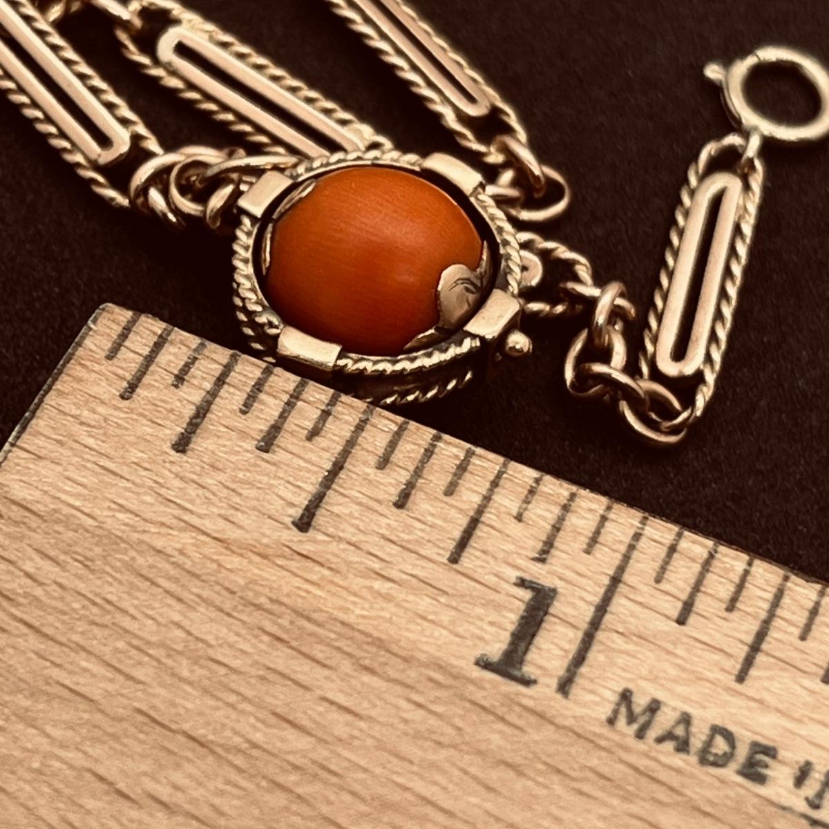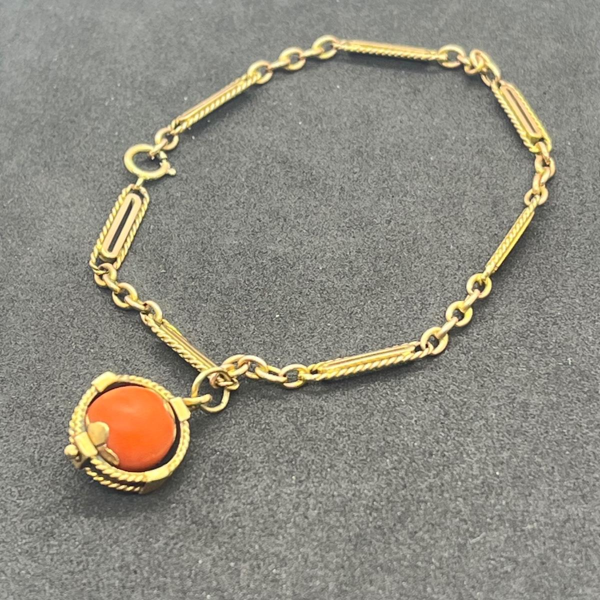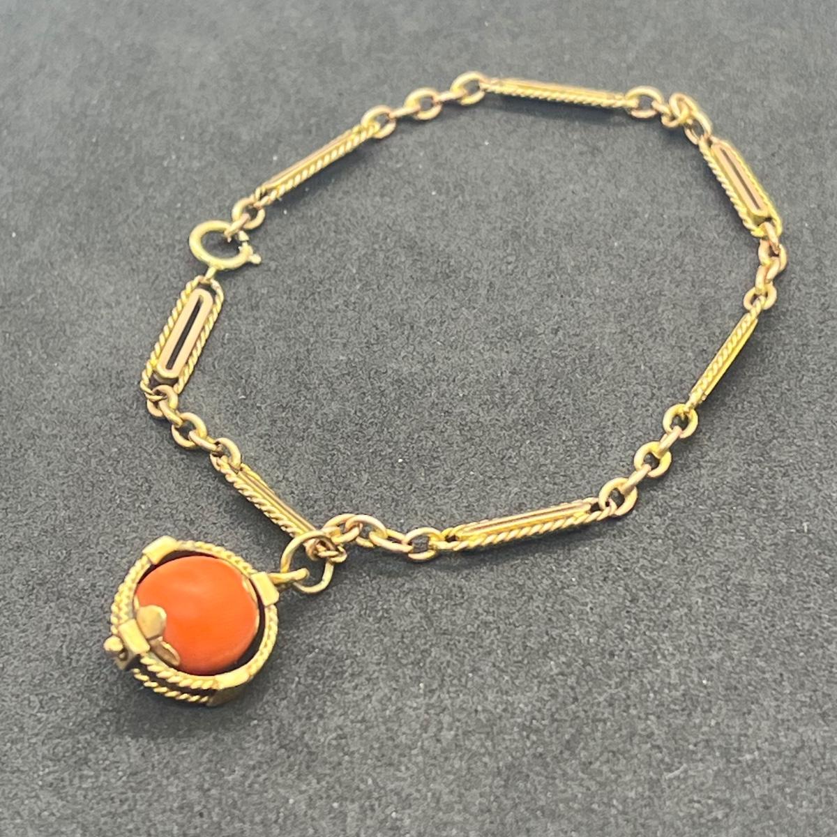 LOT 4: Antique 14K Gold 8" Bracelet w/ Coral Charm - 6.3 gtw