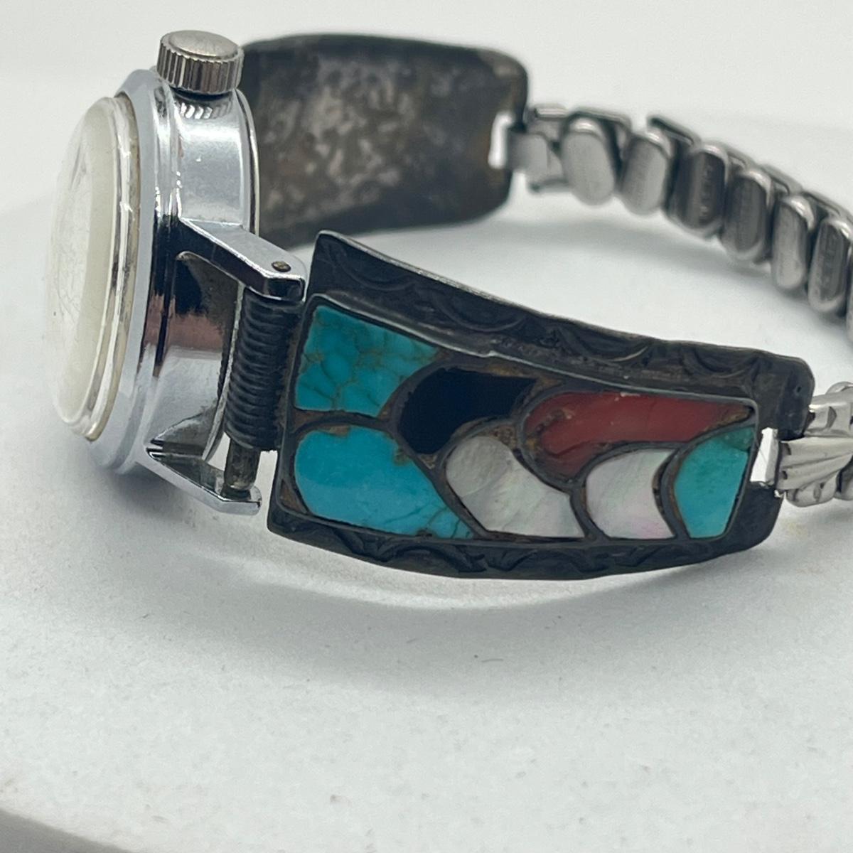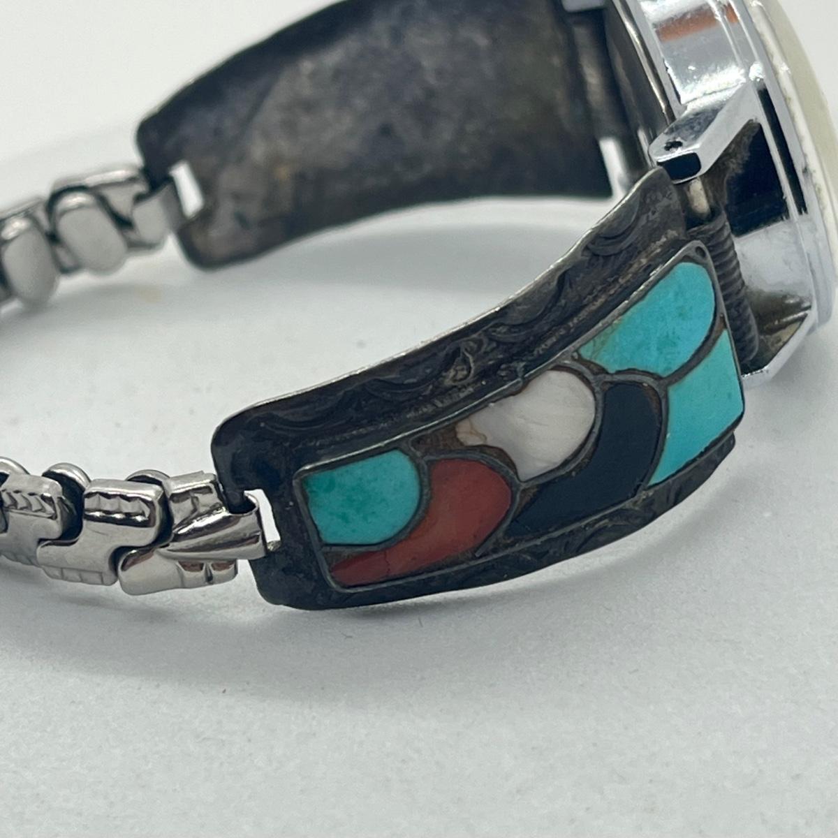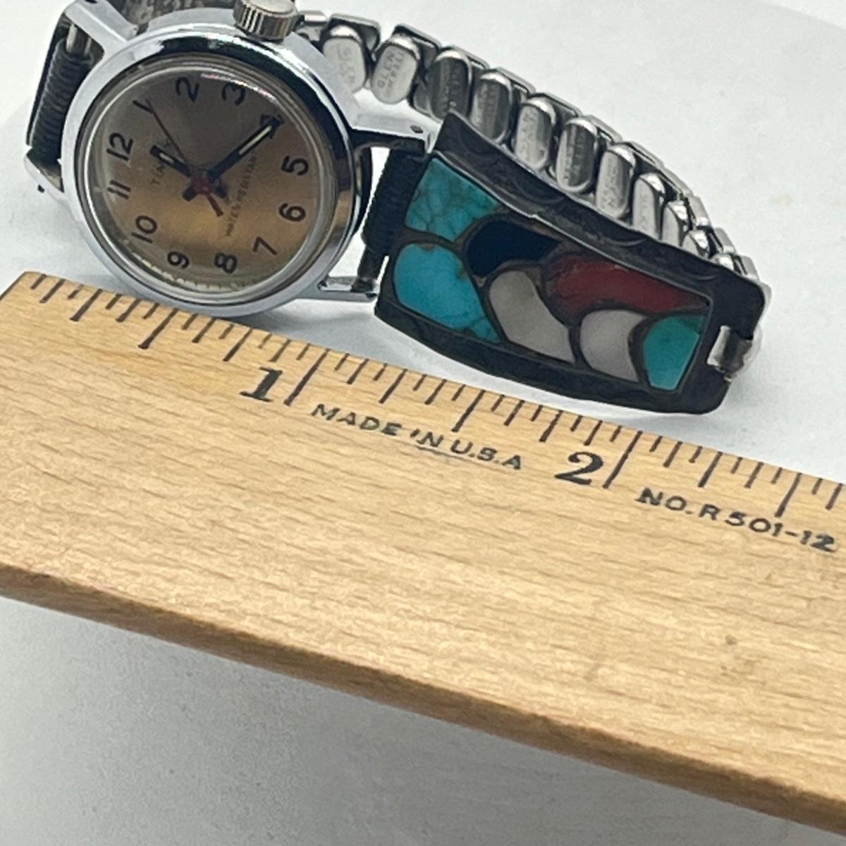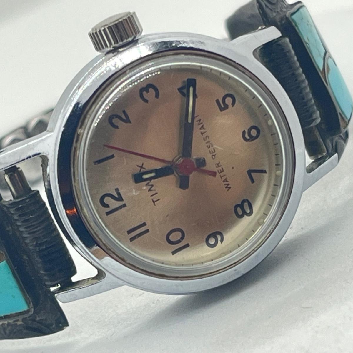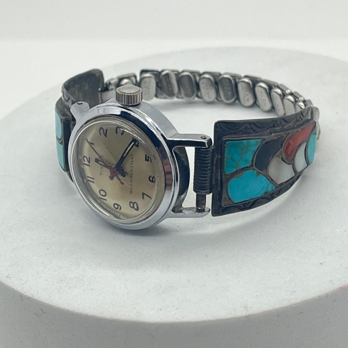 LOT 9: Sterling Silver Southwest Bracelet on Stretch Band with Ladies Timex Watch