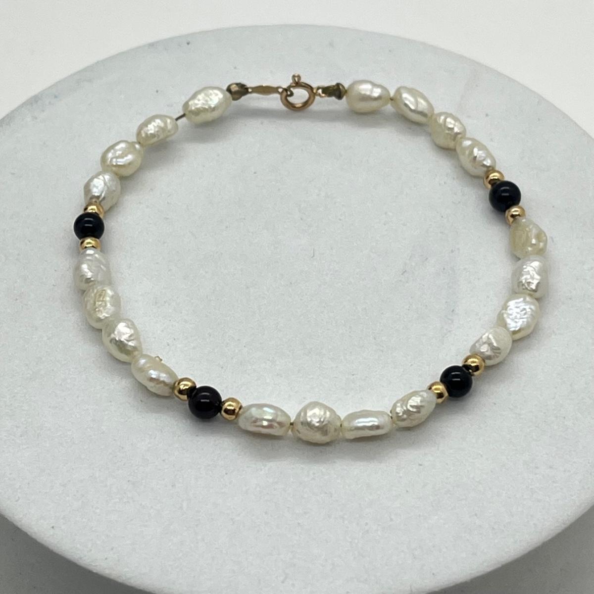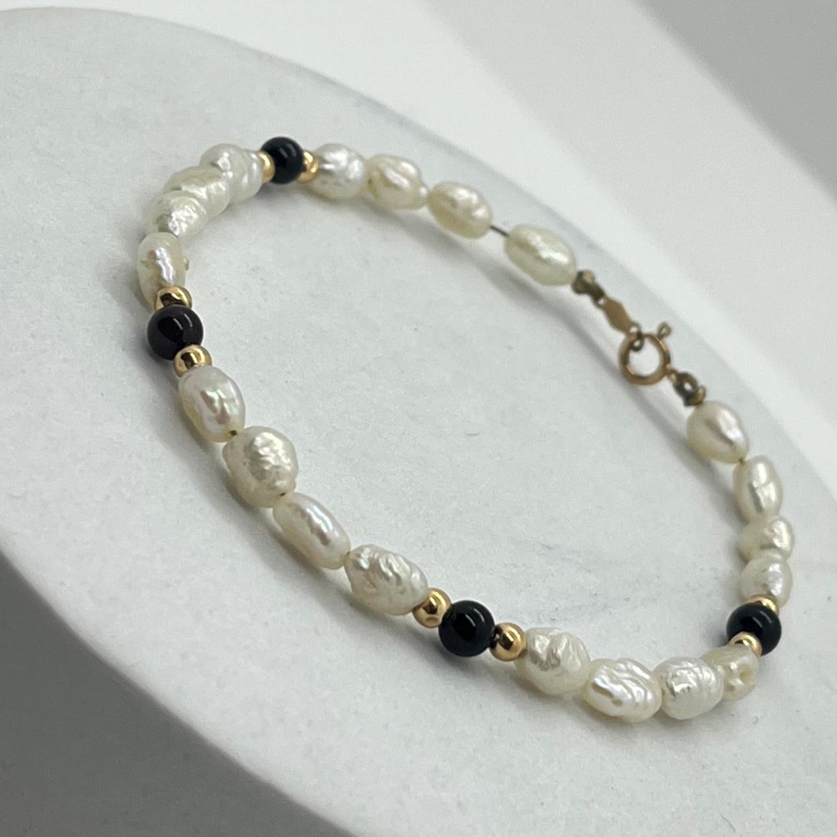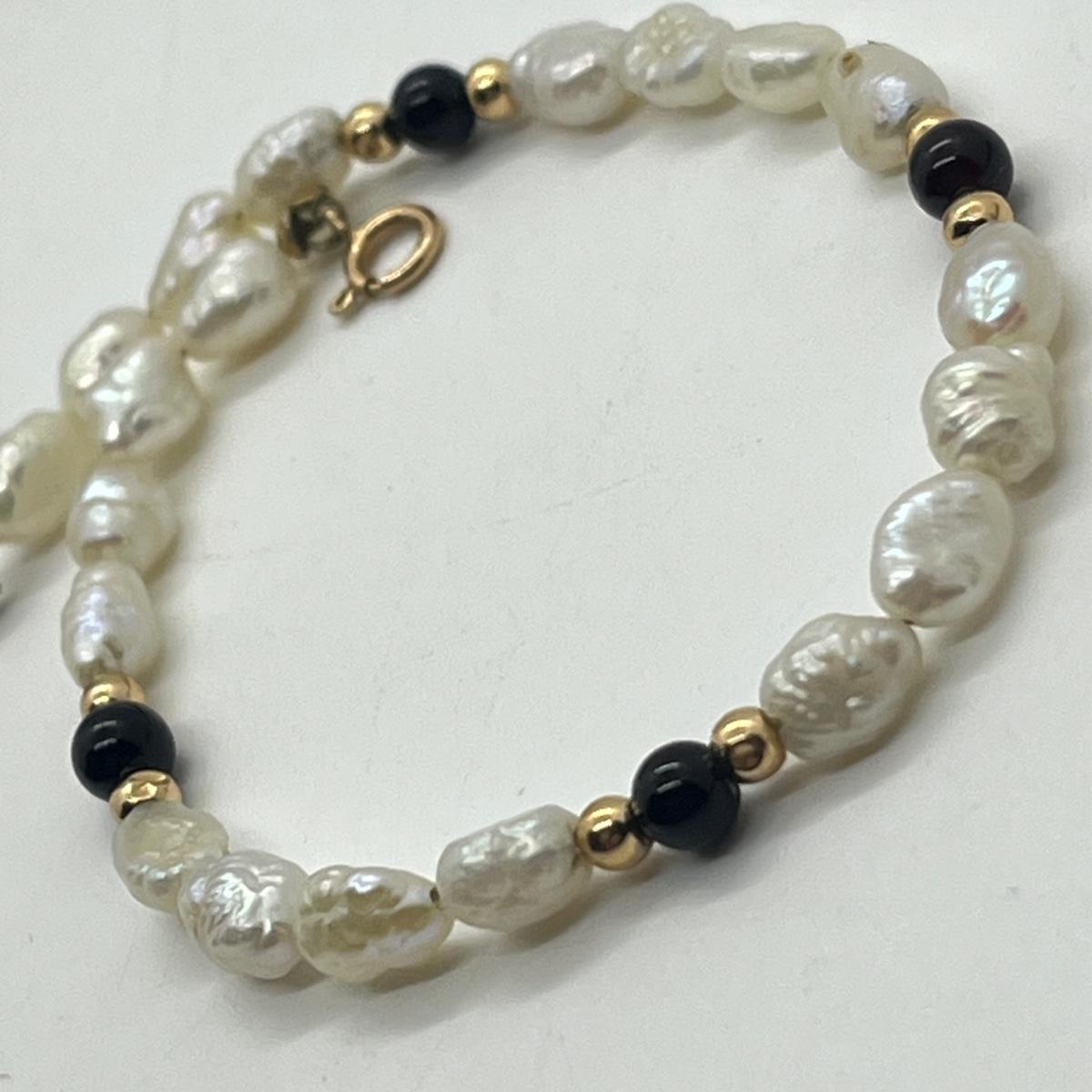 LOT 26: Freshwater Pear 7" Bracelet w. 14K Gold Beads and Clasp