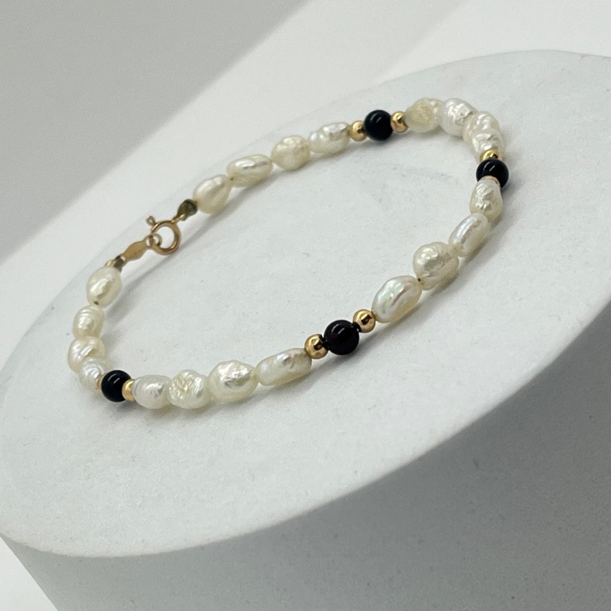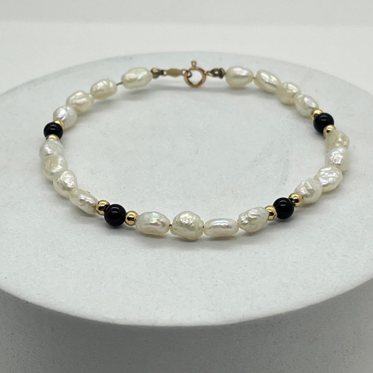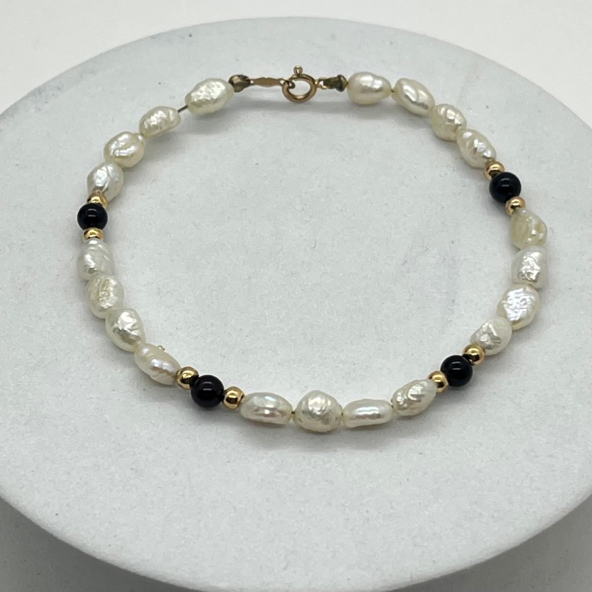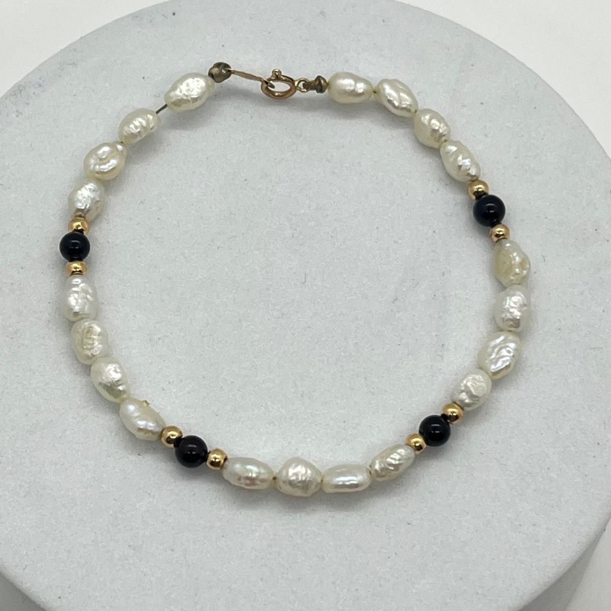 LOT 26: Freshwater Pear 7" Bracelet w. 14K Gold Beads and Clasp