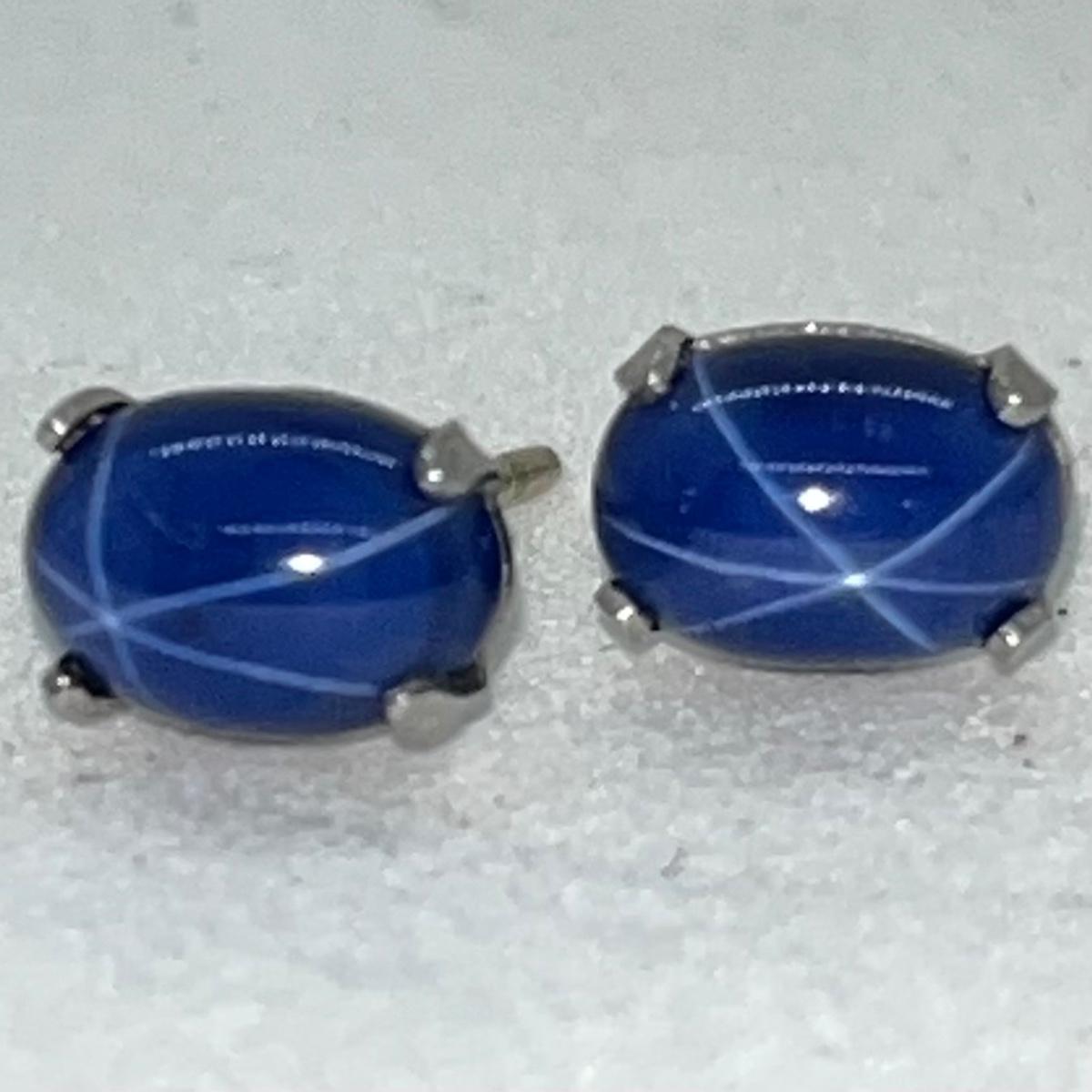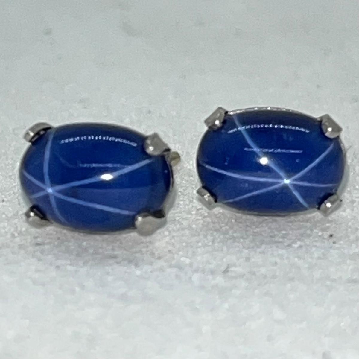 LOT 36: 14K White Gold Star Sapphire Stud Earrings - 1.0 GTW