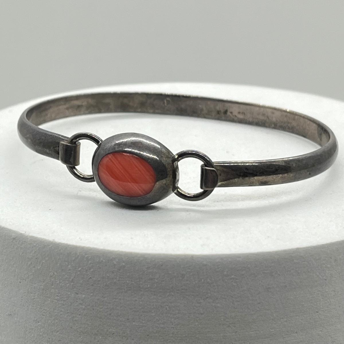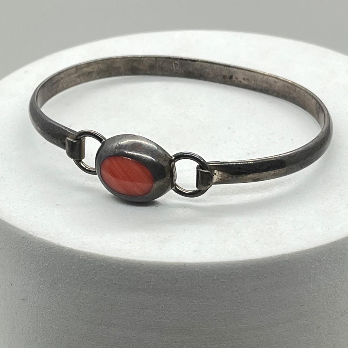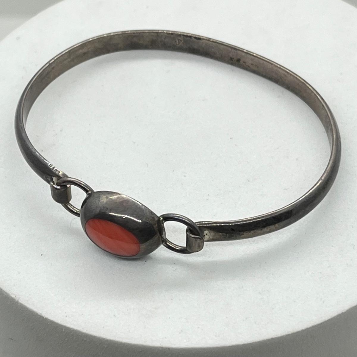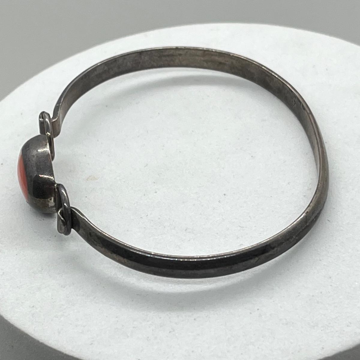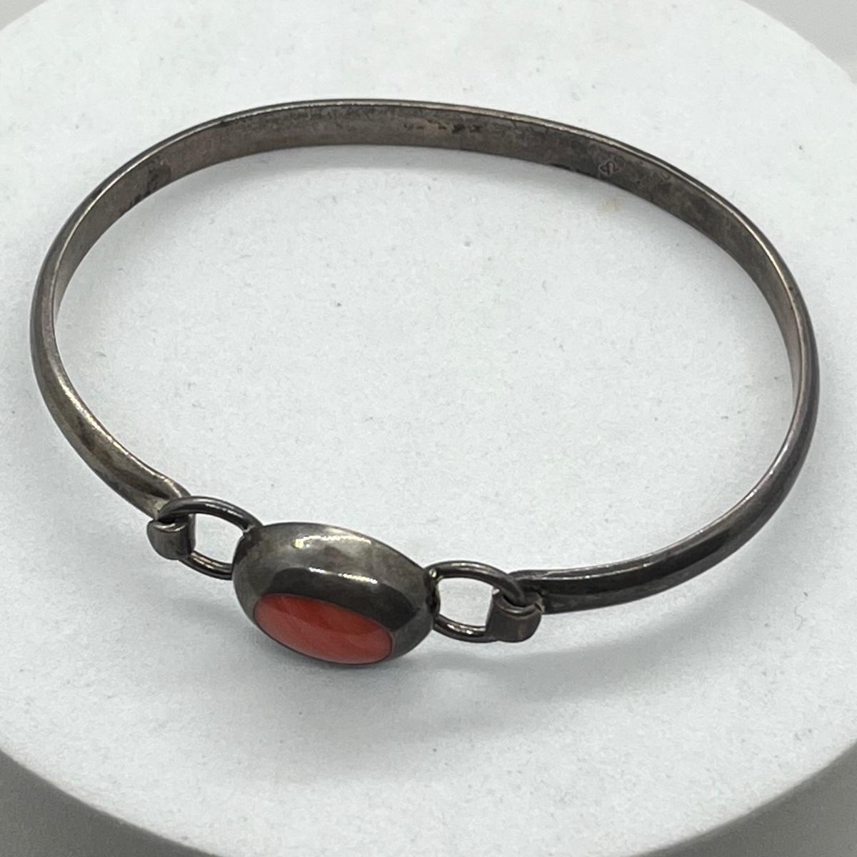 LOT 40: Sterling Silver Bangle Bracelet with Coral - 925 Mexico - 16.8 GTW