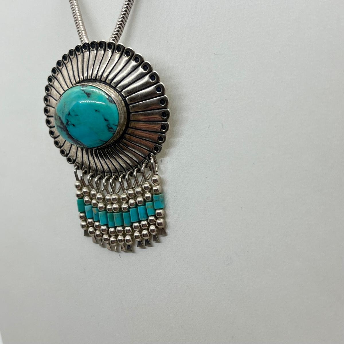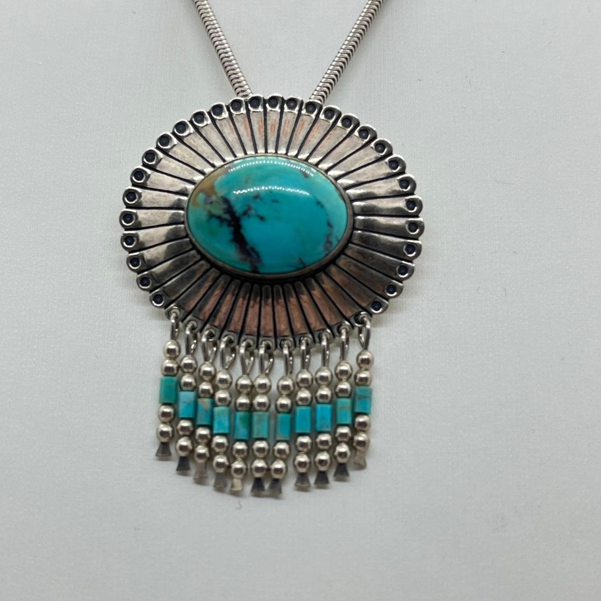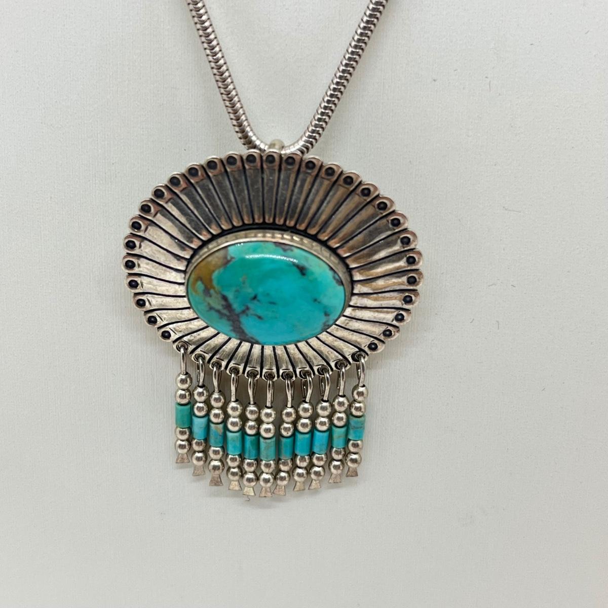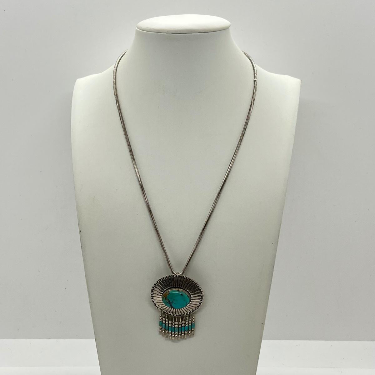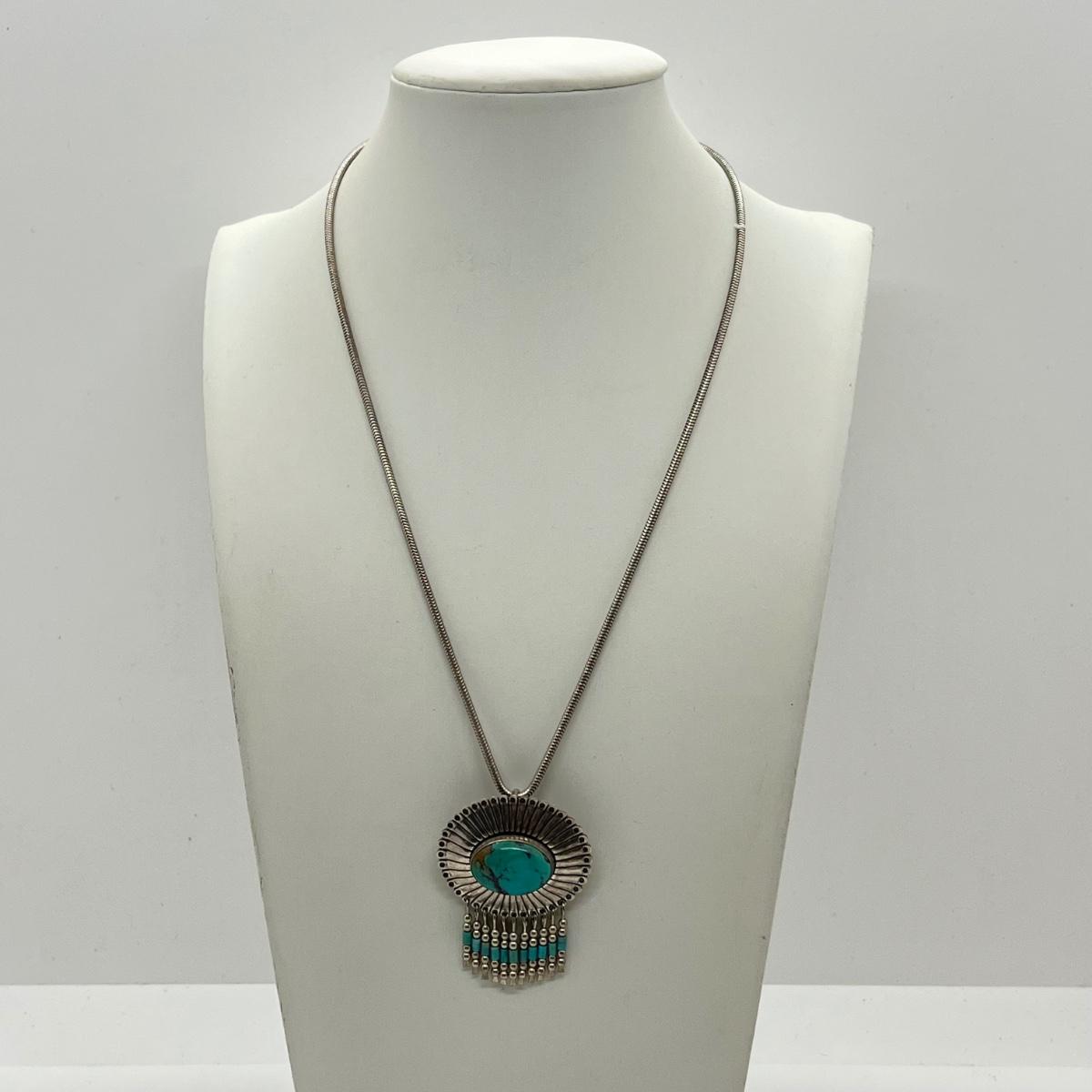 LOT 45: Sterling Silver Native American Turquoise Pendant on 17" Necklace - 15.4 GTW