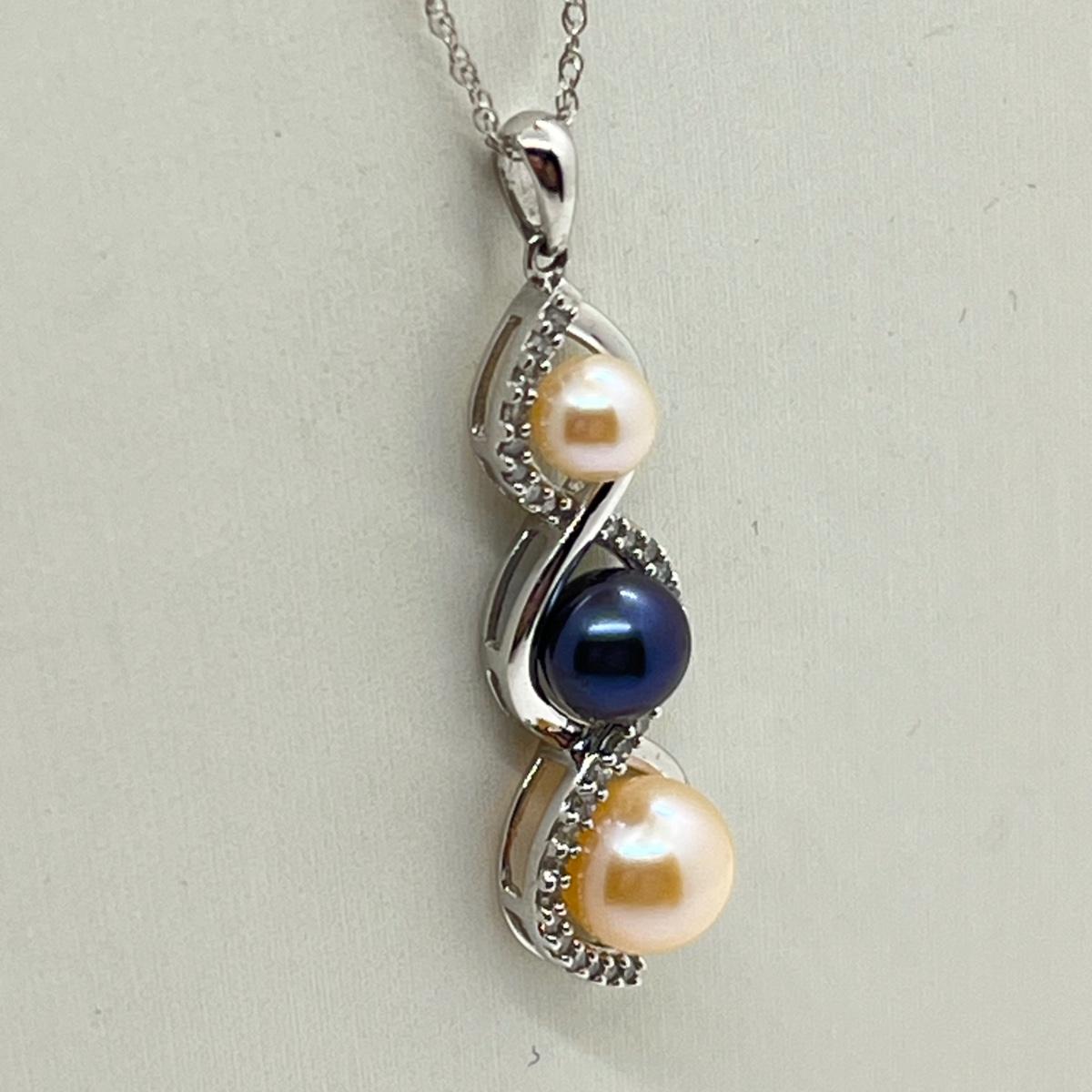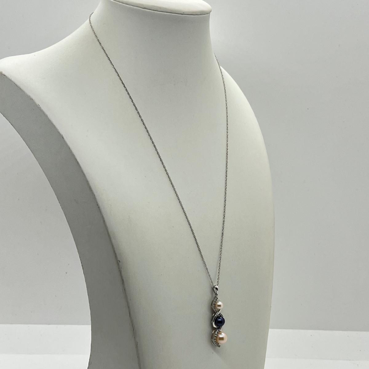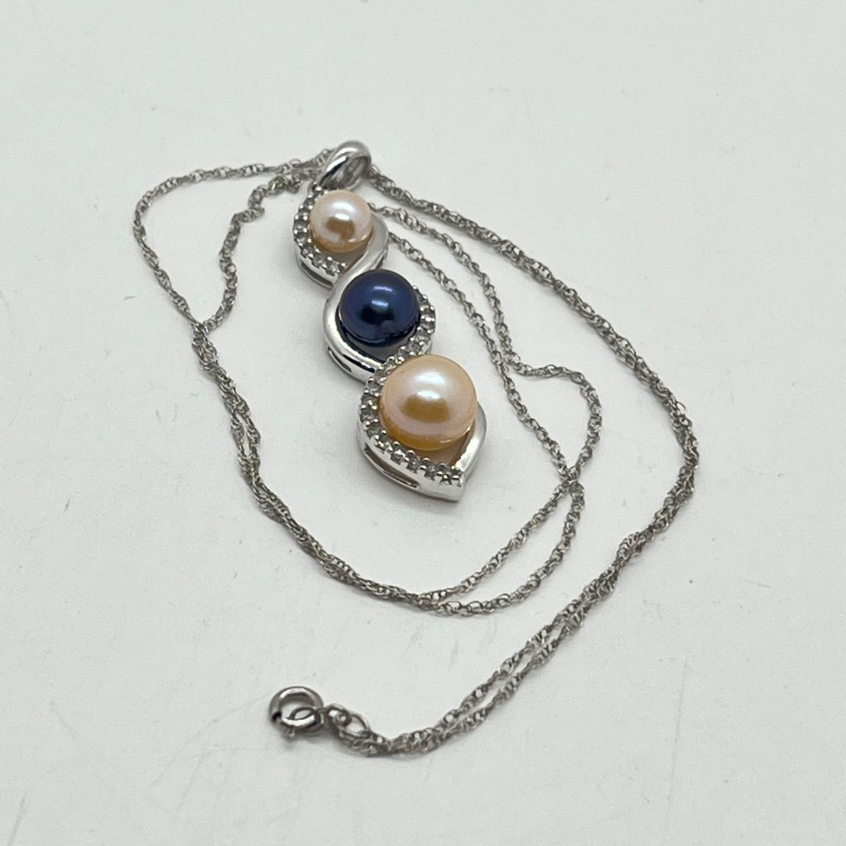 LOT 48: 10K White Gold Pearl and Diamond Pendant on 18" 10K Thin Chain - 3.3 GTW