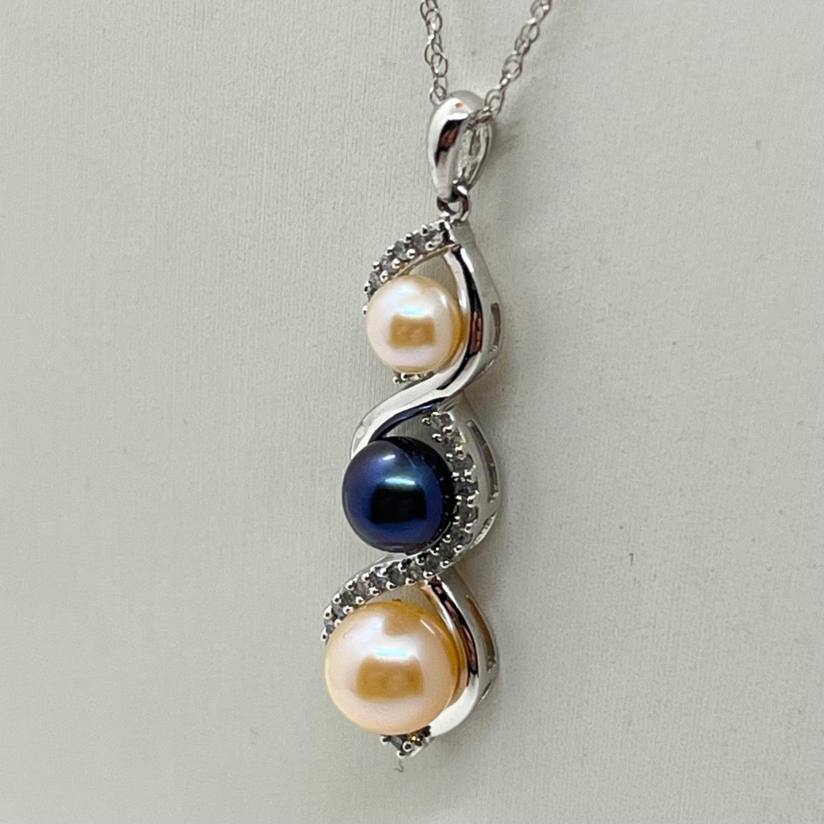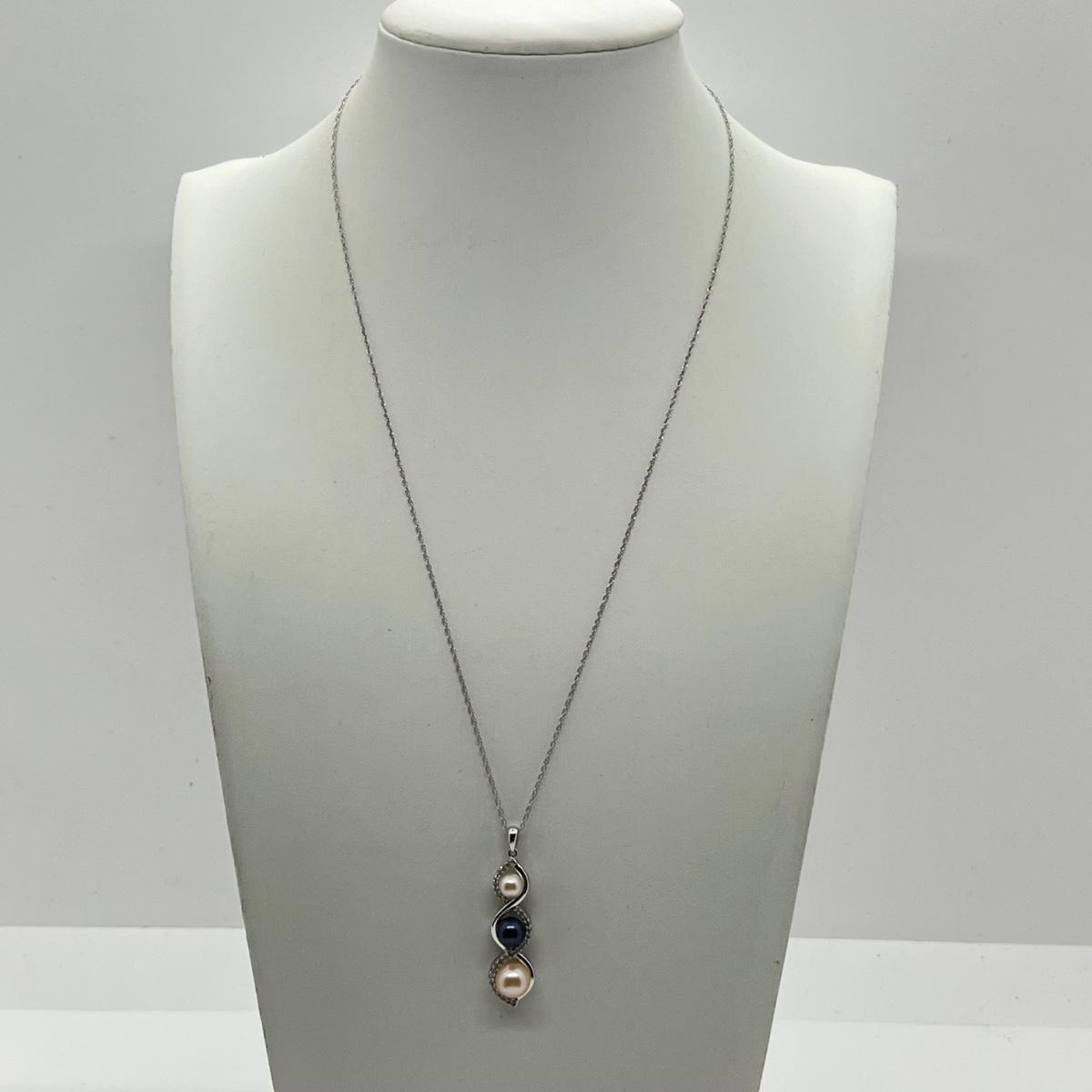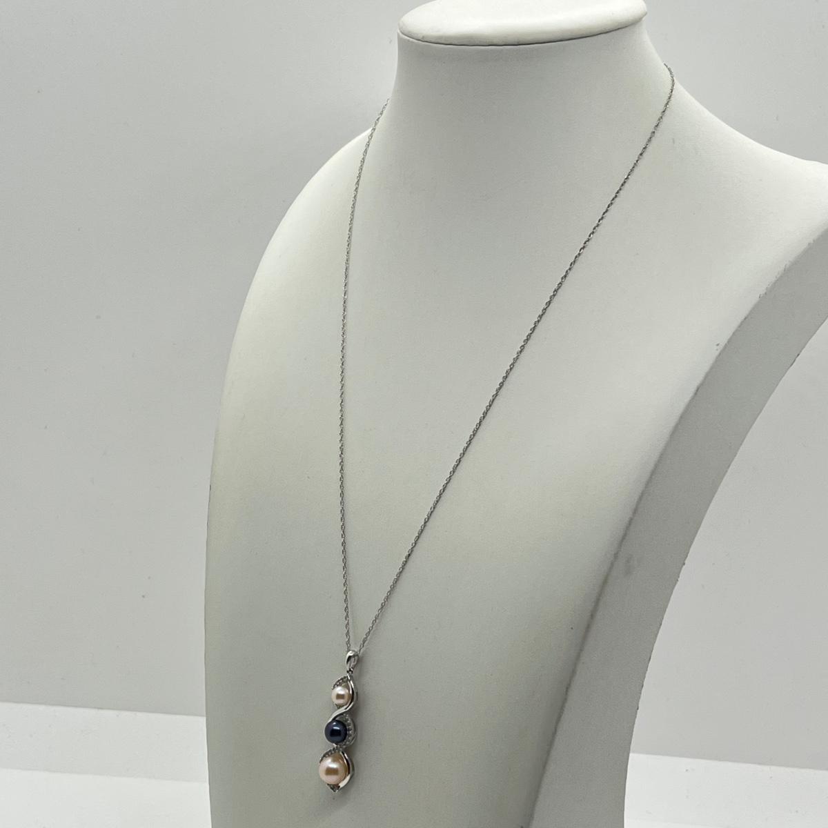 LOT 48: 10K White Gold Pearl and Diamond Pendant on 18" 10K Thin Chain - 3.3 GTW