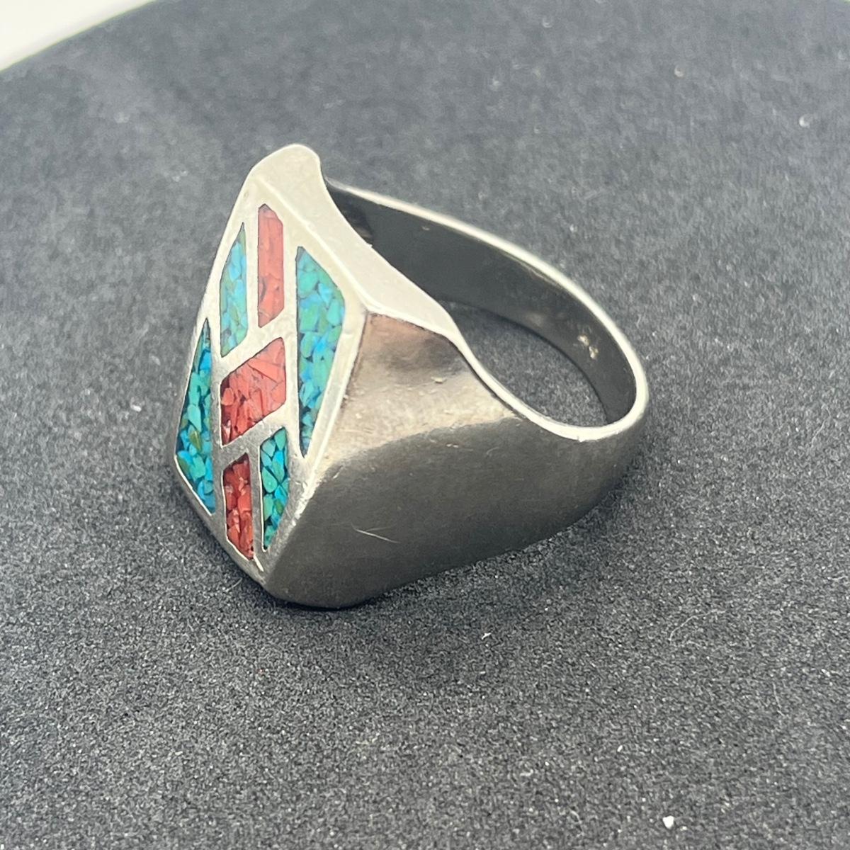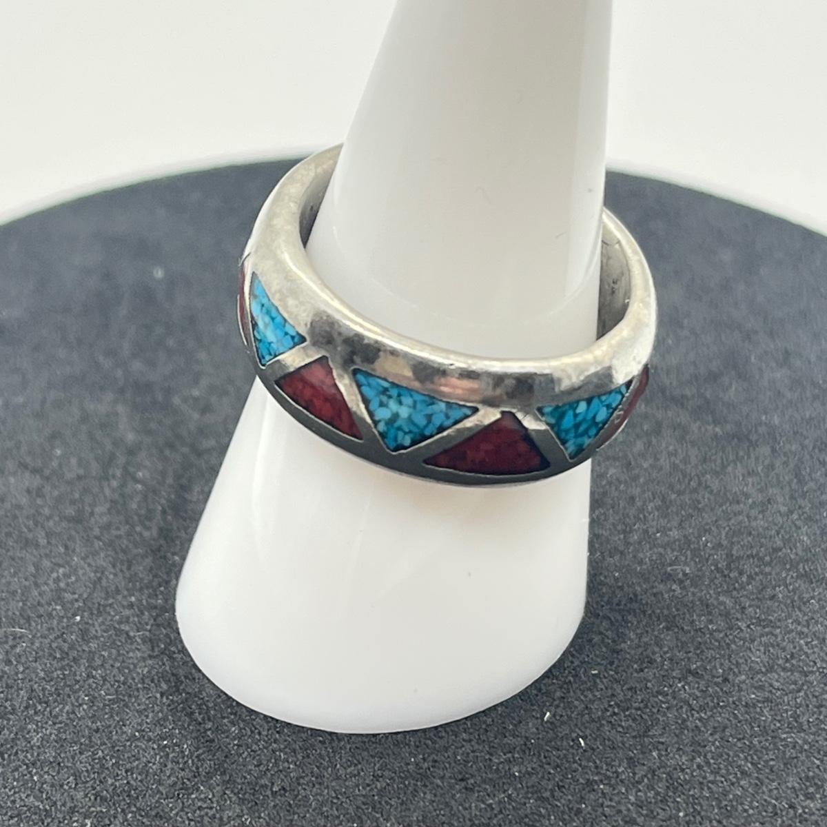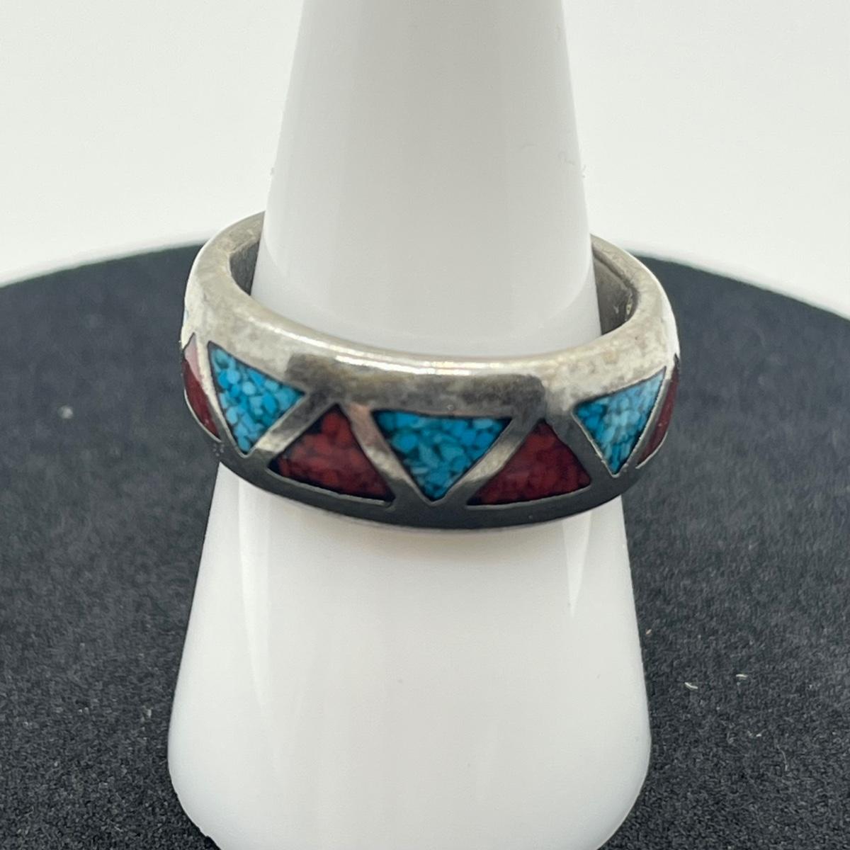 LOT 50: Sterling Silver Southwest Turquoise and Coral Rings - 19.5 GTW