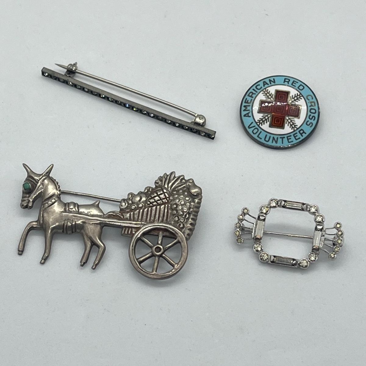 LOT 55: Vintage Sterling Silver Pins - American Red Cross and More - 24.1 GTW